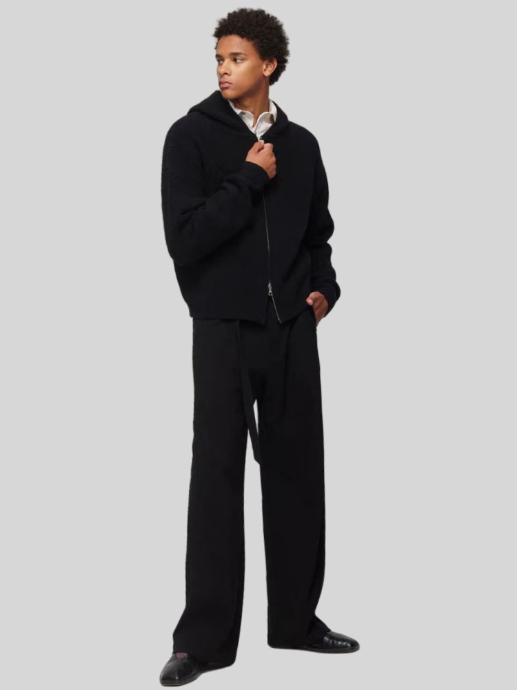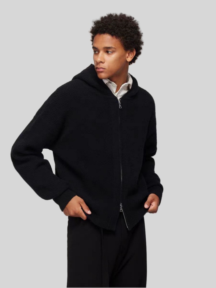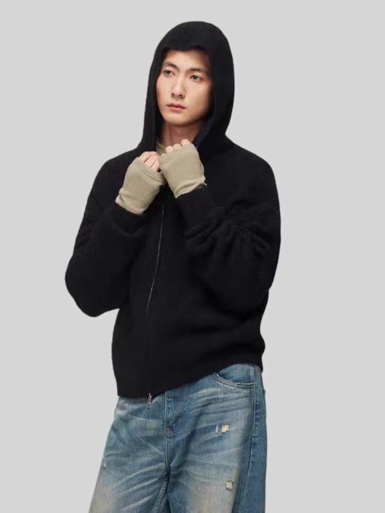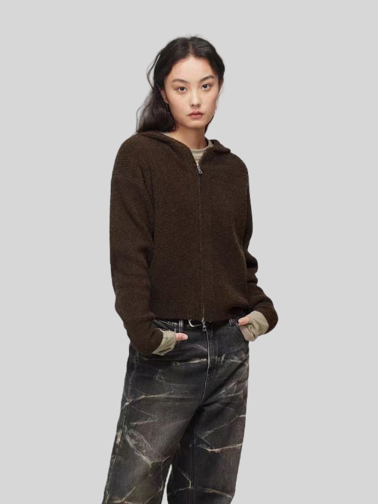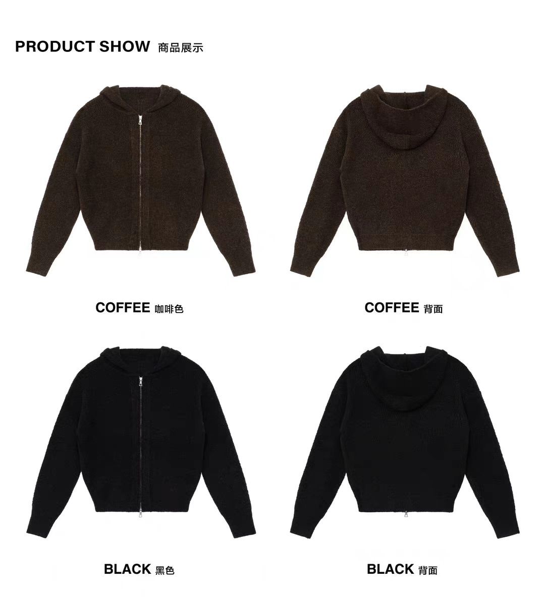 고급 짧은 더블 지퍼 니트 오픈 삼나무 450G 혼합 바늘 지퍼 후드 스웨터 스웨터 스웨터스토어 가기