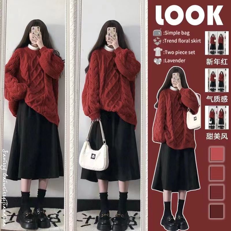 2024 가을과 겨울 새로운 두꺼운 라인 스웨터 여성 한국 스타일 느슨한 게으른 스타일 둥근 목 두꺼운 트위스트 풀오버 스웨터