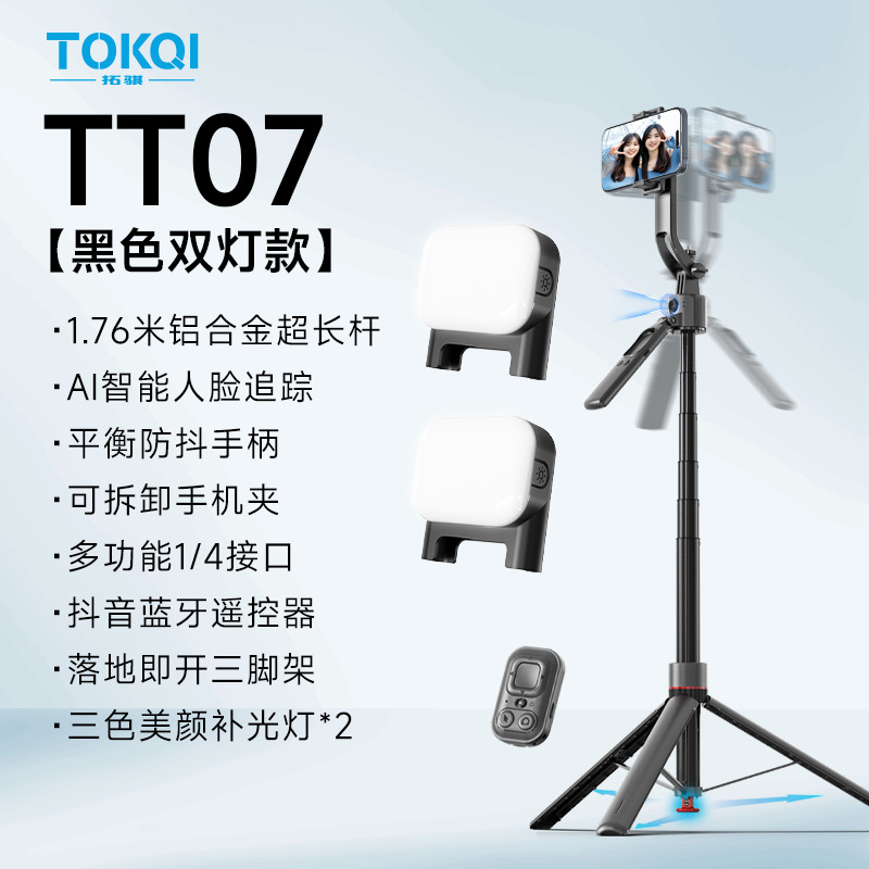 • TT07 듀얼 라이트 모델 [접지 즉시 켜짐 - 1.73m ] 알루미늄 합금 폴 + AI 지능형 추적 + 1/4 인터페이스 + 밸런스 손떨림 방지 핸들 + 블루투스 리모컨