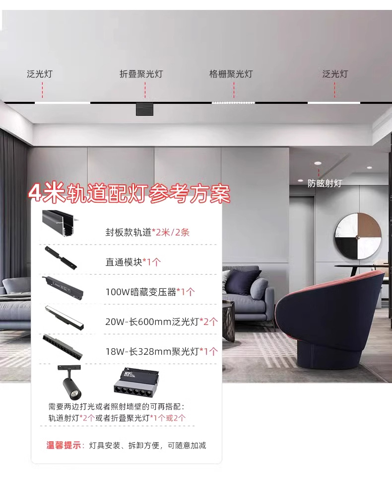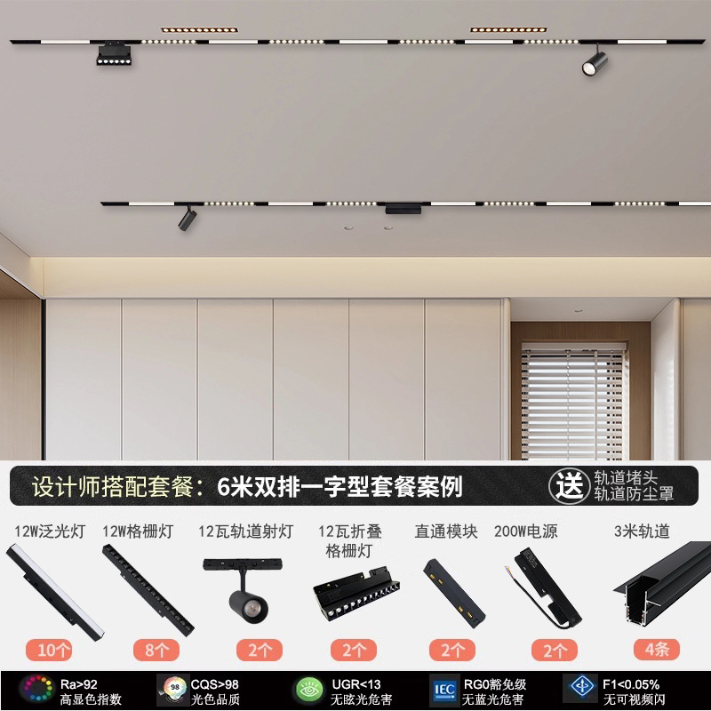 마그네틱 흡입 트랙 램프 임베디드 오픈 마운트 흡입 램프 스포트라이트 패키지 메인 램프 거실 조명 침실 선형 투광 조명