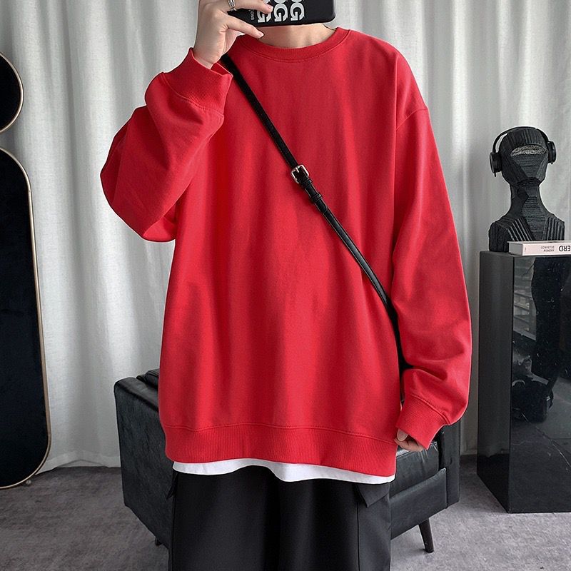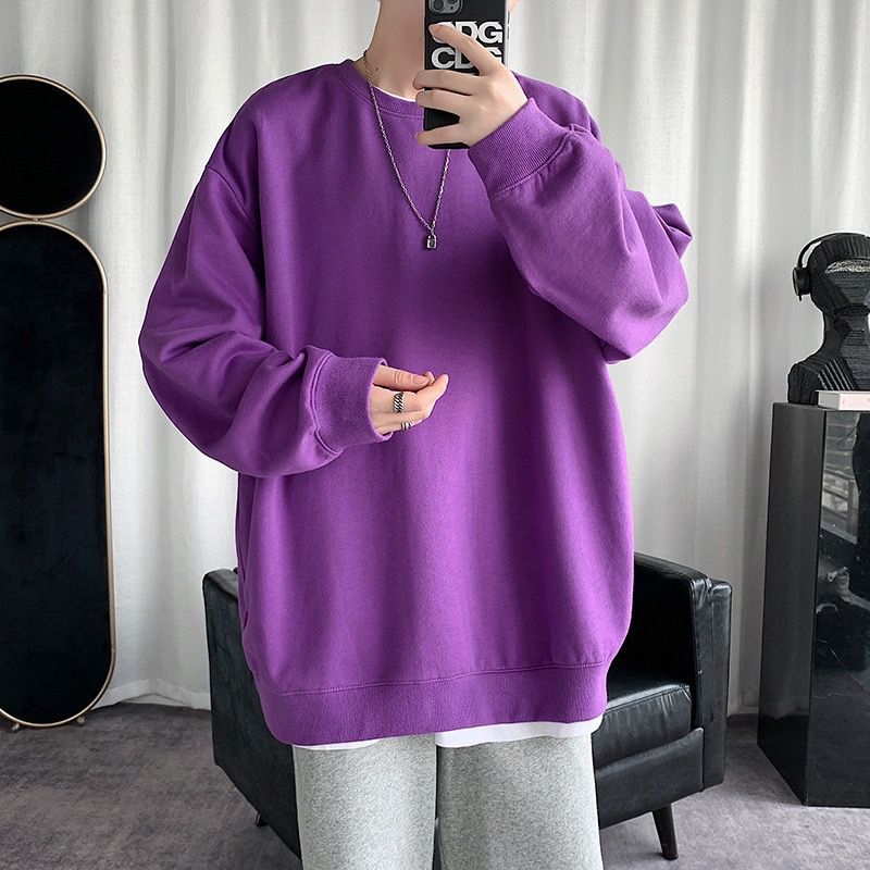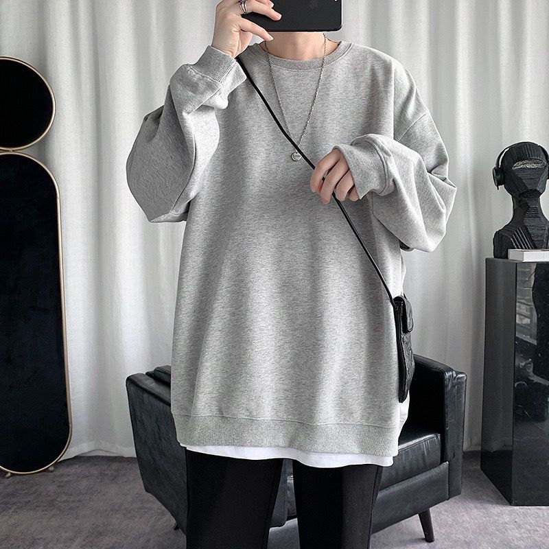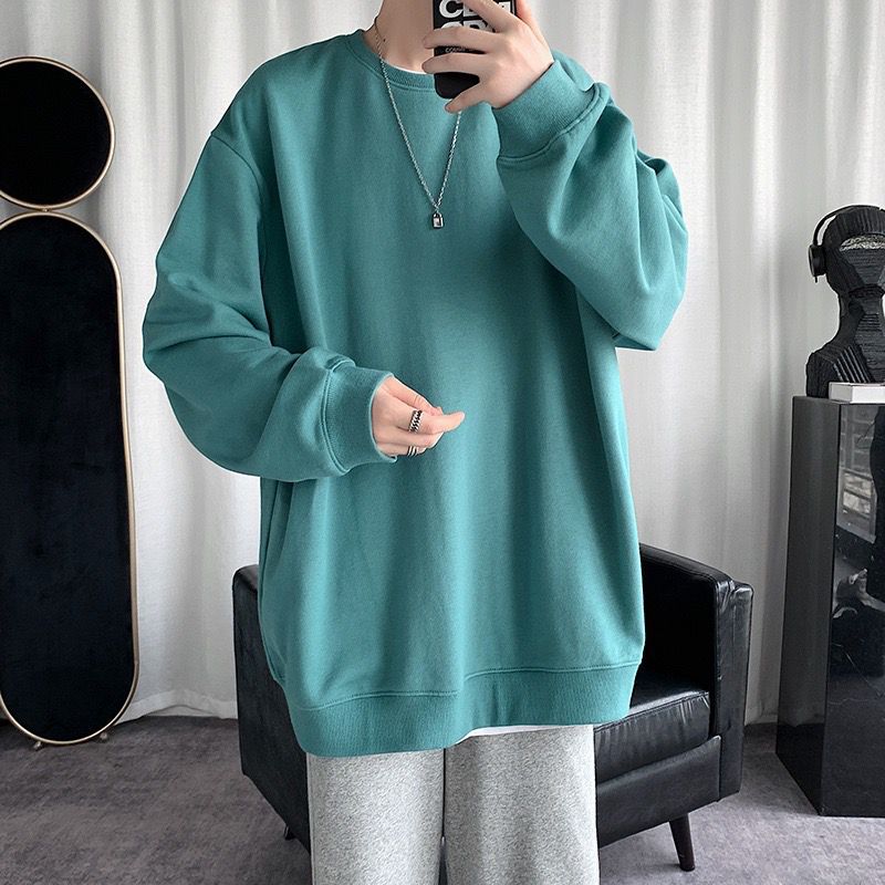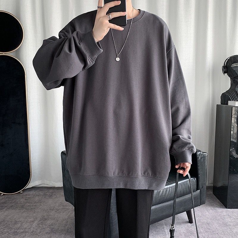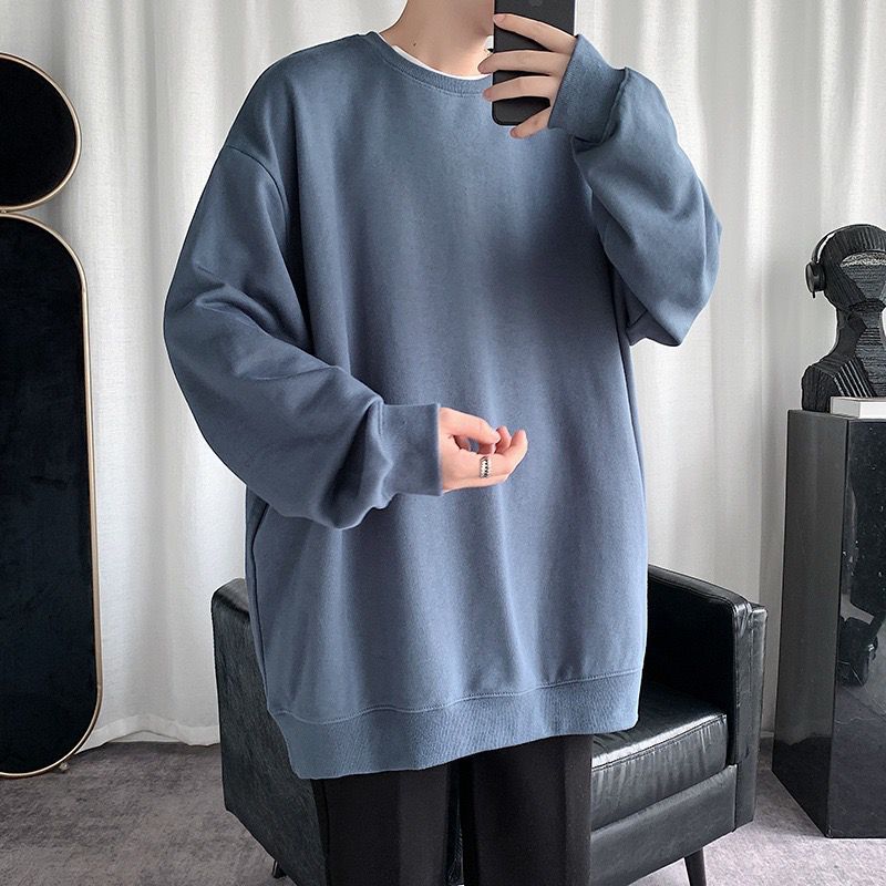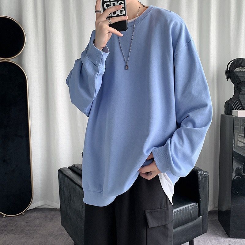 둥근 목 긴팔 티셔츠 남성용 패션 브랜드 게으른 스타일 느슨한 풀오버 가을 옷 봄과 가을 새로운 올 매치 멀티 컬러 스웨터스토어 가기