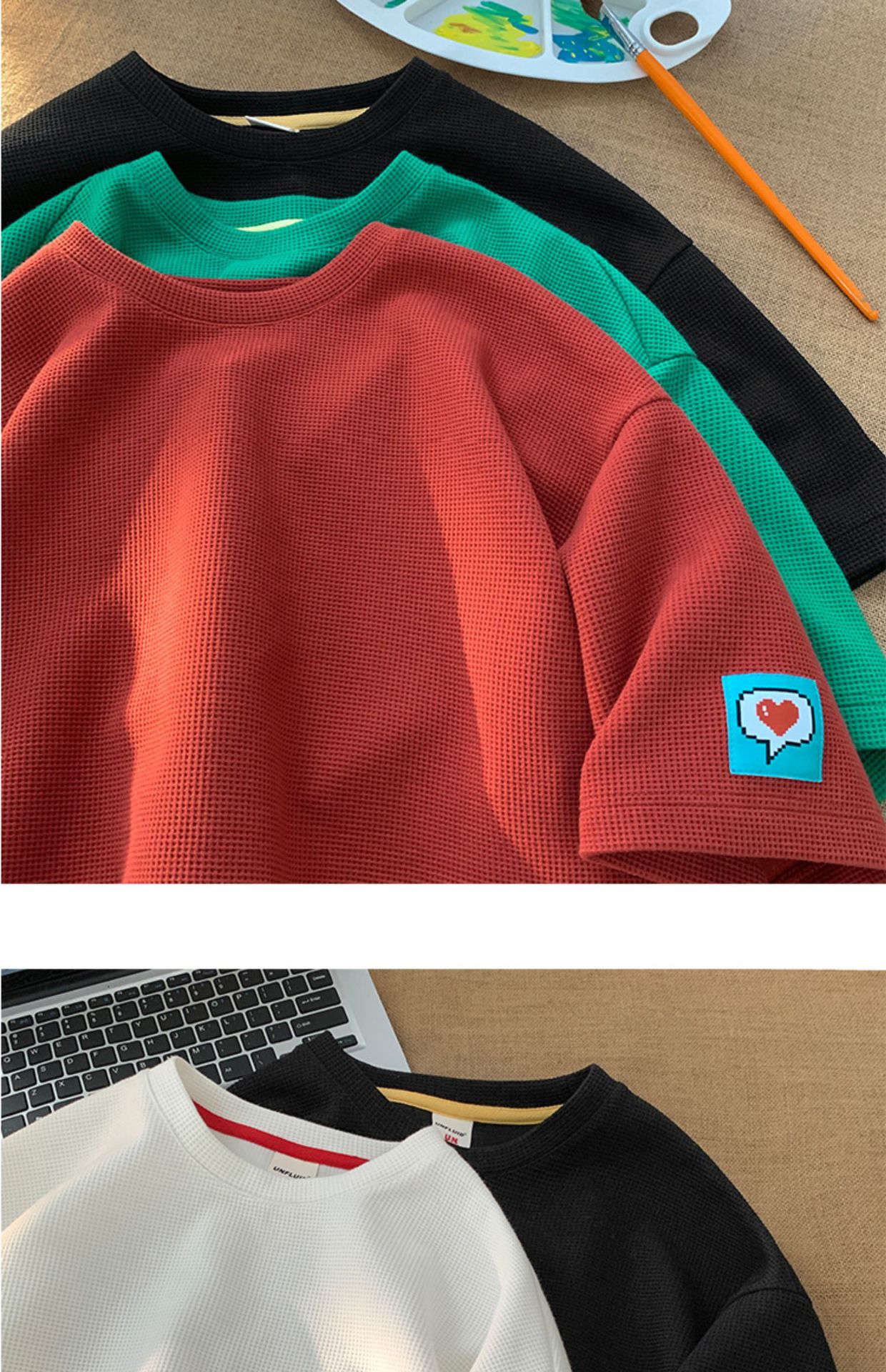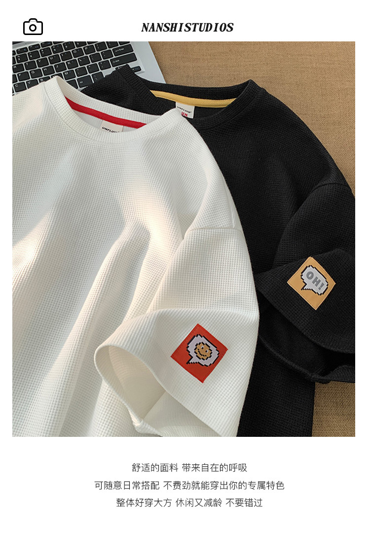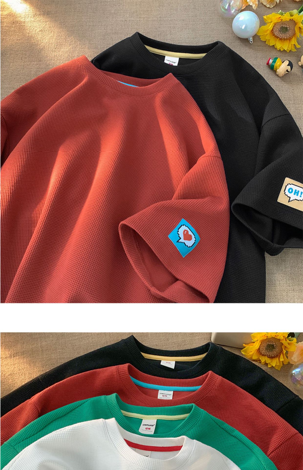 와플 반소매 티셔츠 남성용 여름 루즈 올매치 패션 브랜드 반소매 핸드솜 티셔츠 탑 옷베이스 셔츠스토어 가기