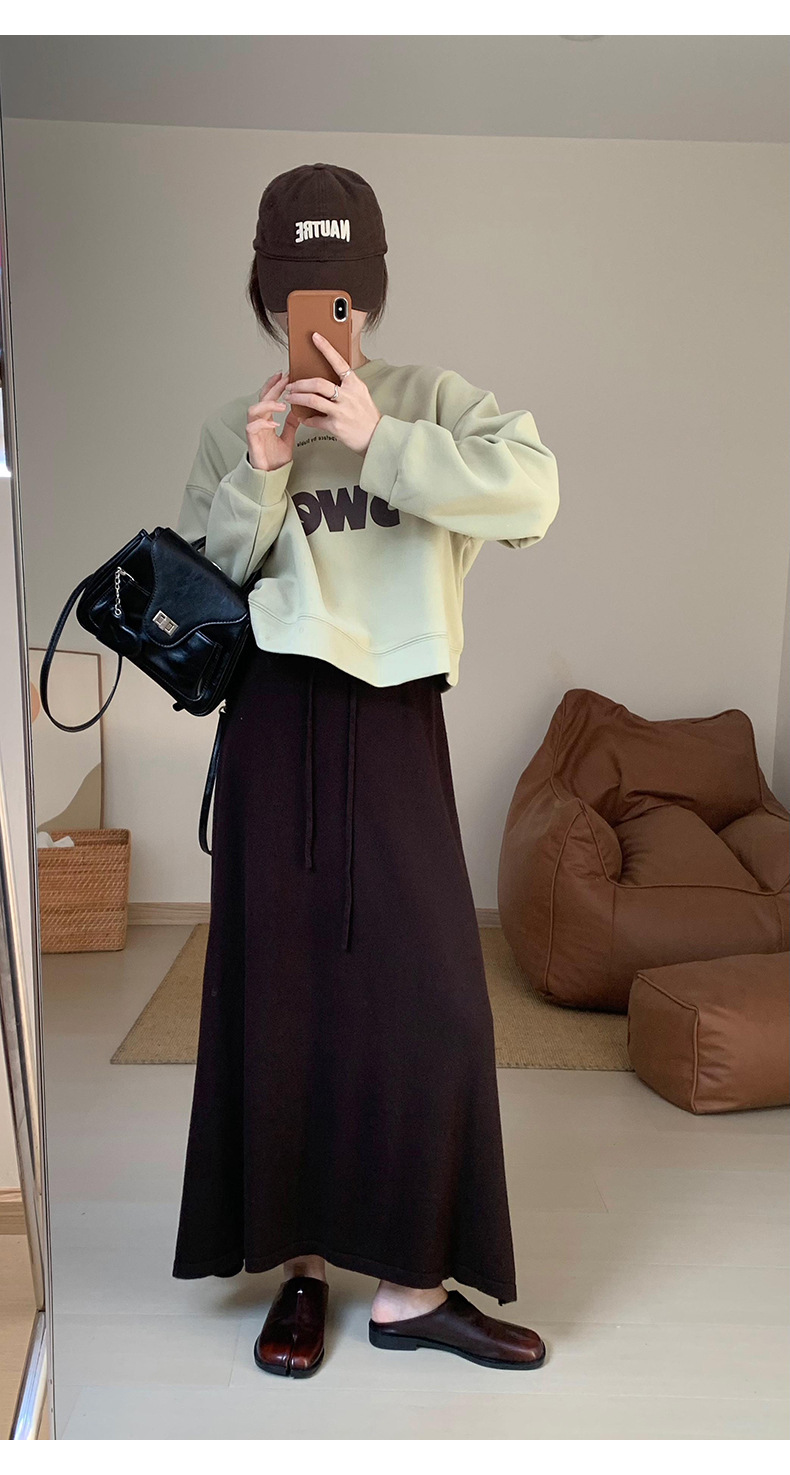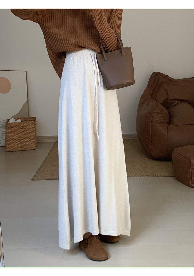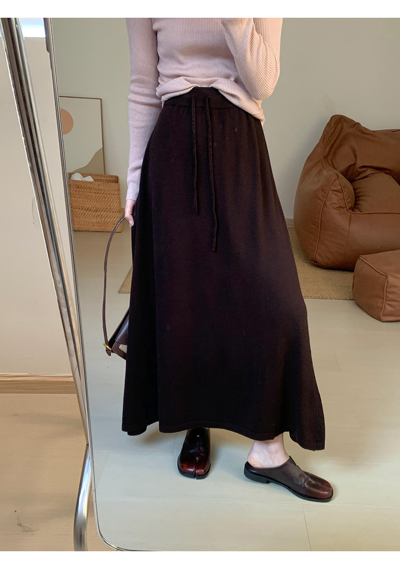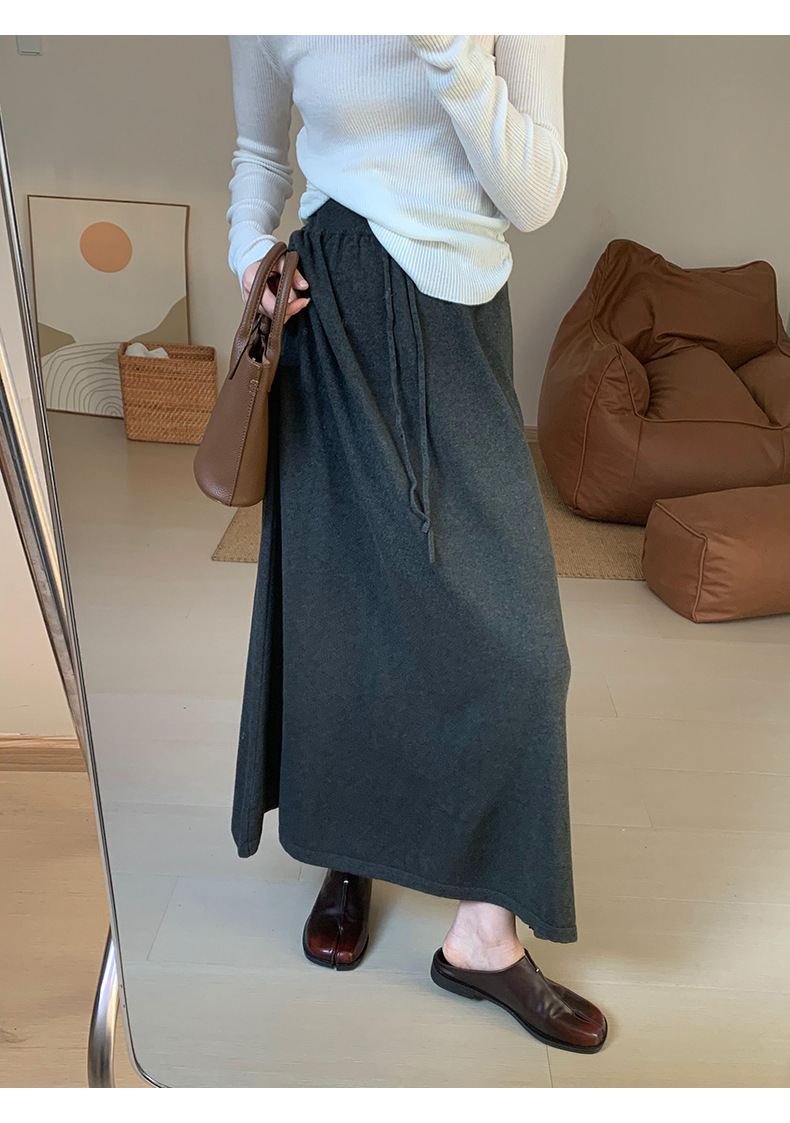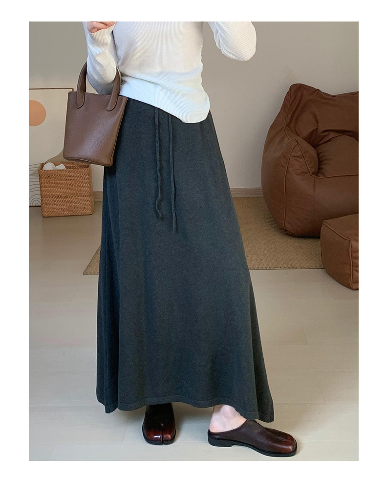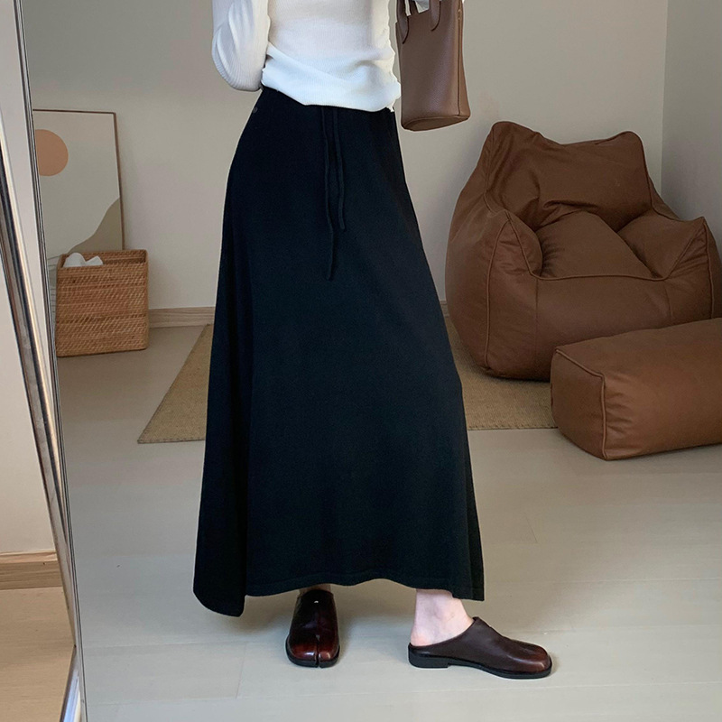 중간 길이 따뜻하고 편안한 니트 스커트 여성 2024 가을 및 겨울 새로운 한국식 타이트 허리 슬리밍 스커트 트렌디스토어 가기
