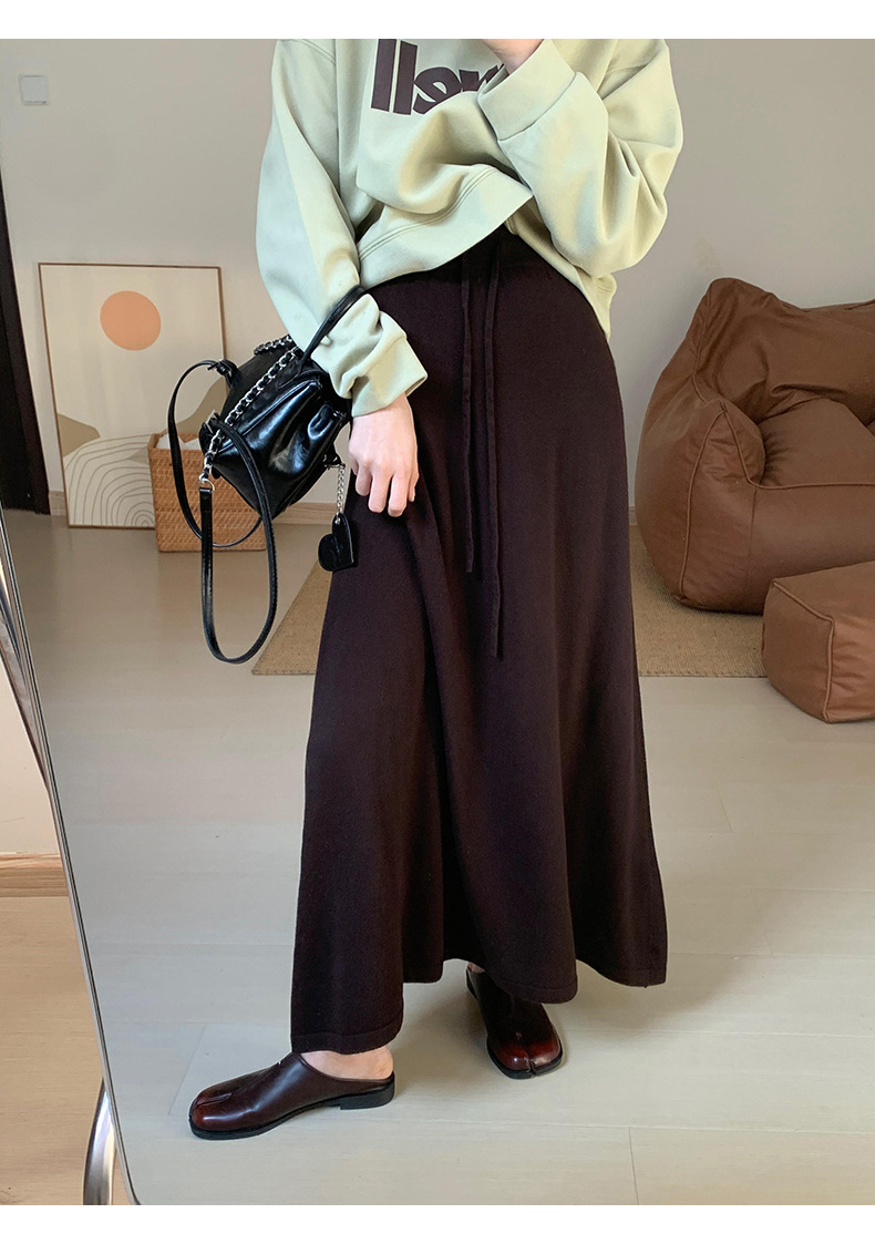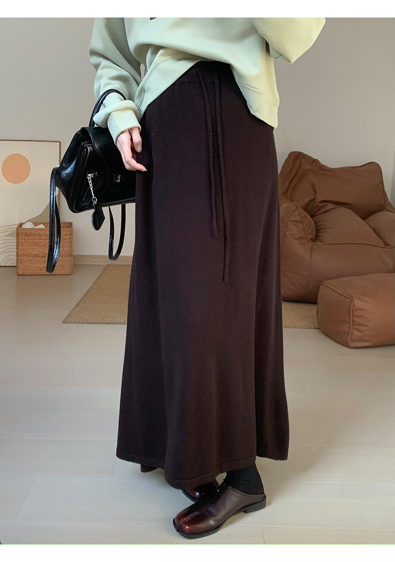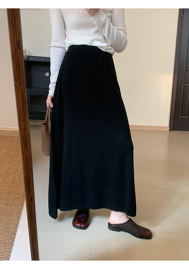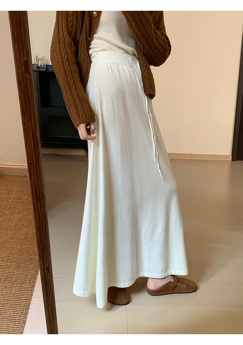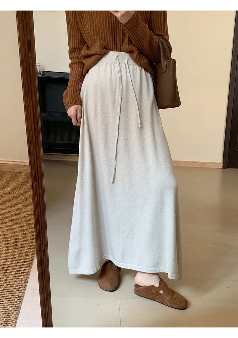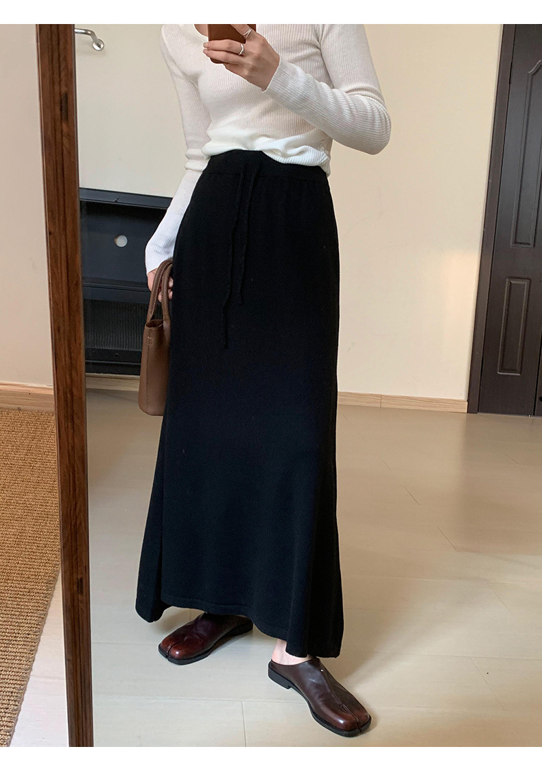 중간 길이 따뜻하고 편안한 니트 스커트 여성 2024 가을 및 겨울 새로운 한국식 타이트 허리 슬리밍 스커트 트렌디스토어 가기