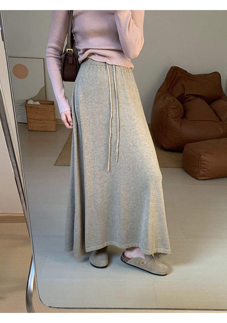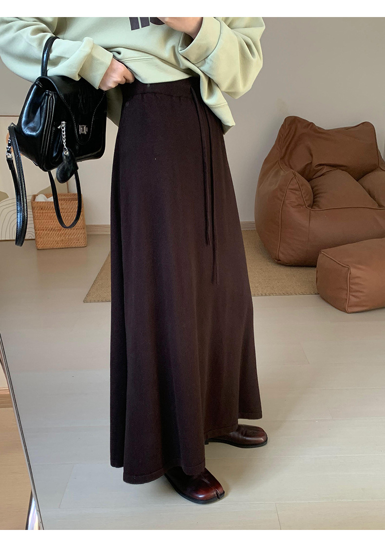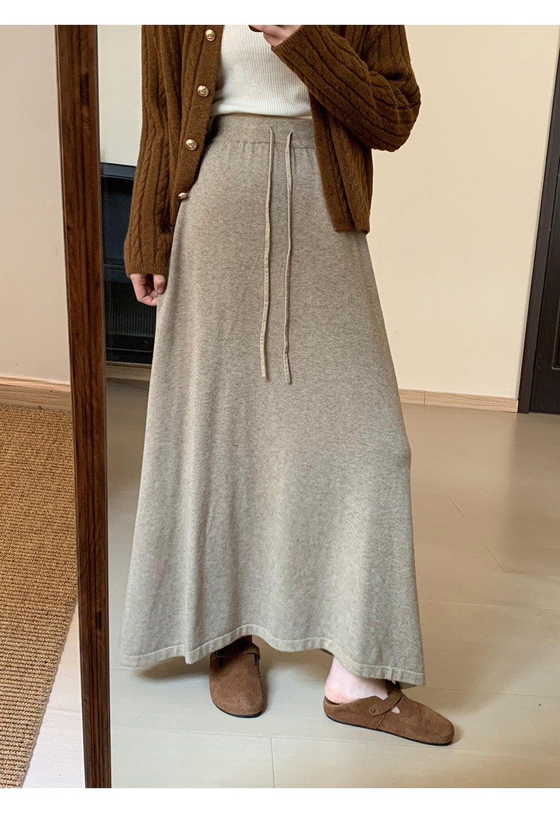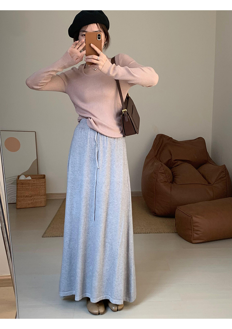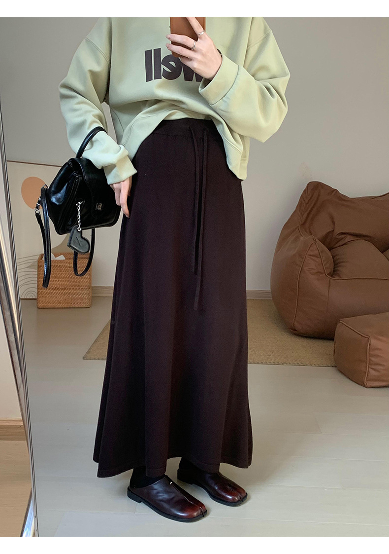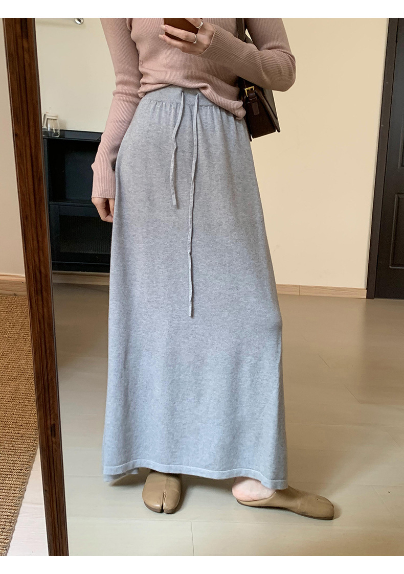 중간 길이 따뜻하고 편안한 니트 스커트 여성 2024 가을 및 겨울 새로운 한국식 타이트 허리 슬리밍 스커트 트렌디스토어 가기