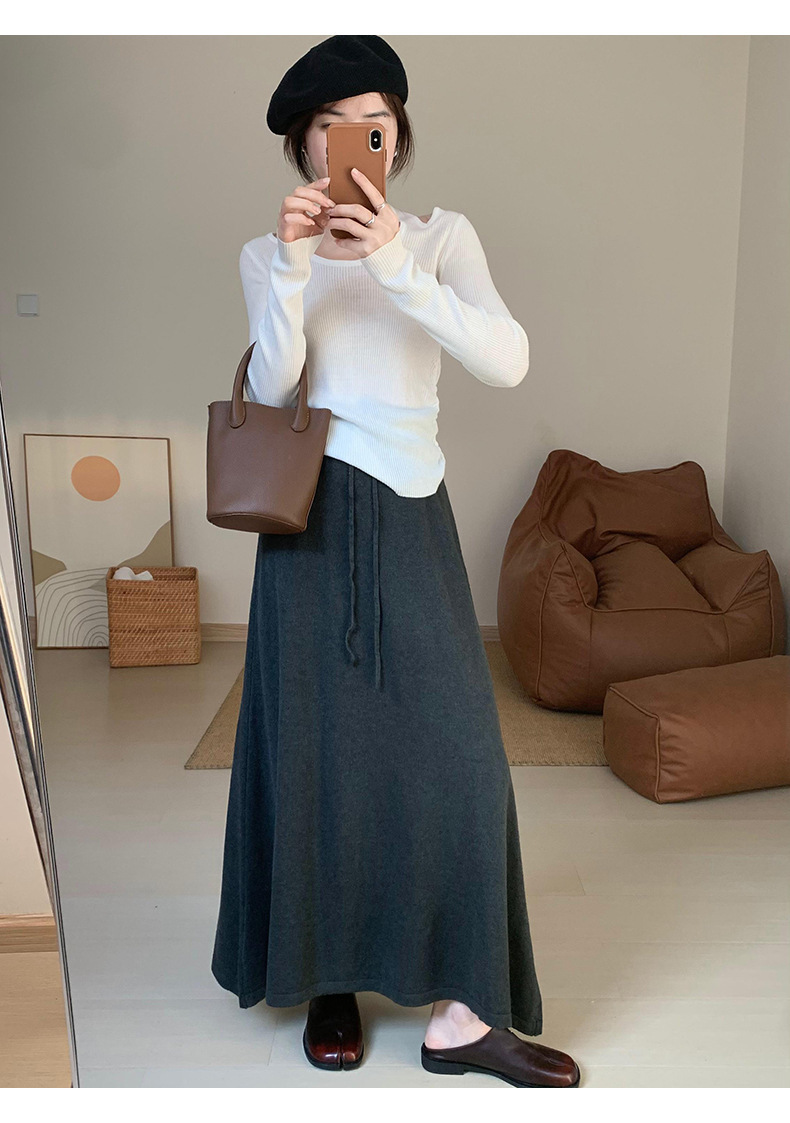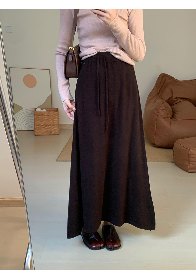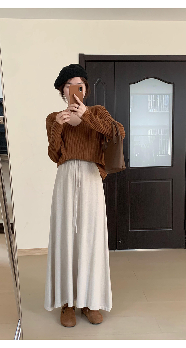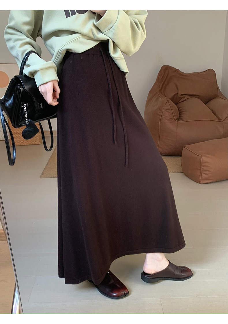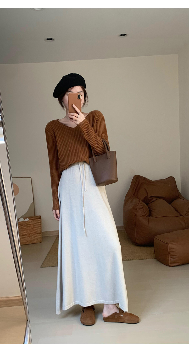 중간 길이 따뜻하고 편안한 니트 스커트 여성 2024 가을 및 겨울 새로운 한국식 타이트 허리 슬리밍 스커트 트렌디스토어 가기