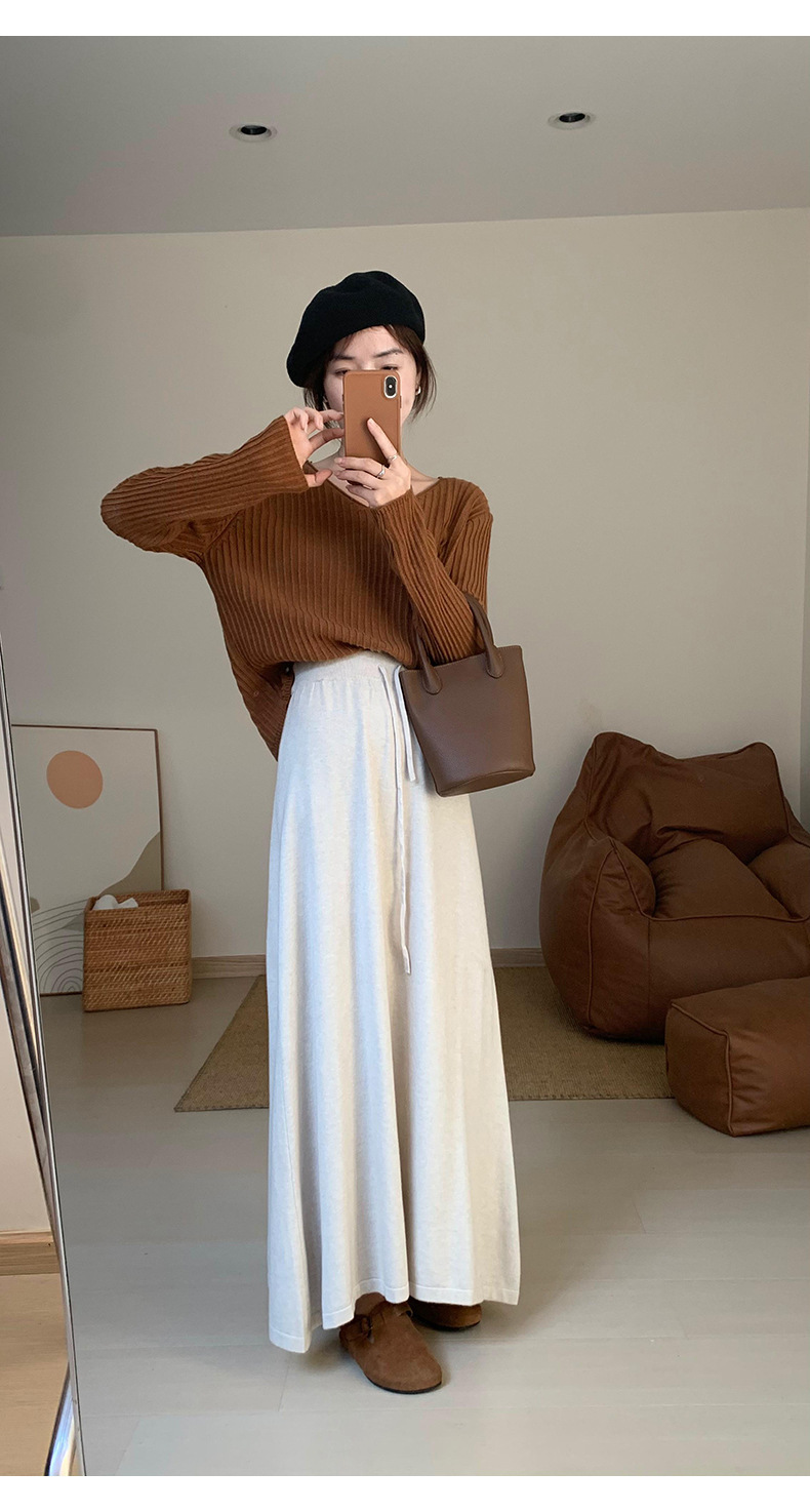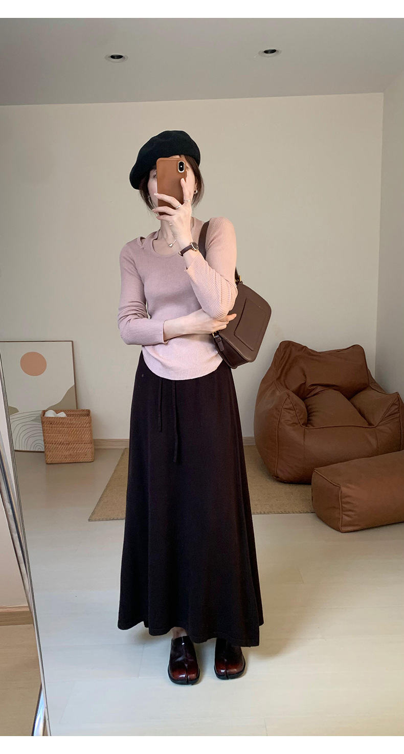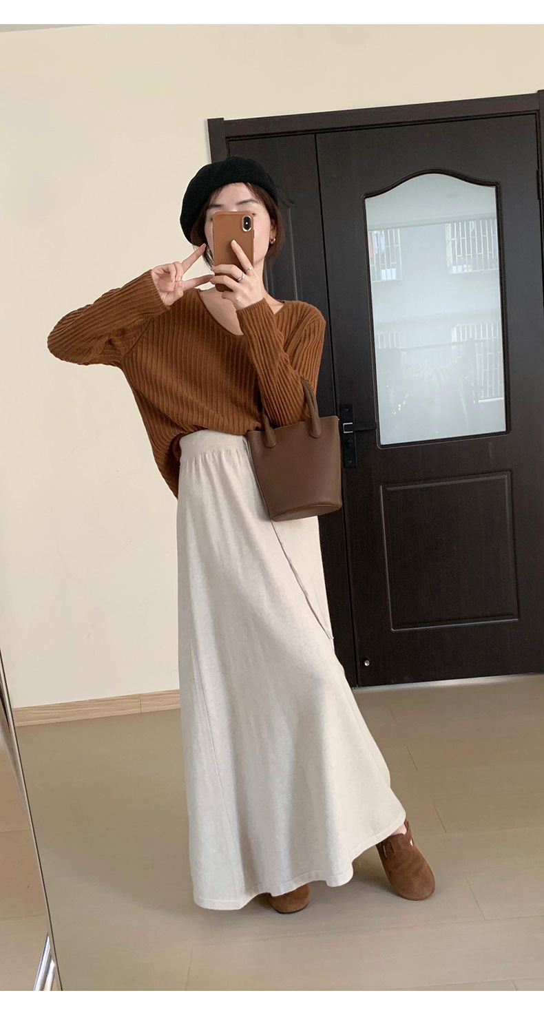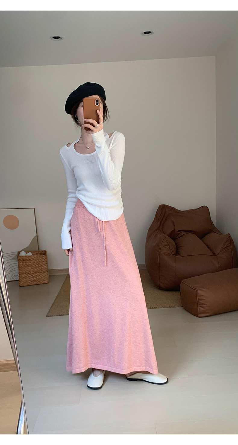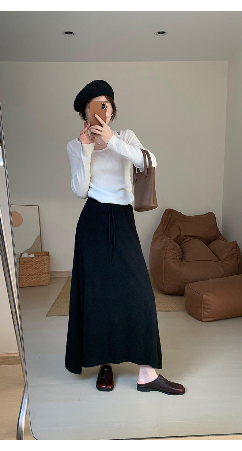 중간 길이 따뜻하고 편안한 니트 스커트 여성 2024 가을 및 겨울 새로운 한국식 타이트 허리 슬리밍 스커트 트렌디스토어 가기