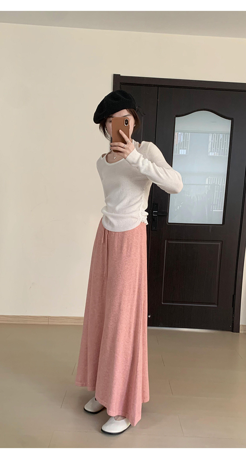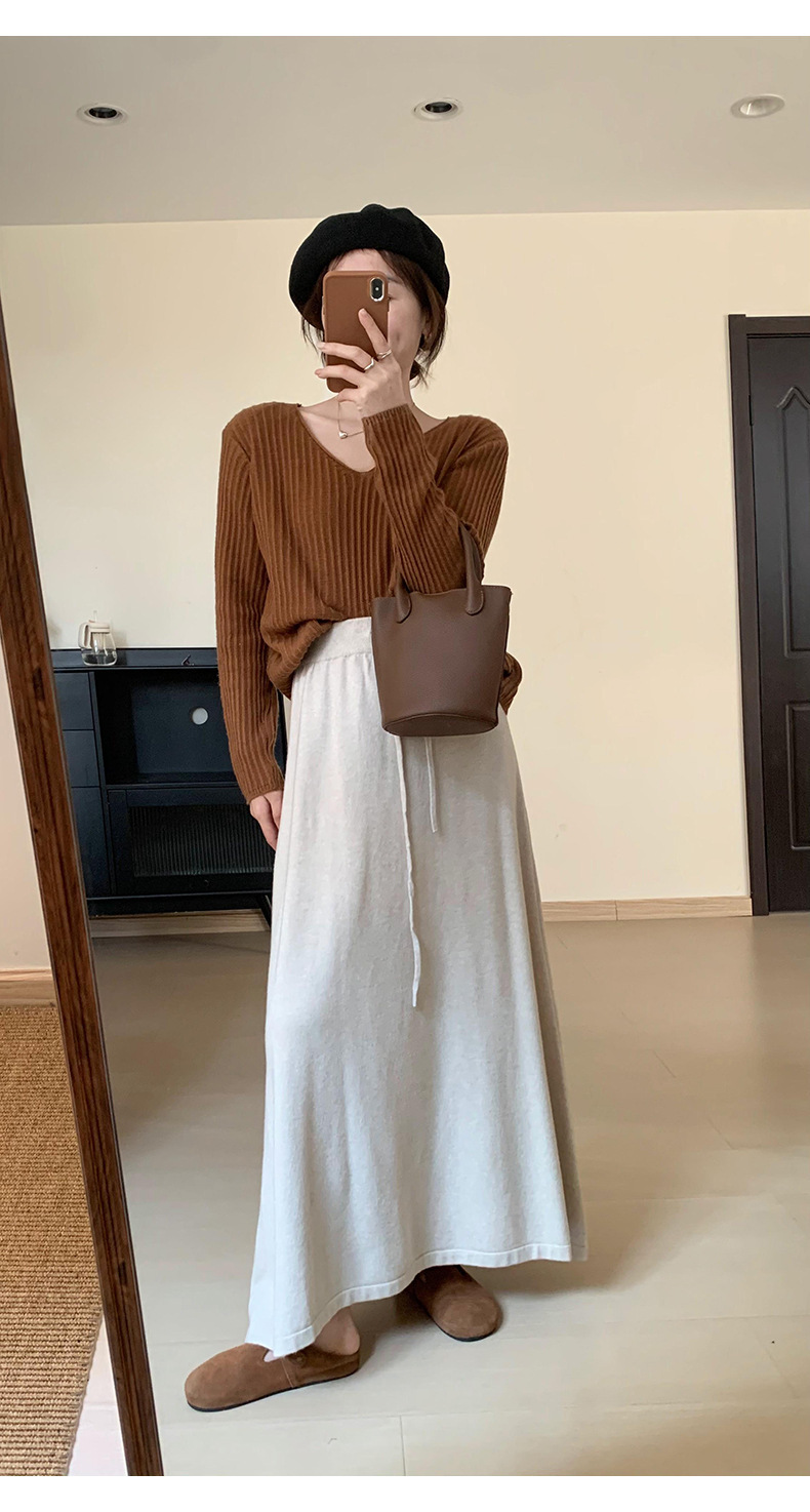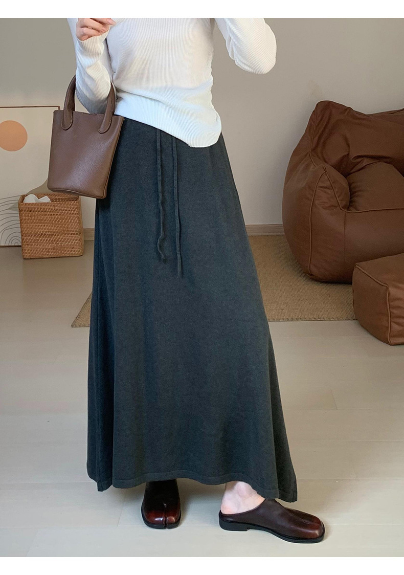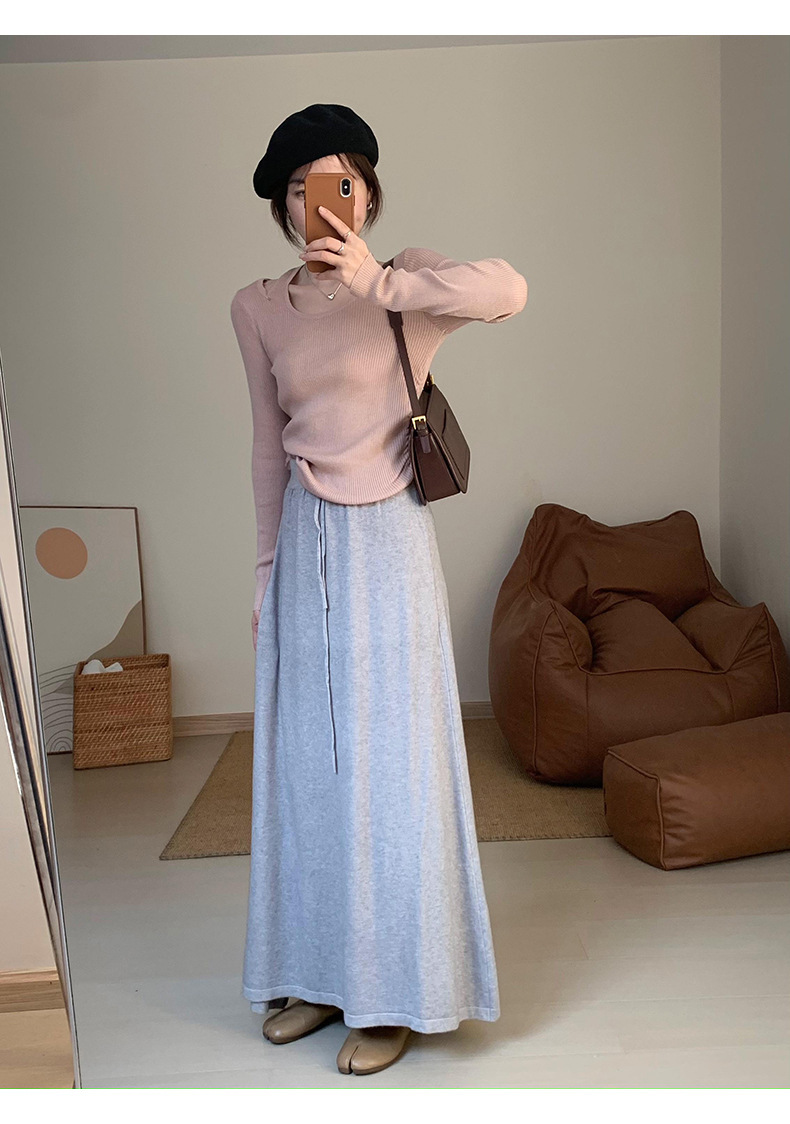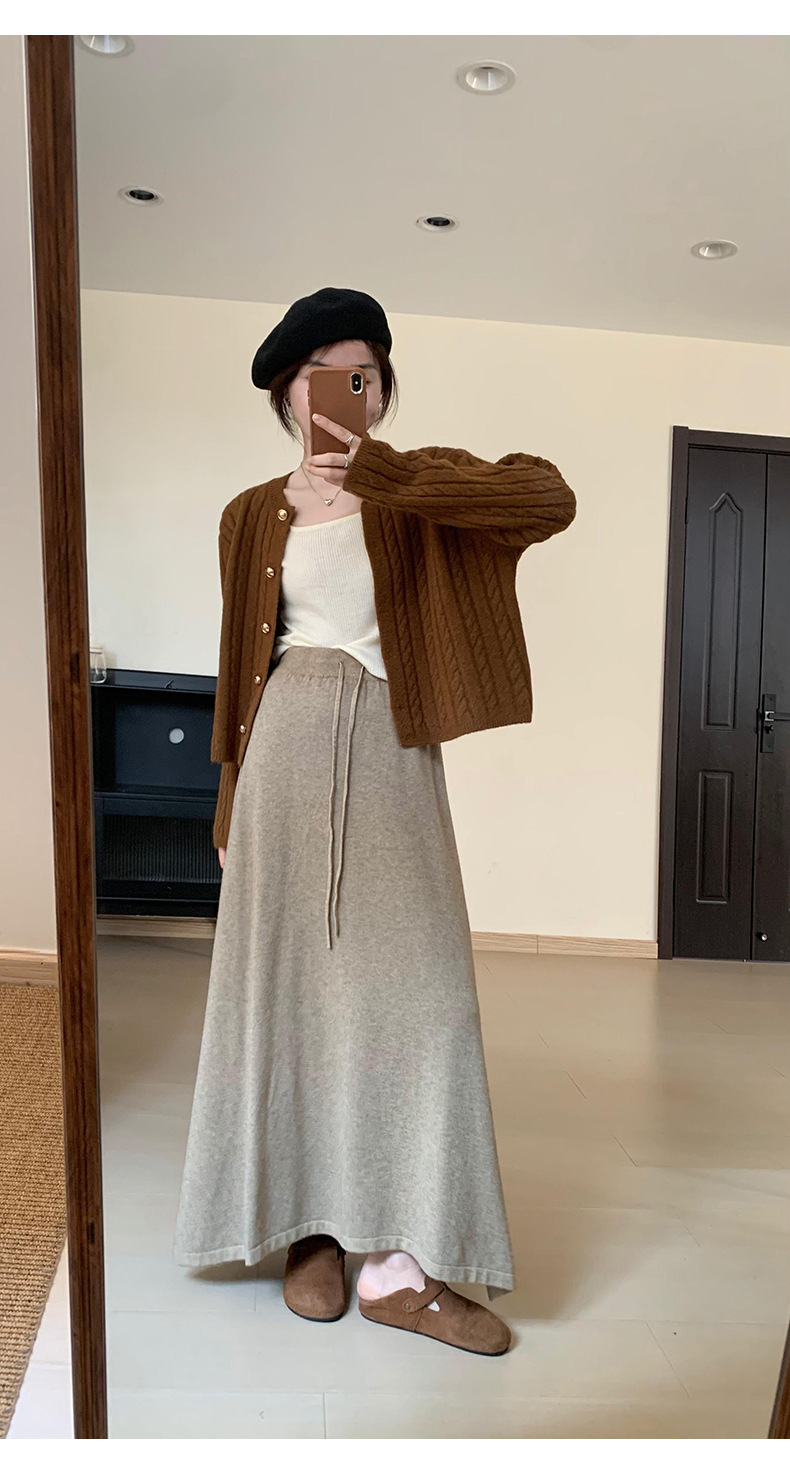 중간 길이 따뜻하고 편안한 니트 스커트 여성 2024 가을 및 겨울 새로운 한국식 타이트 허리 슬리밍 스커트 트렌디스토어 가기