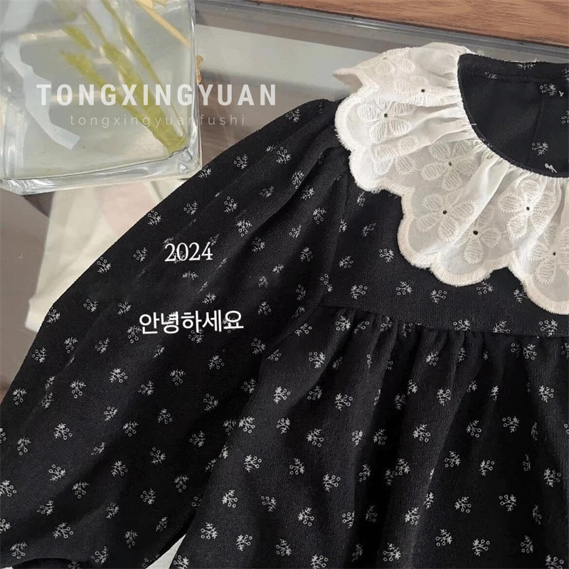 한국 아동복 소녀 한국식 원피스 가을 새로운 복고풍 스타일의 꽃 원피스 어린이 레이스 옷깃 공주 원피스스토어 가기