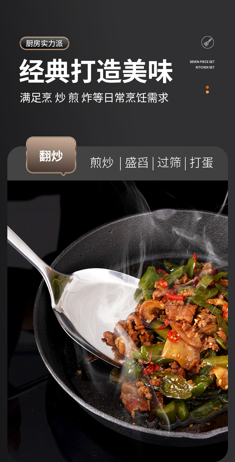 국경 간 유럽 표준 스테인레스 스틸 주방 용품 세트 소쿠리 주걱 스파게티 스푼 수프 스푼 달걀