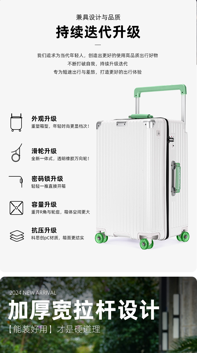 와이드 풀로드 수하물 케이스 여성용 소형 경량 20 인치 탑승 케이스 높은 색상 값 24 인치 여행 케이스 음소거 유니버설 휠