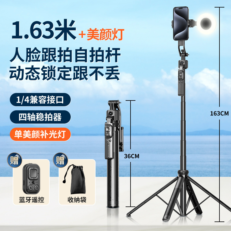 • C17-블랙- 1.63m 】필라이트 + 쿼드포드 + 블루투스 리모컨 + 1/4 커넥터 +360 ° 회전 클립 + 지능형 추적 + 알루미늄 합금 폴