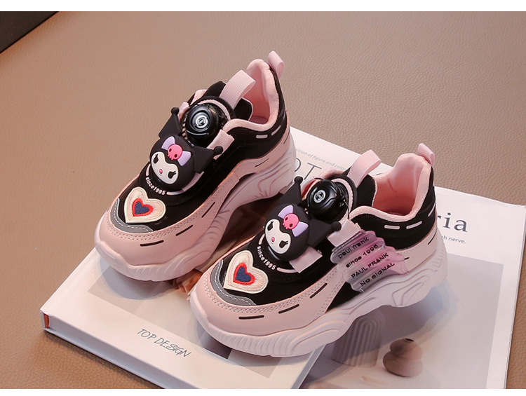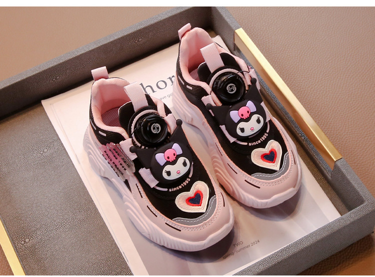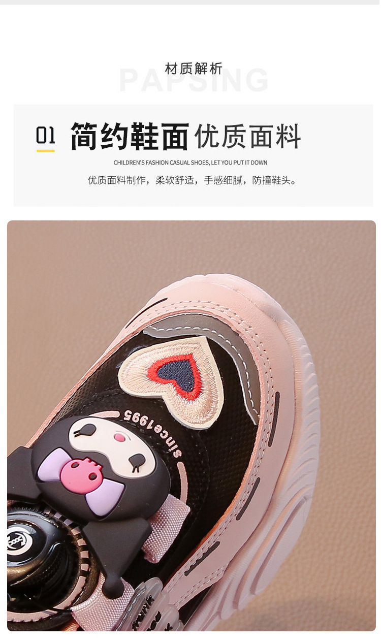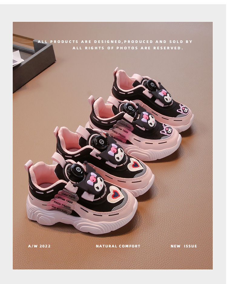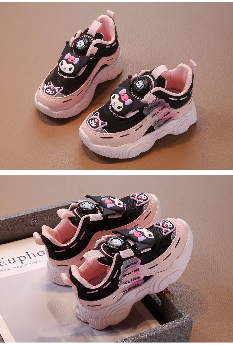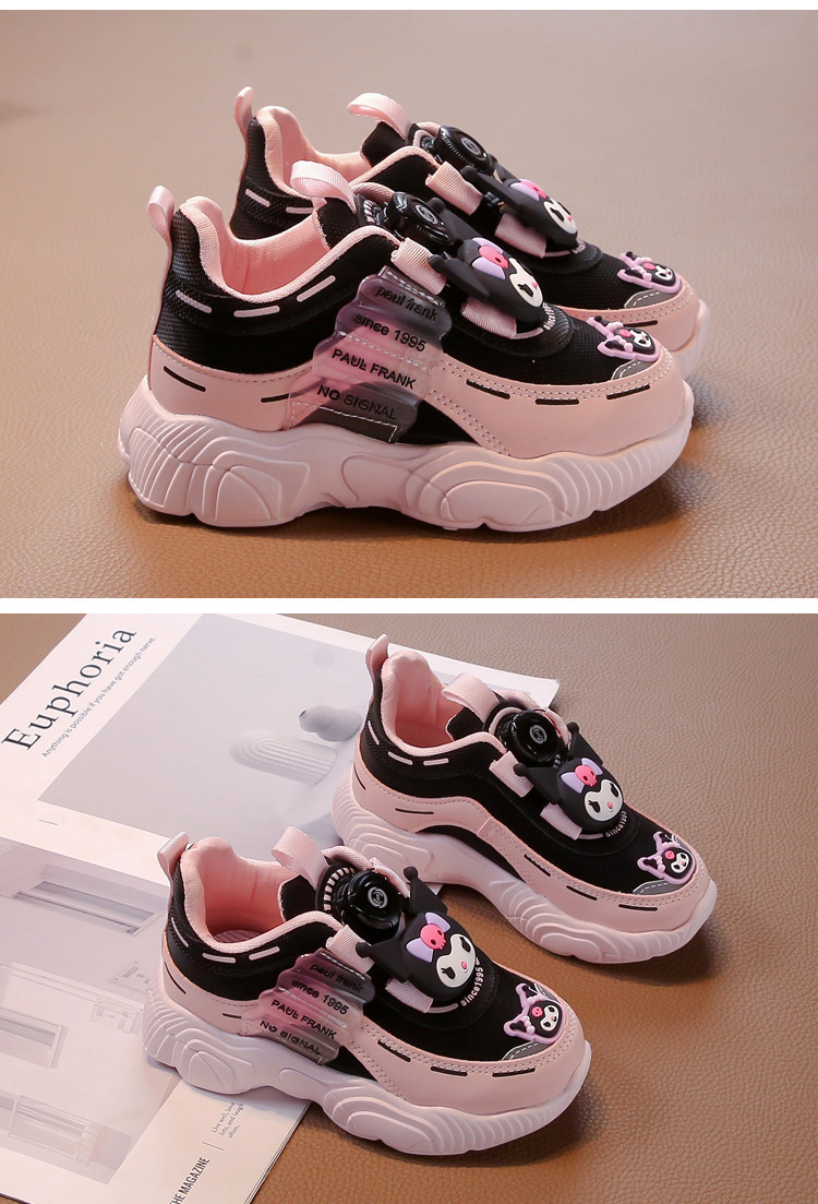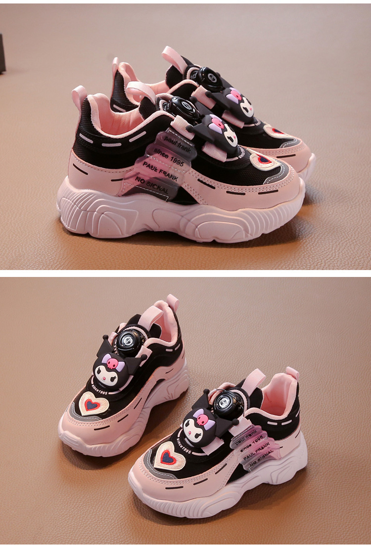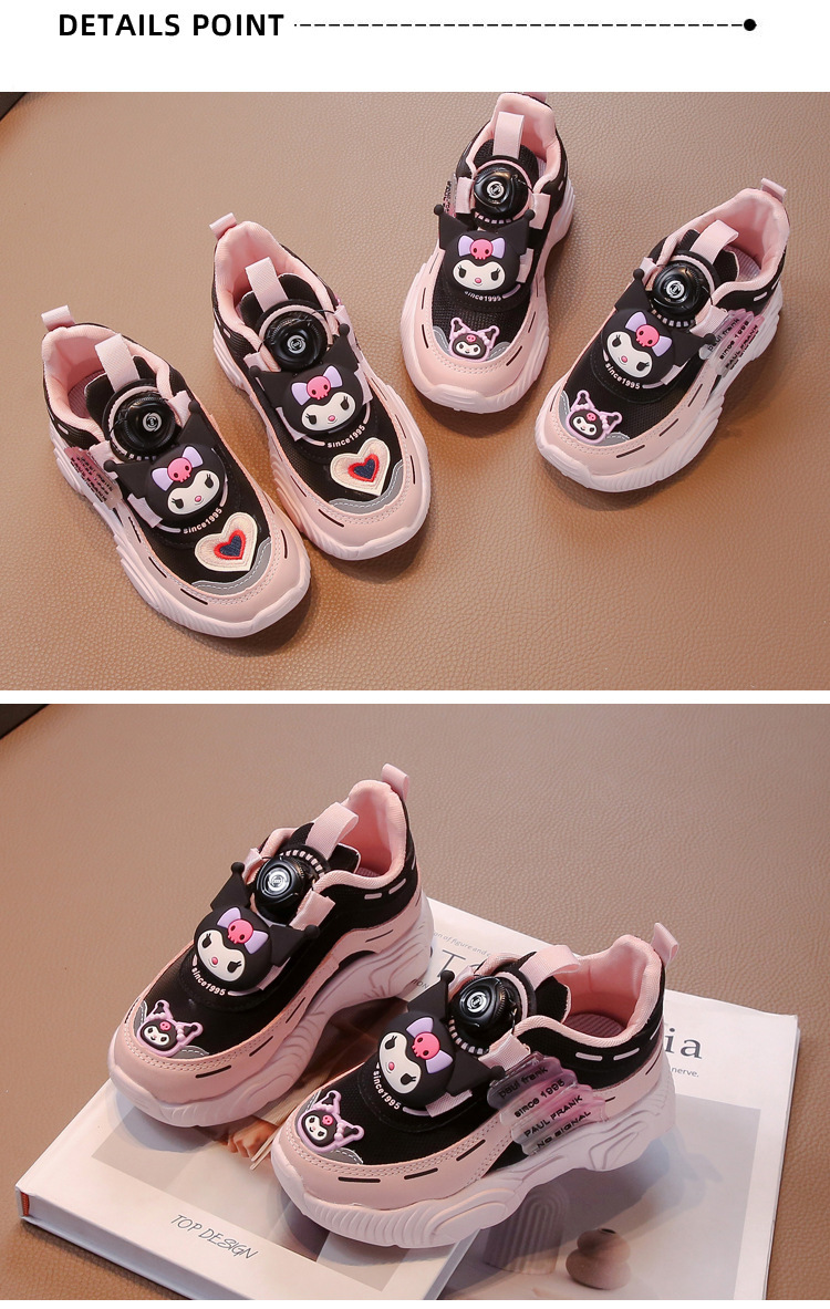 [재고] 소녀 쿨로미 메쉬 버튼 신발 어린이 운동화 가죽 캐주얼 신발 소프트 솔