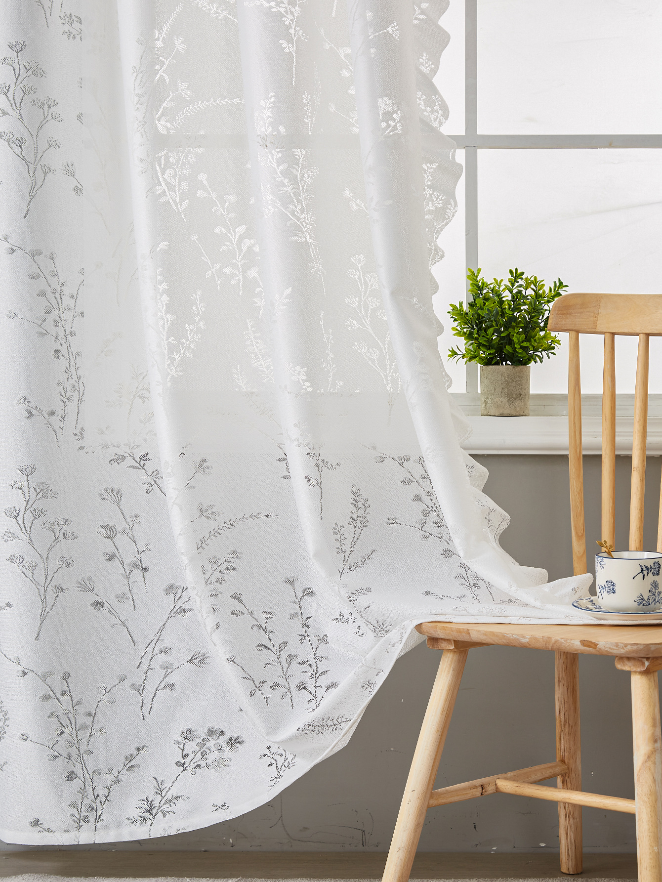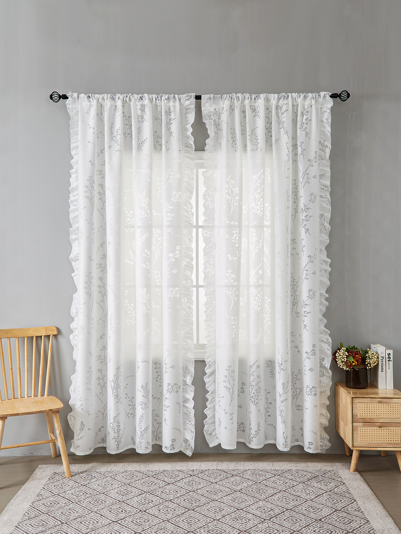 새로운 미국 리드 플라워 러플 커튼 천 그늘 커튼 거실 발코니 커튼 마감 커튼 도매