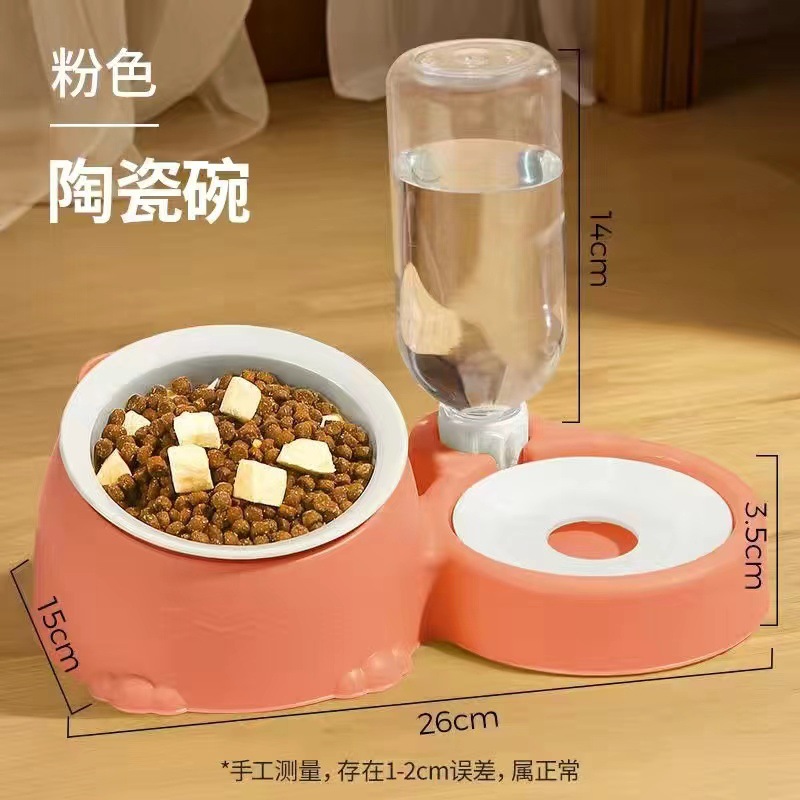 국경 간 폭발 고양이 그릇 고양이 다기능 그릇 자동 물 디스펜서 안티 노크 틸팅 목 보호 고양이 그릇 애완 동물 용품