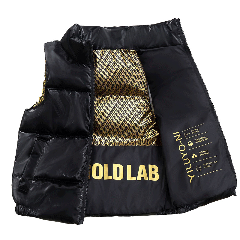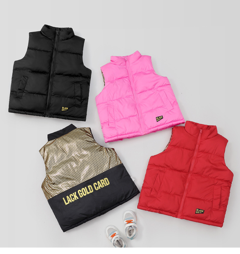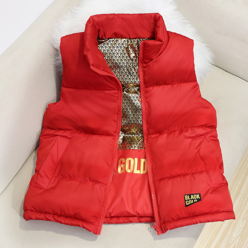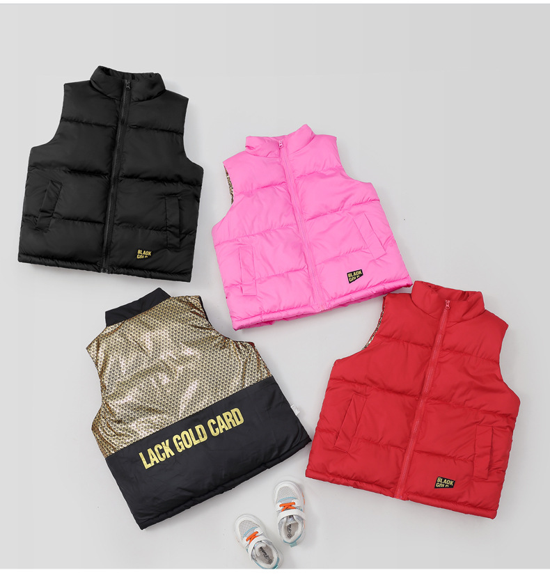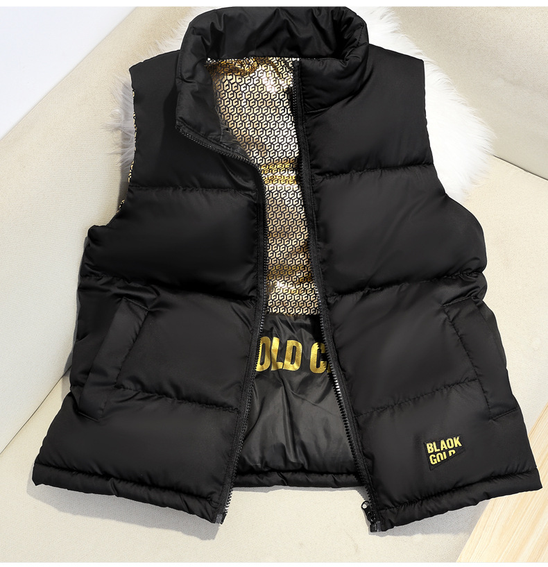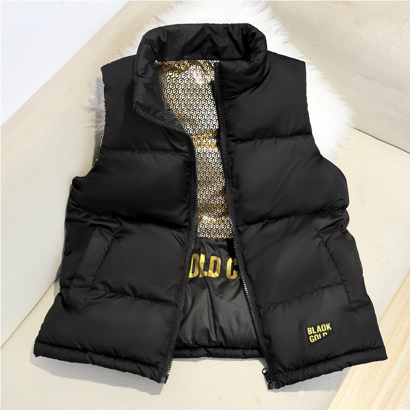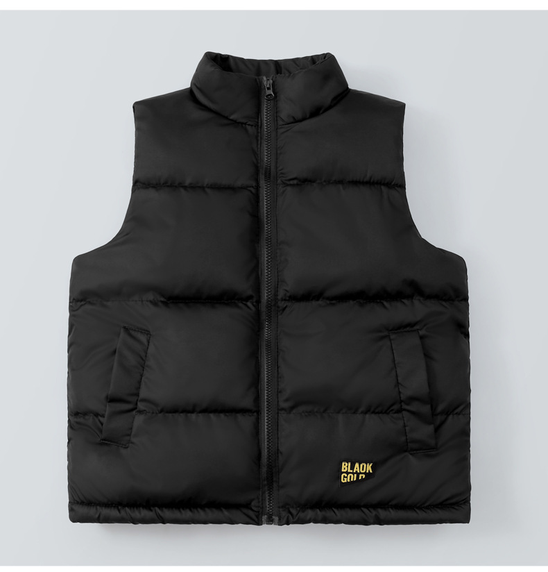 2024 그래 핀 블랙 골드 폭발성 스타일 대형 어린이를위한 수직 칼라 조끼 남성과 여성의 외복을위한 두꺼운 따뜻한 조끼