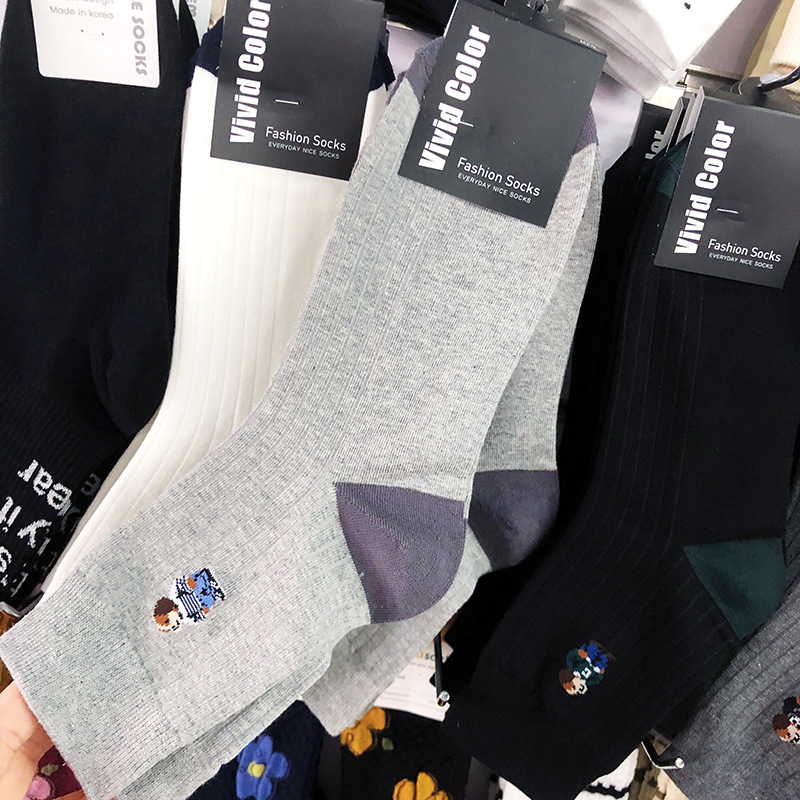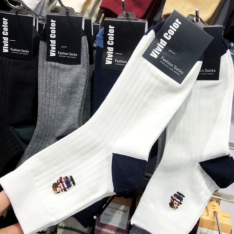 한국 VIVID 남성 양말 2024 빈티지 영국 스타일 신사의 곰 유행 남성 양말 패션 컬러 블록 면 양말스토어 가기