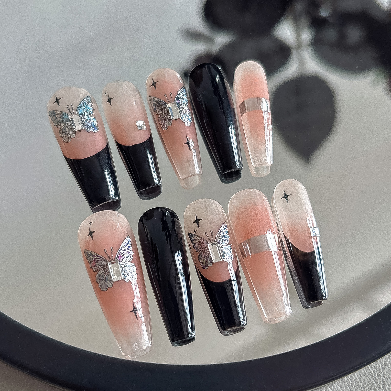 개미 그림 YITU 금속 액체 나비 네일 아트 스티커 브론징 실버 벨트 접착 스마트 나비 YT3715스토어 가기