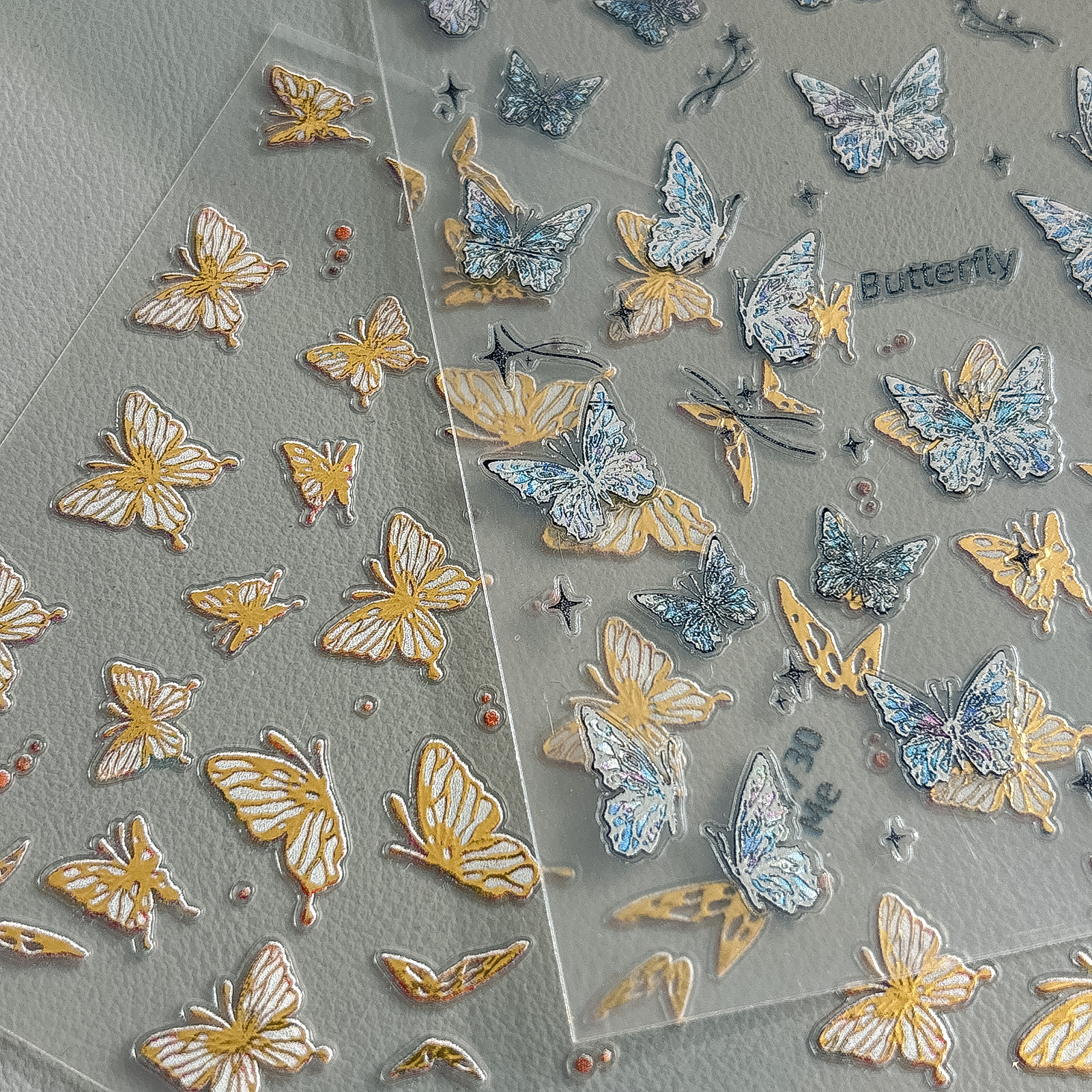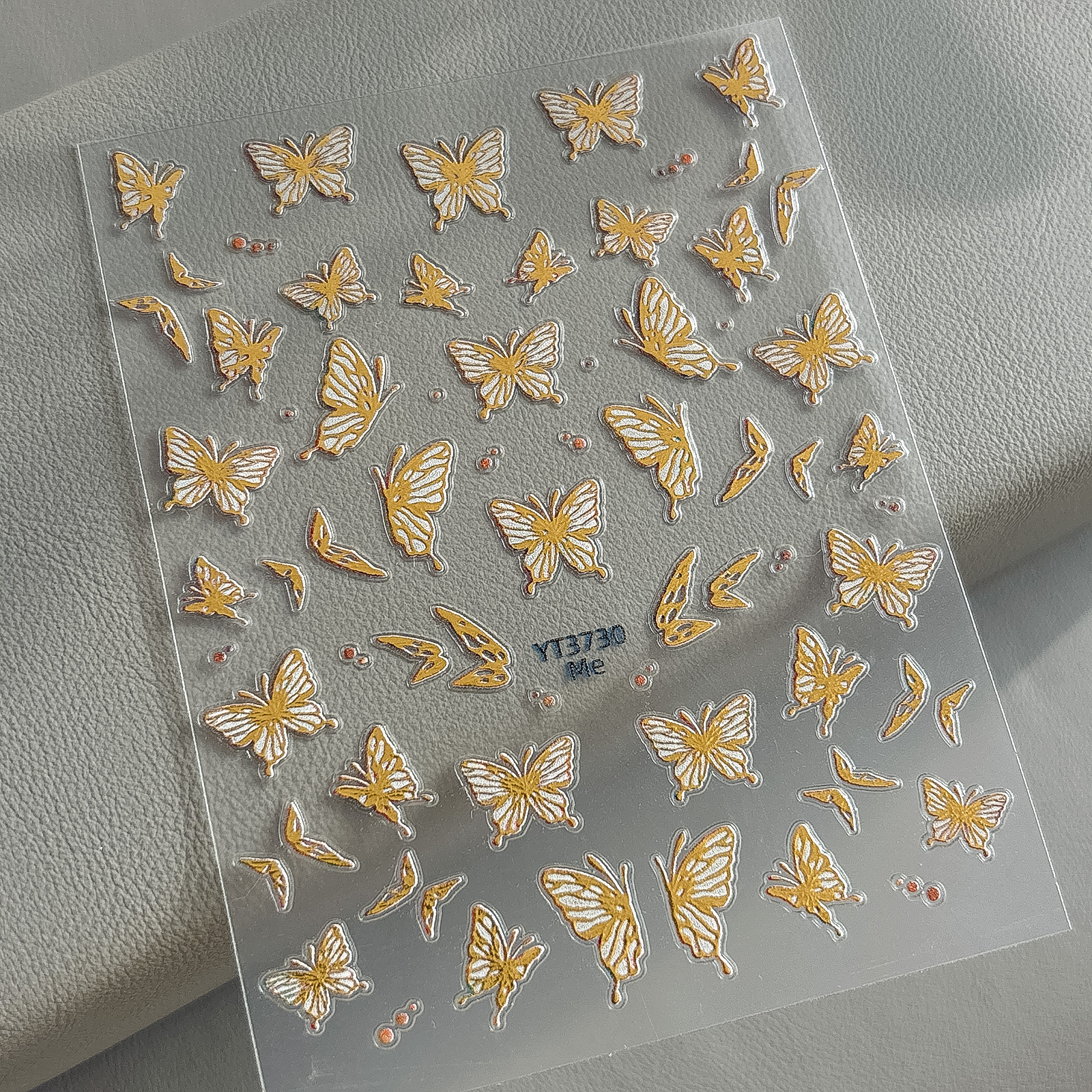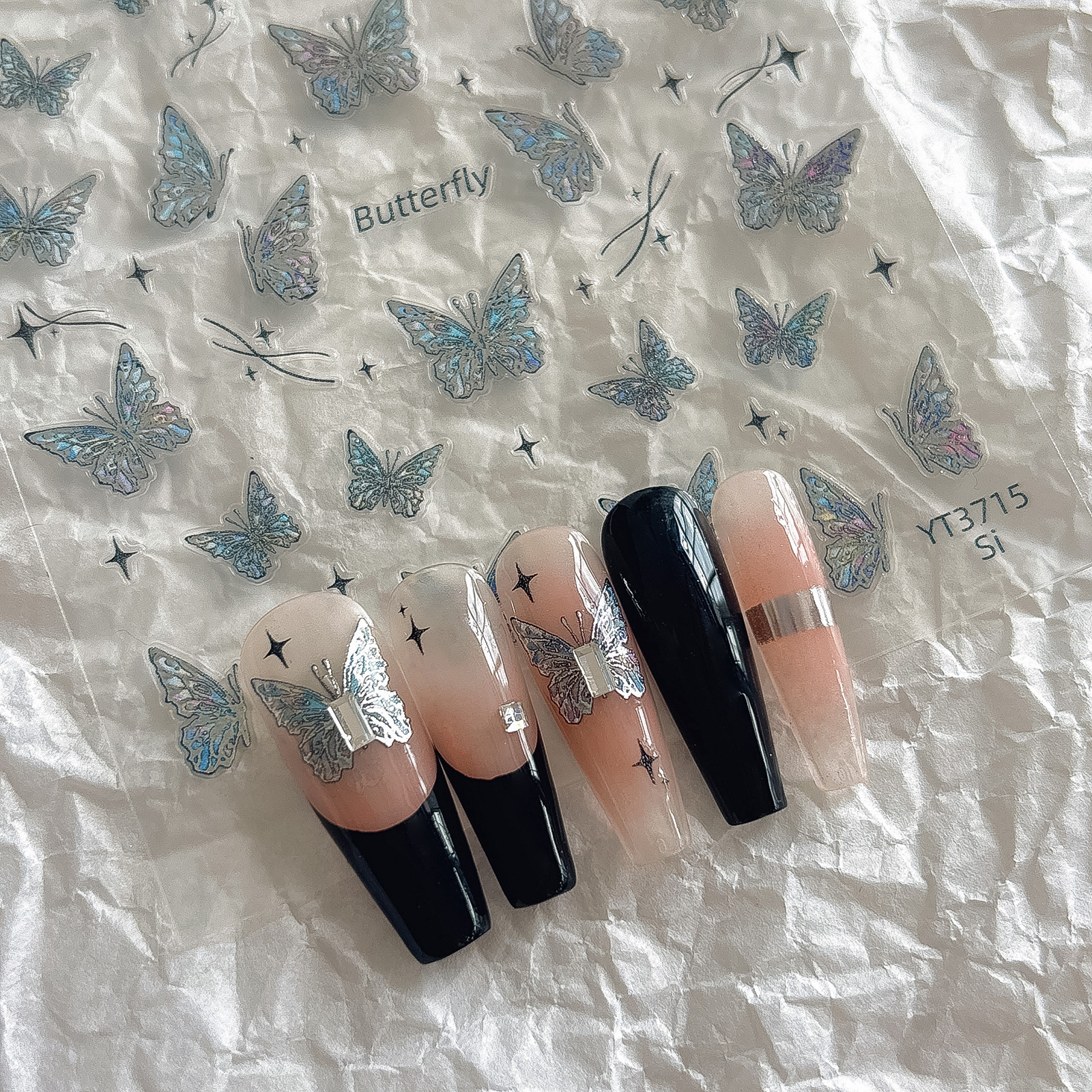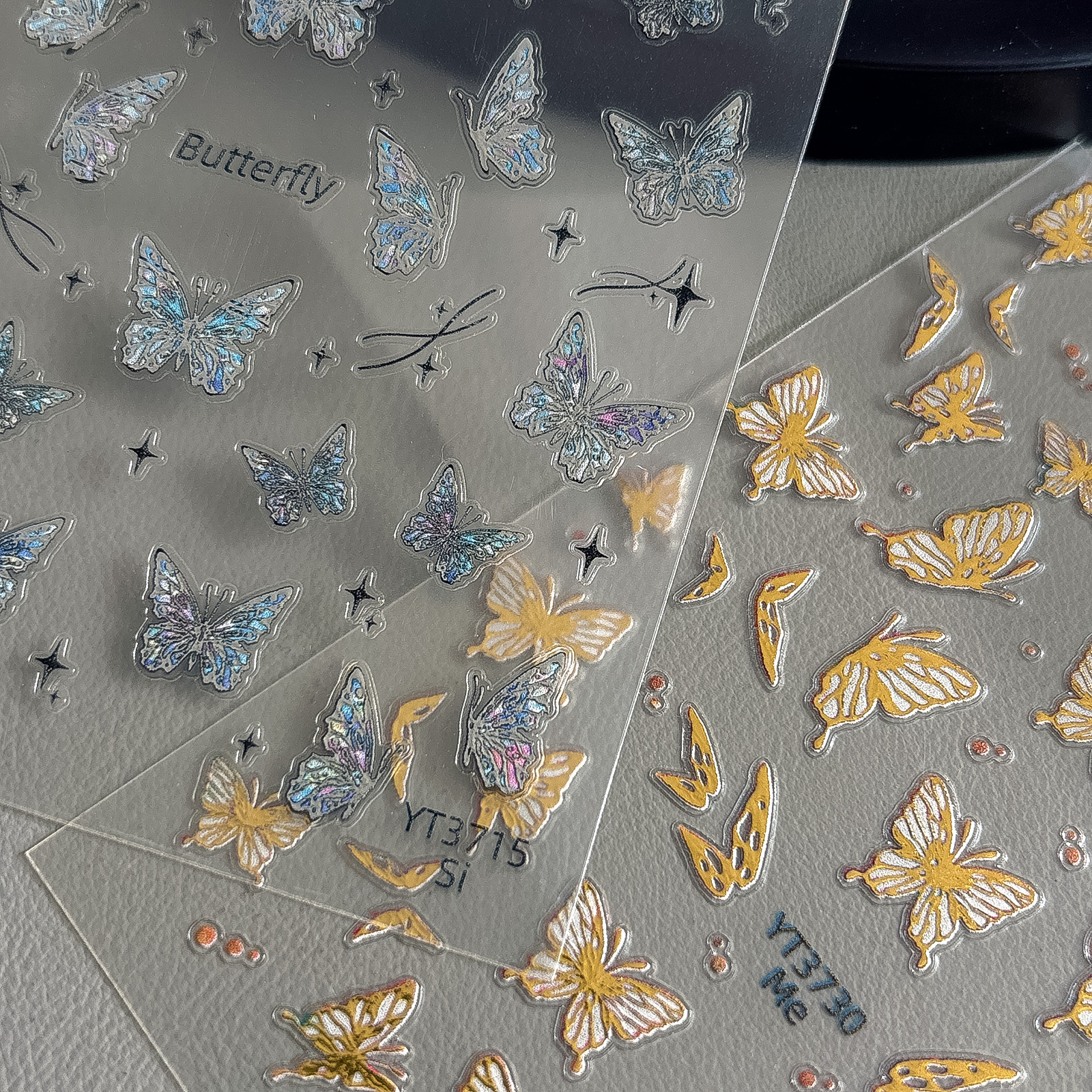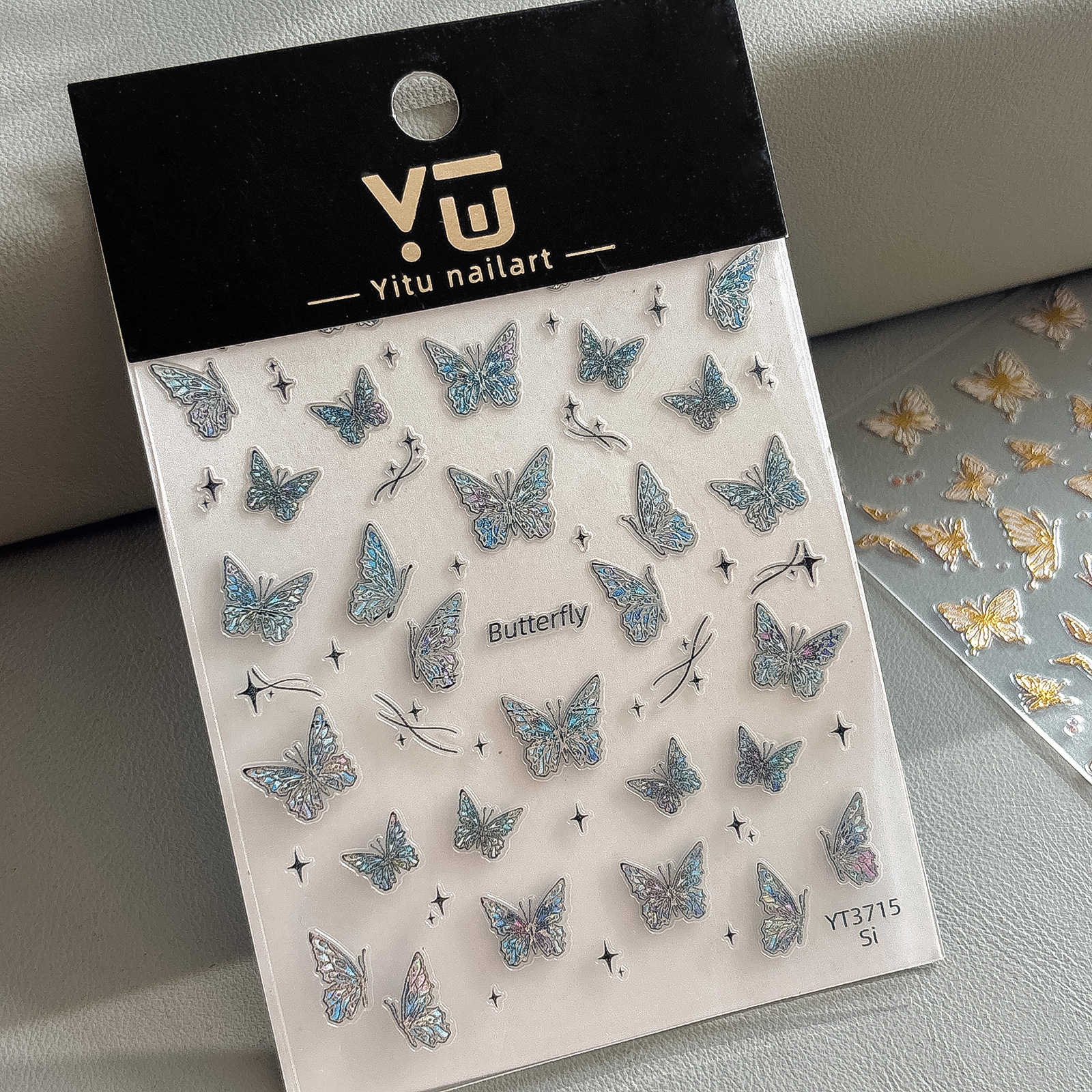 개미 그림 YITU 금속 액체 나비 네일 아트 스티커 브론징 실버 벨트 접착 스마트 나비 YT3715