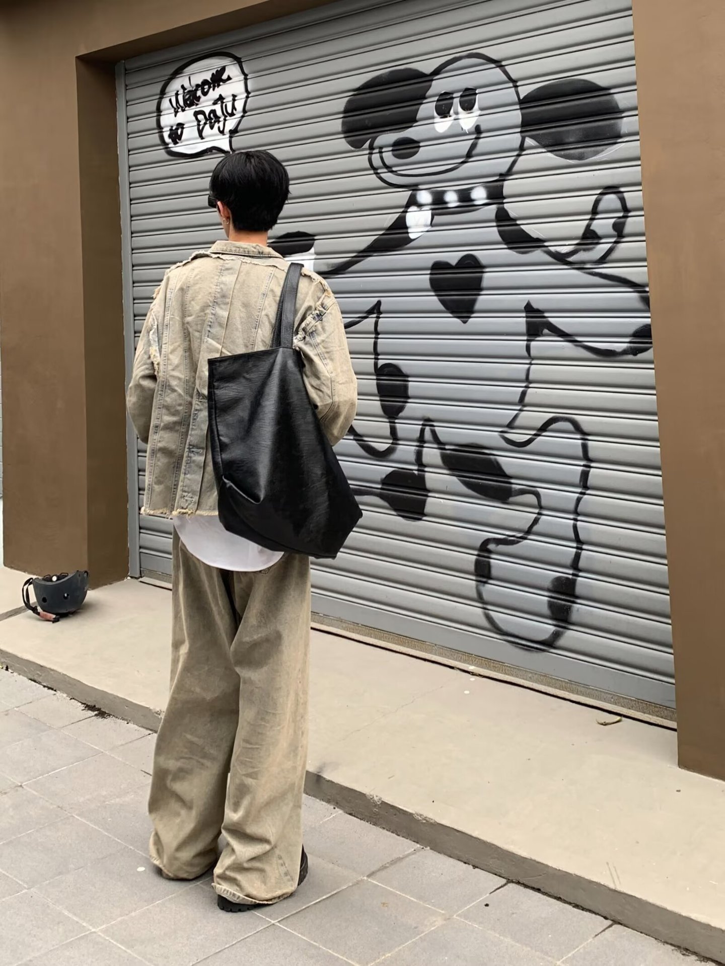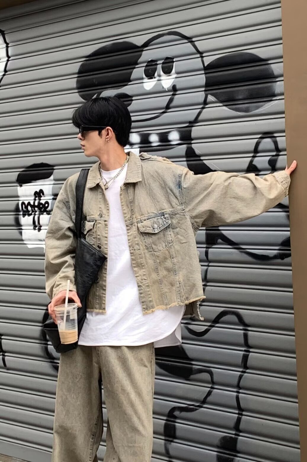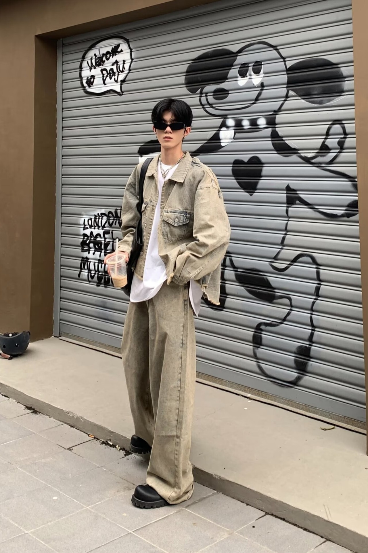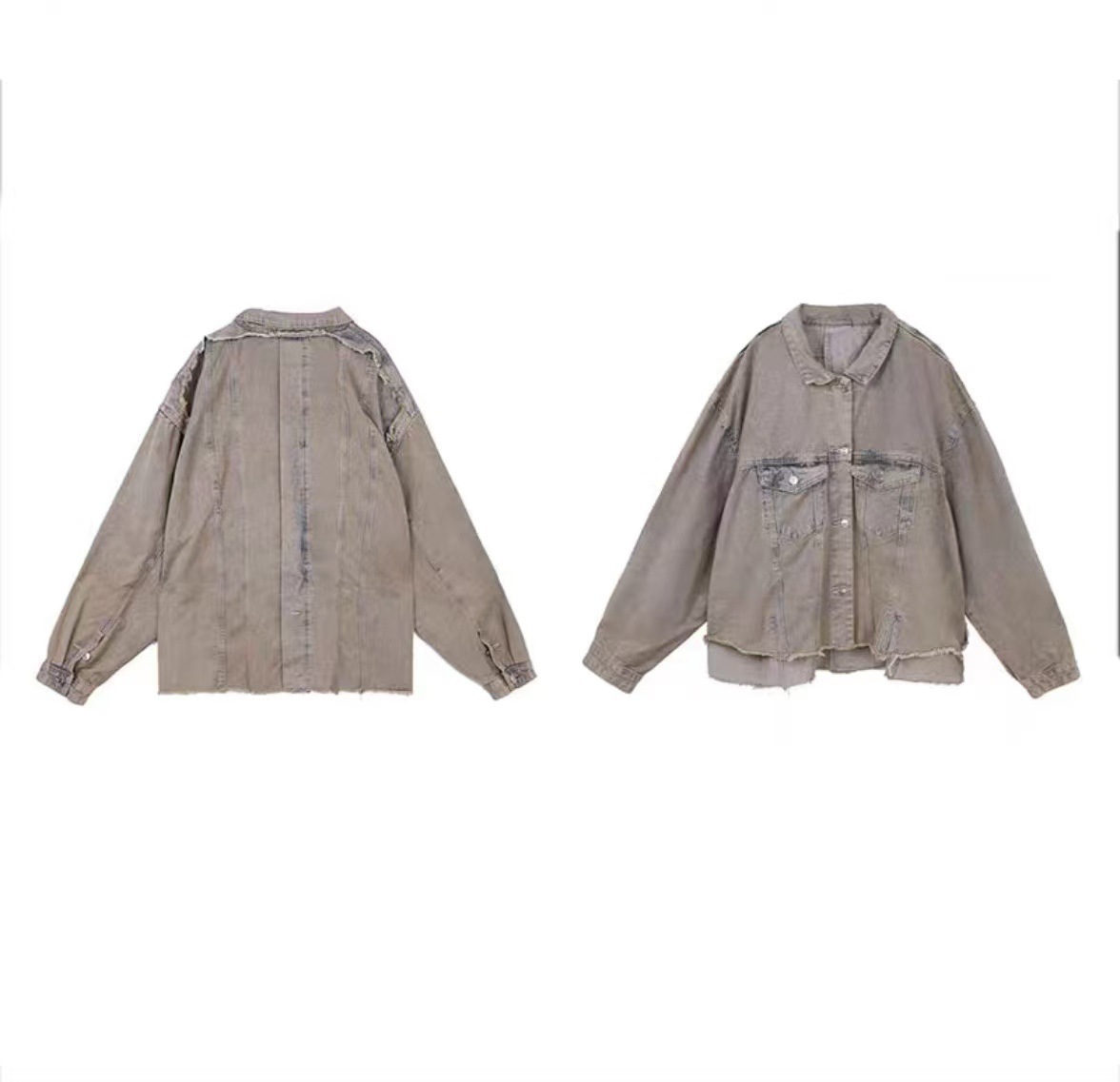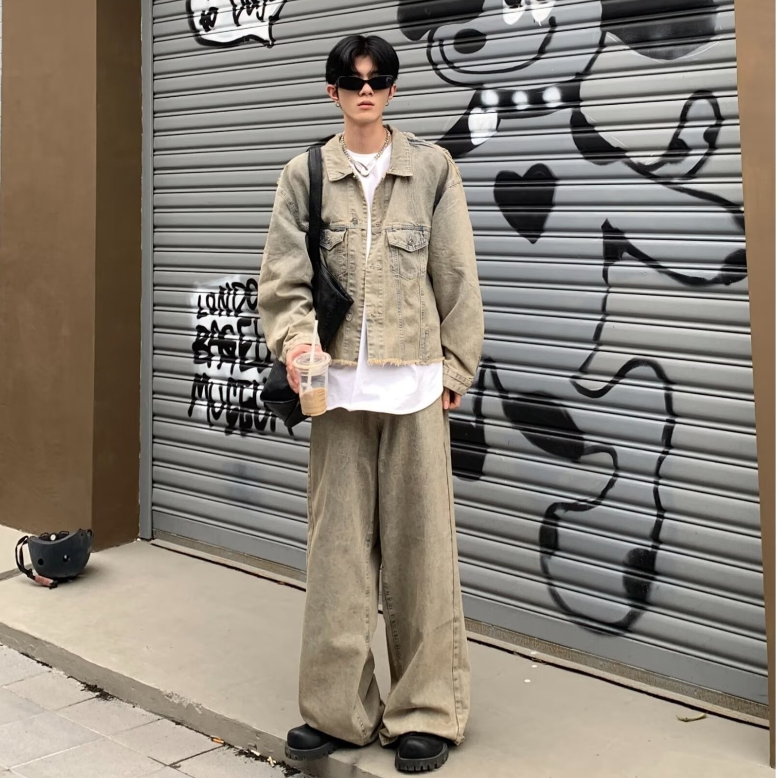 아메리칸 스타일 하이 스트리트 빈티지 스크랩 엣지 데님 재킷 남성 가을 거리 프로필 디자인 청바지 세트스토어 가기