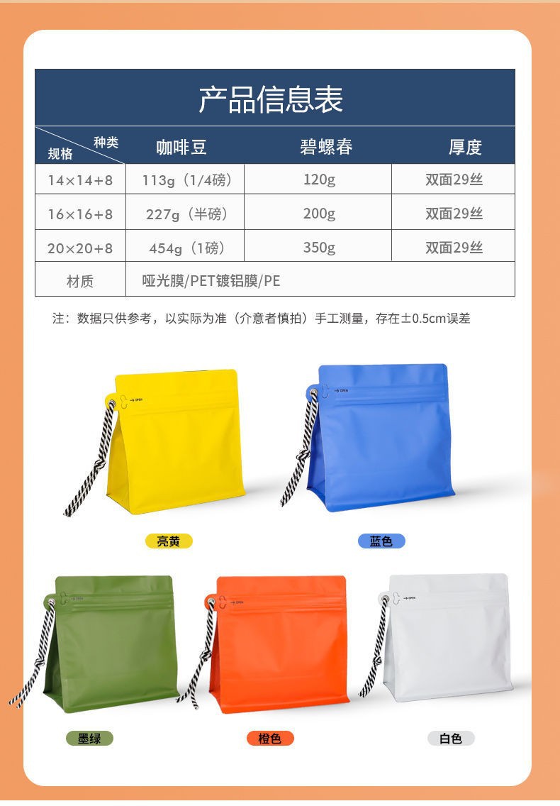 스팟 커피 콩 알루미늄 호일 포장 가방 홍차 로고 공기 밸브 끈 자립형 자체 밀봉 티백 식품 밀봉 가방