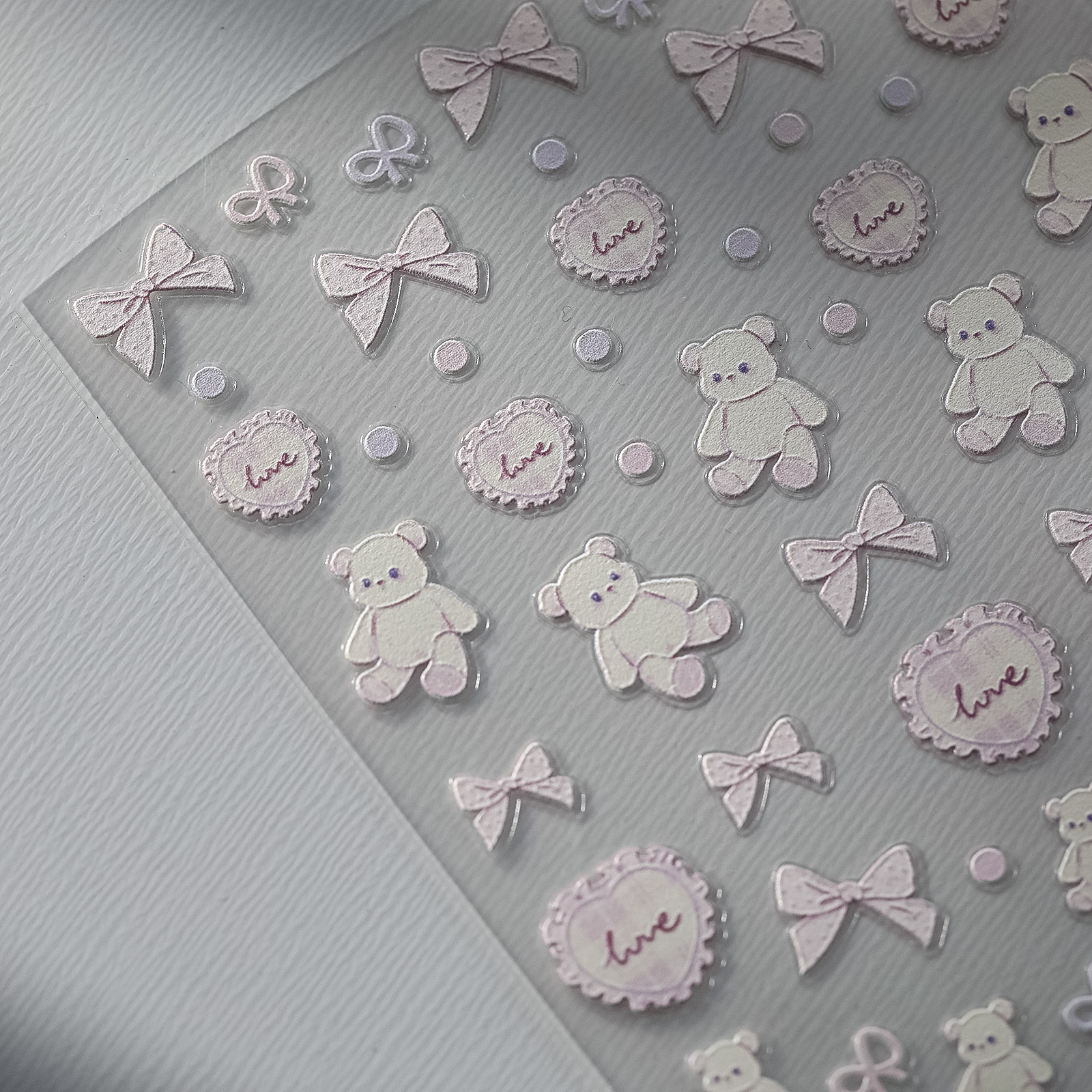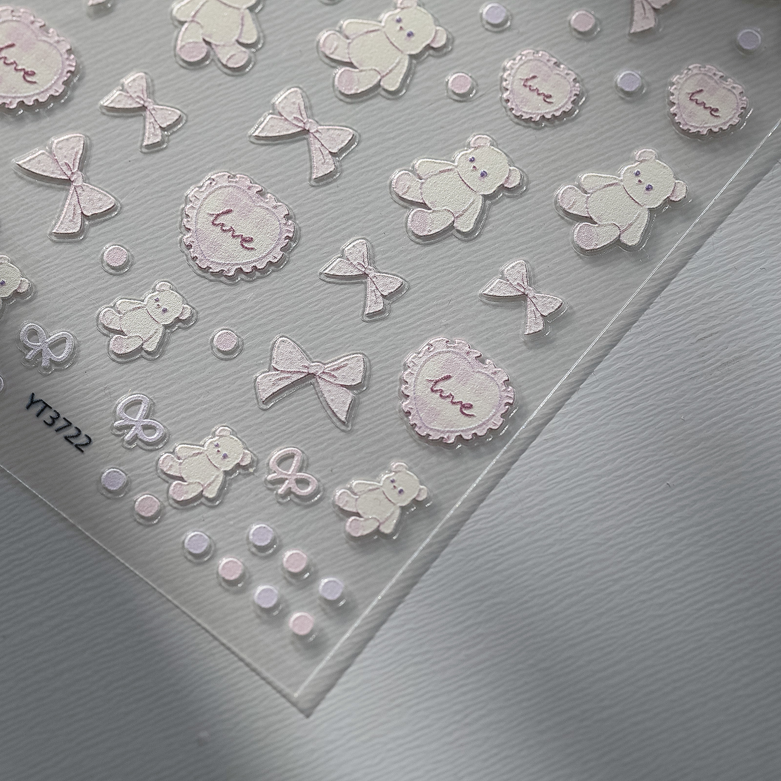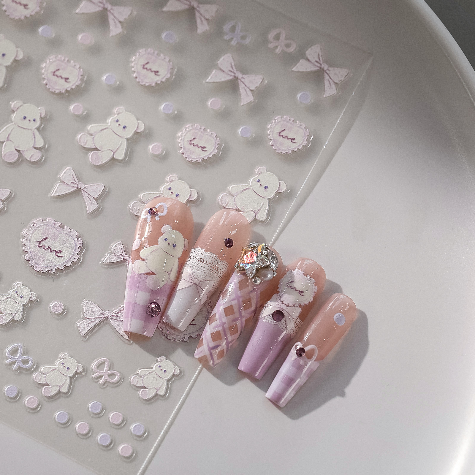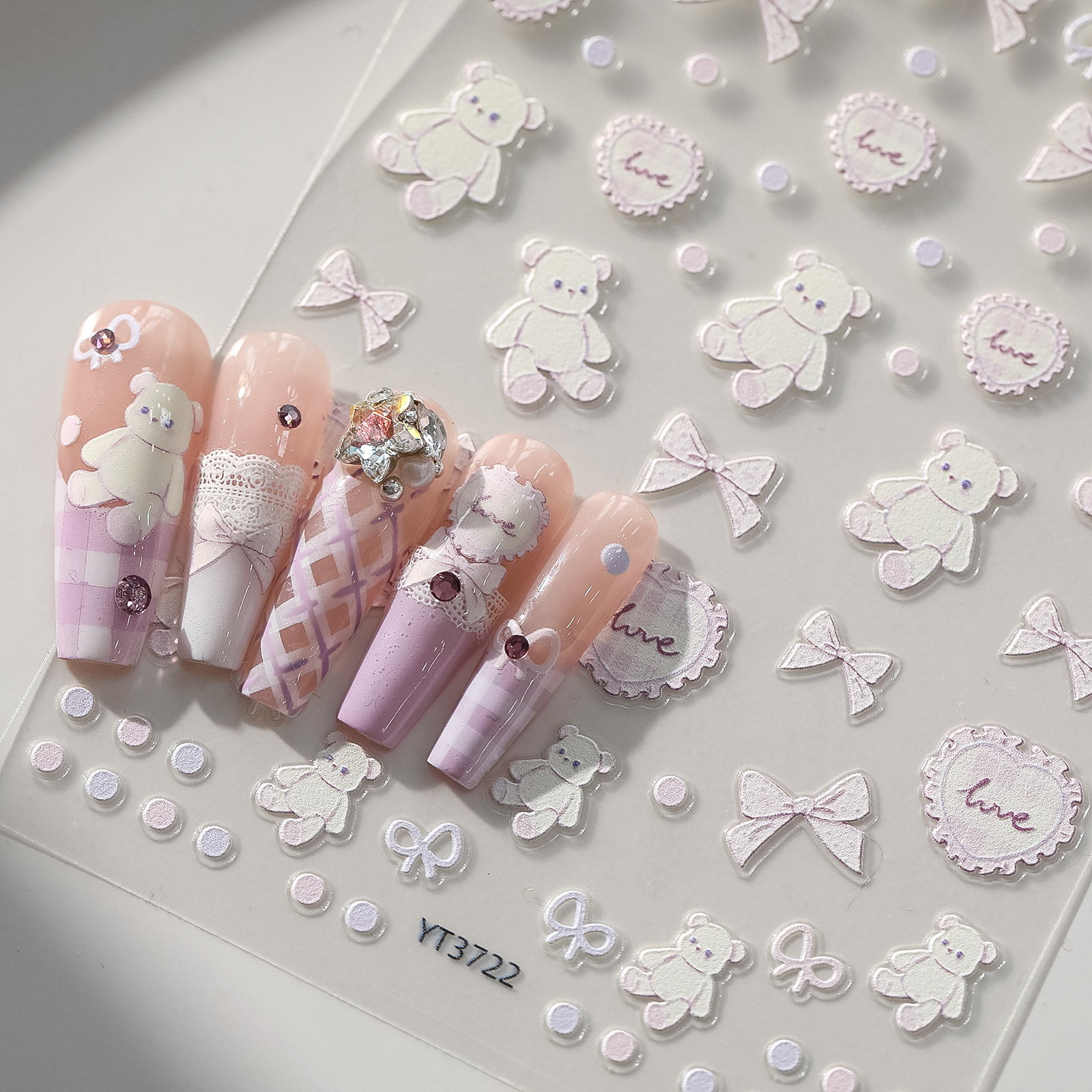 개미 그림 YITU 부드러운 귀여운 곰 네일 아트 스티커 스테레오 릴리프 접착 나비 네일 패치 YT3722