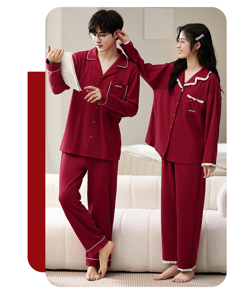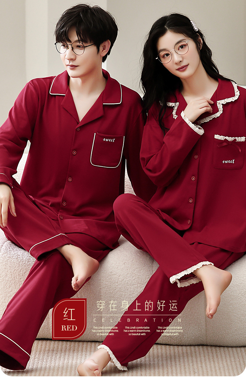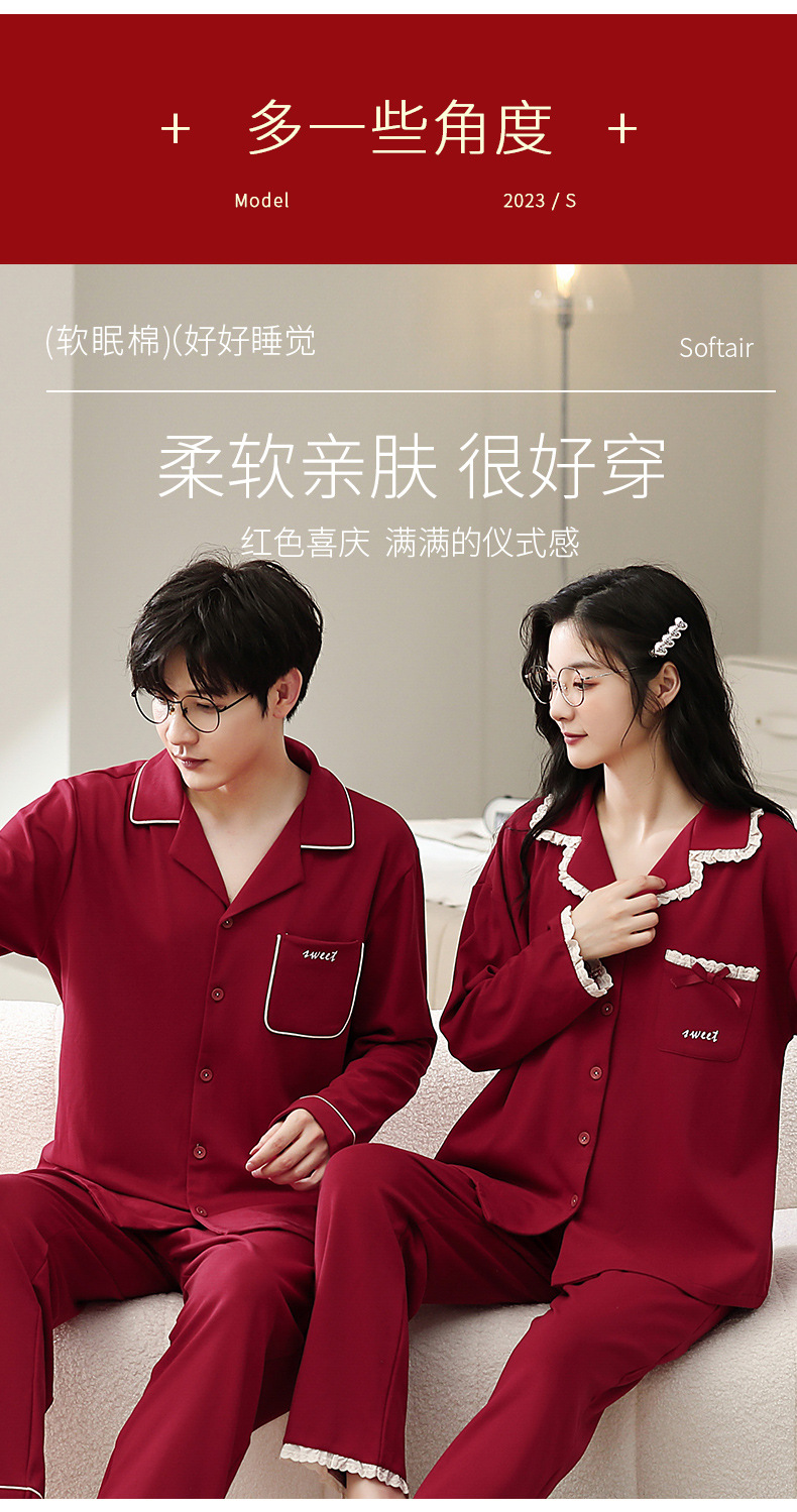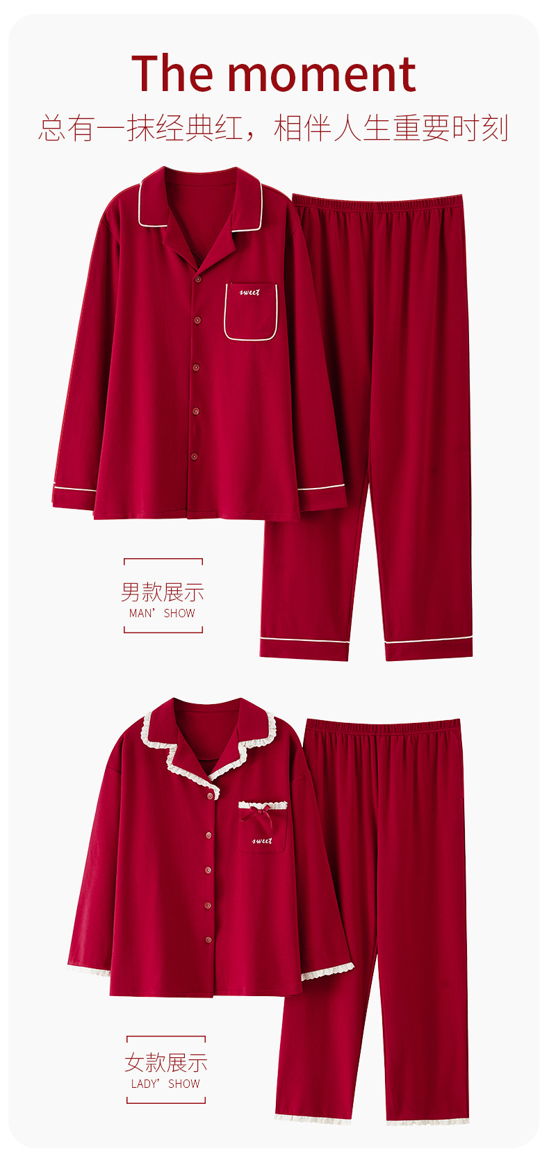 큰 빨간 커플 잠옷 봄과 가을 니트 코튼 긴 소매 웨딩 하이 엔드 입고 의상 홈 의류 도매스토어 가기