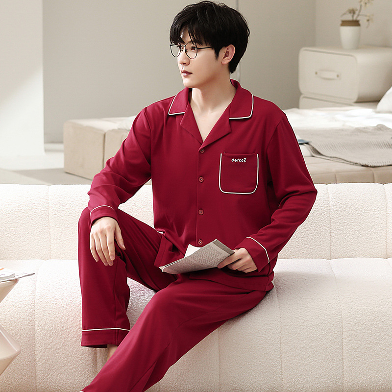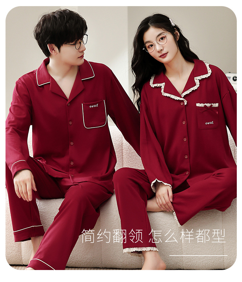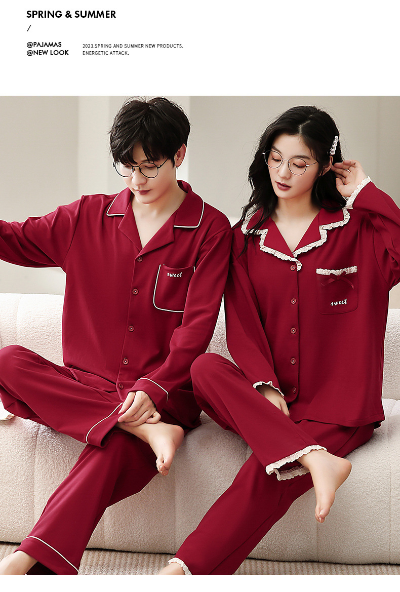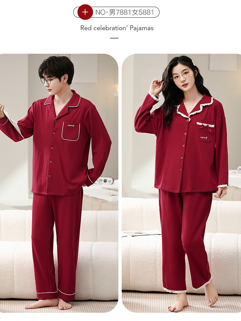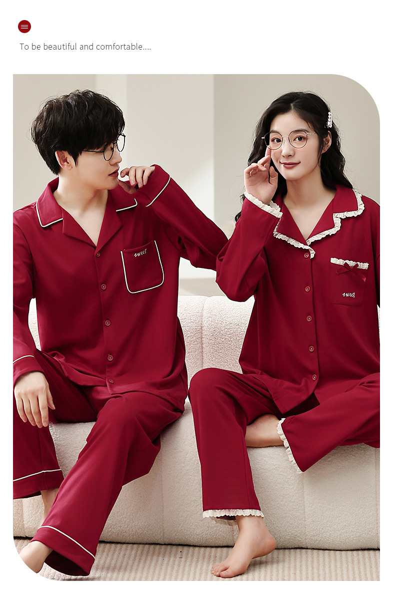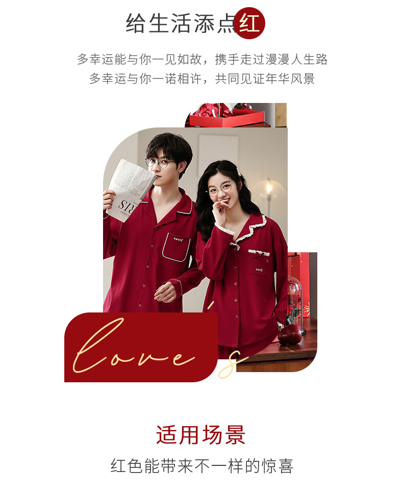 큰 빨간 커플 잠옷 봄과 가을 니트 코튼 긴 소매 웨딩 하이 엔드 입고 의상 홈 의류 도매스토어 가기