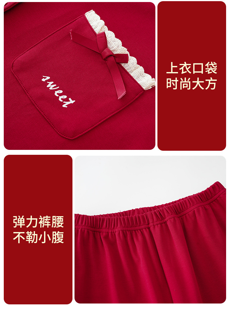 큰 빨간 커플 잠옷 봄과 가을 니트 코튼 긴 소매 웨딩 하이 엔드 입고 의상 홈 의류 도매