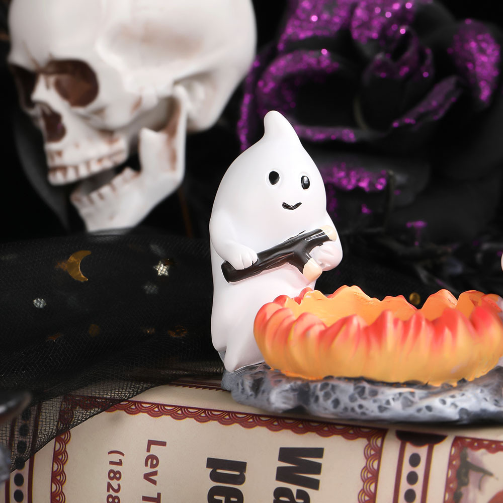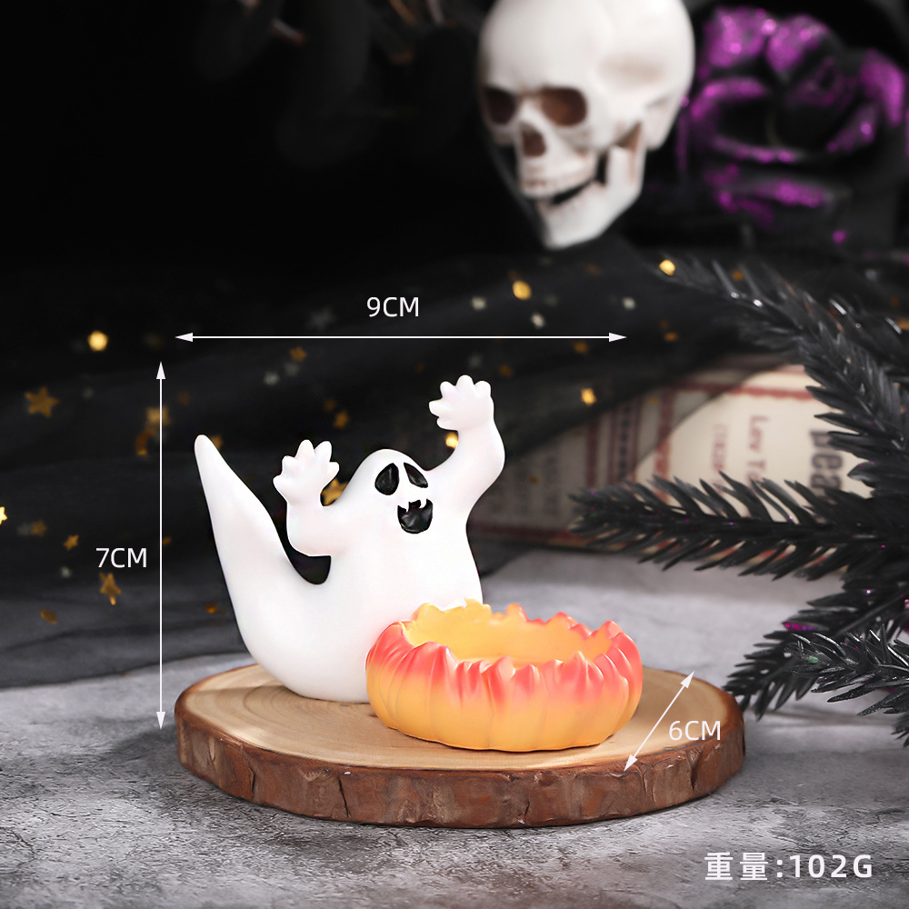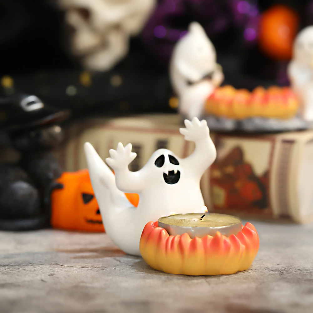 할로윈 장식품, 창의적인 유령 검은 고양이 수지 공예품, 축제 분위기 장식 양초, 호박 촛대 장식품