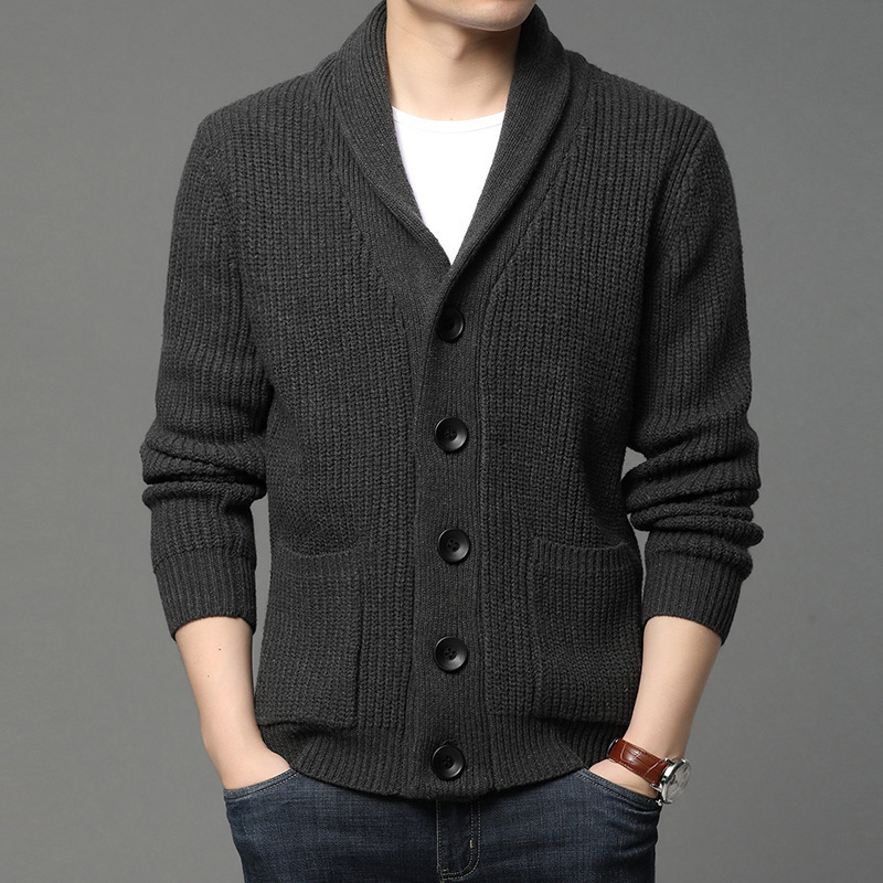 아마존 품질 유럽과 미국의 국경 새로운 남성 긴 소매 스웨터 카디건 포켓 높은 칼라 단색 스웨터 남성 의류스토어 가기