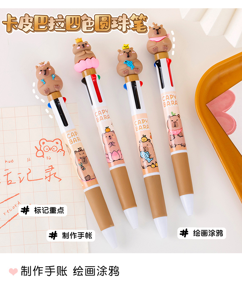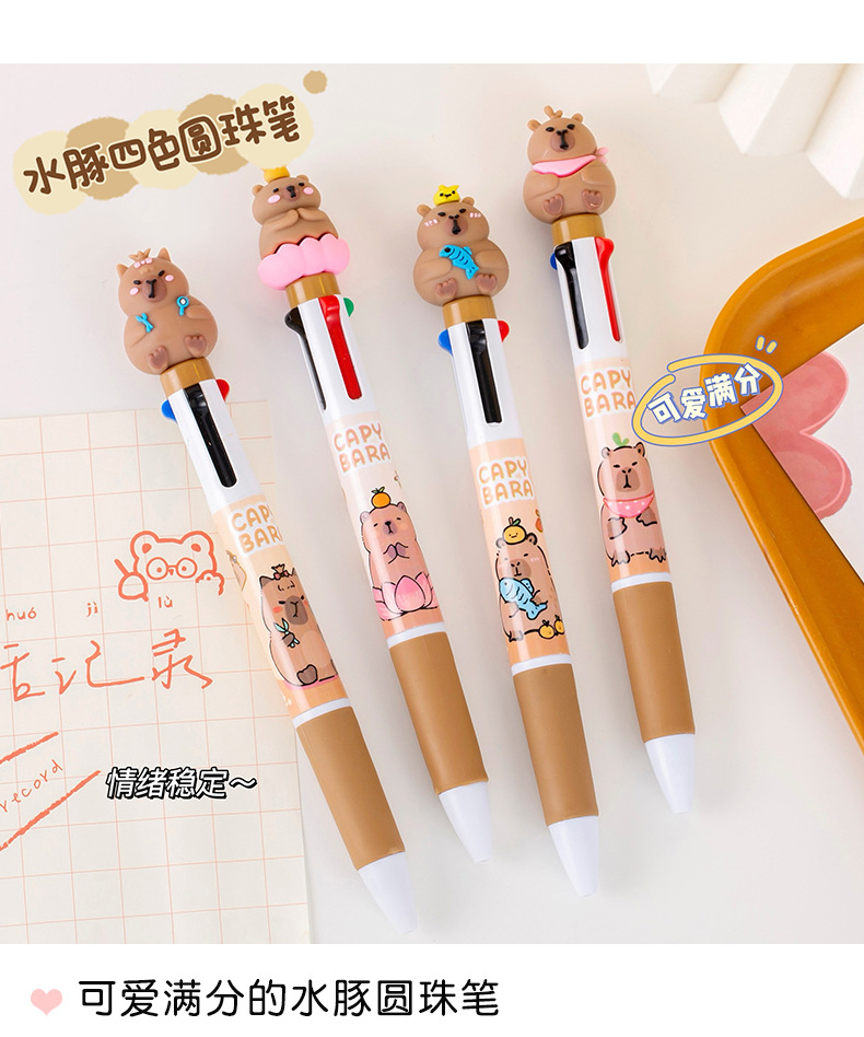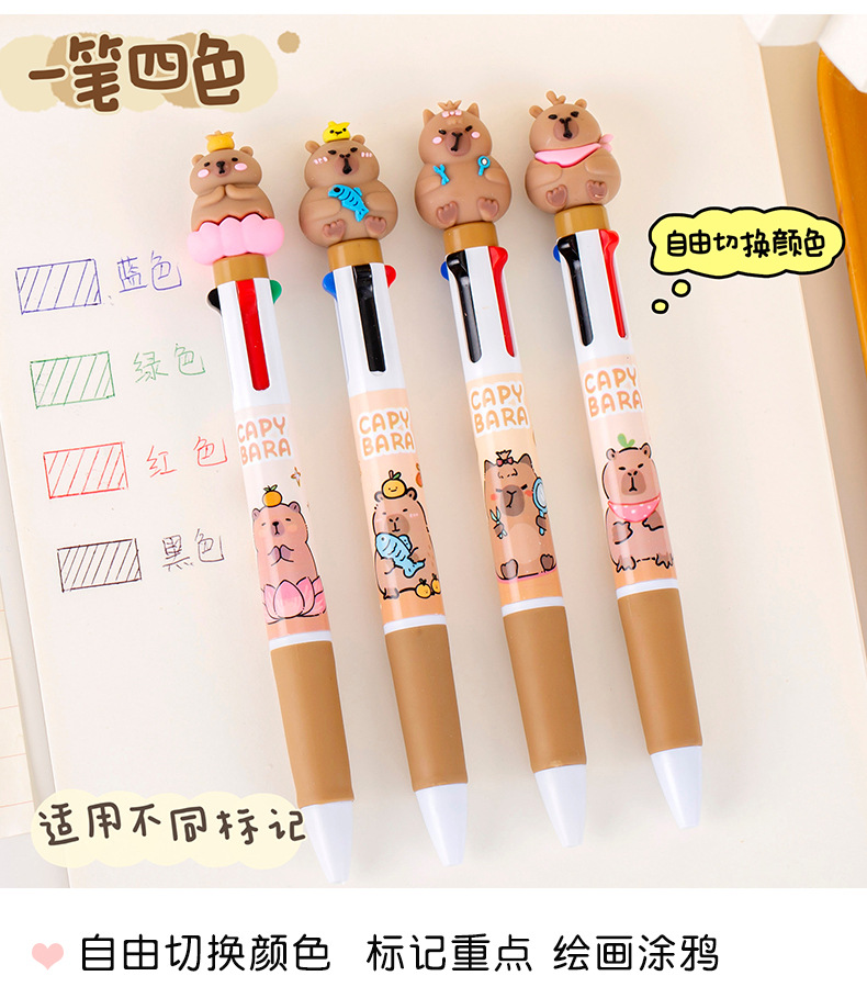창조적 인 만화 카피 바라 4 색 펜 학생 문구 상품 선물 학교 용품 프레스 4 색 볼펜 도매스토어 가기