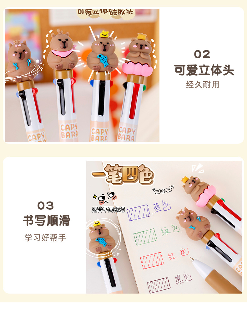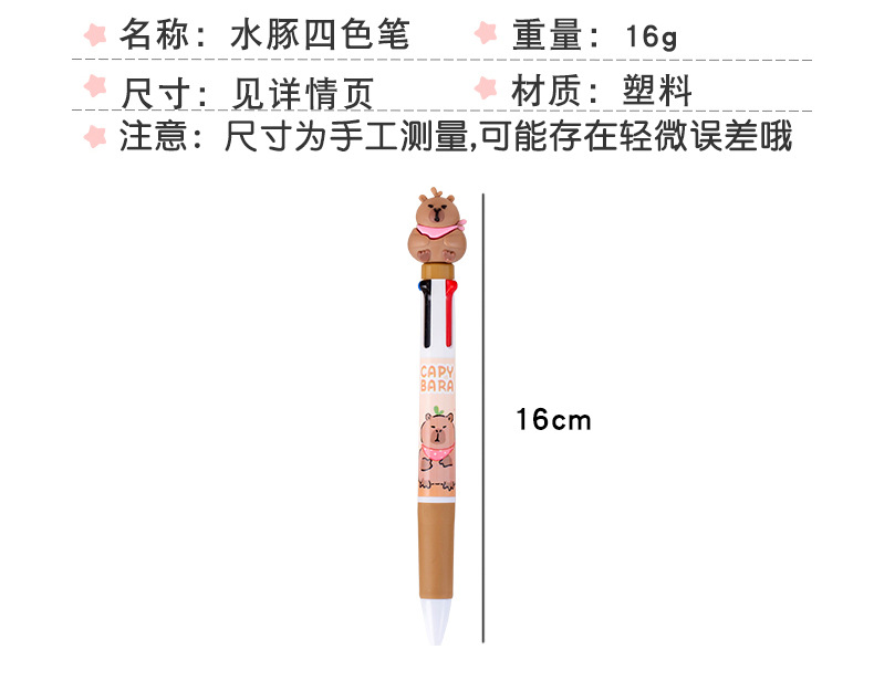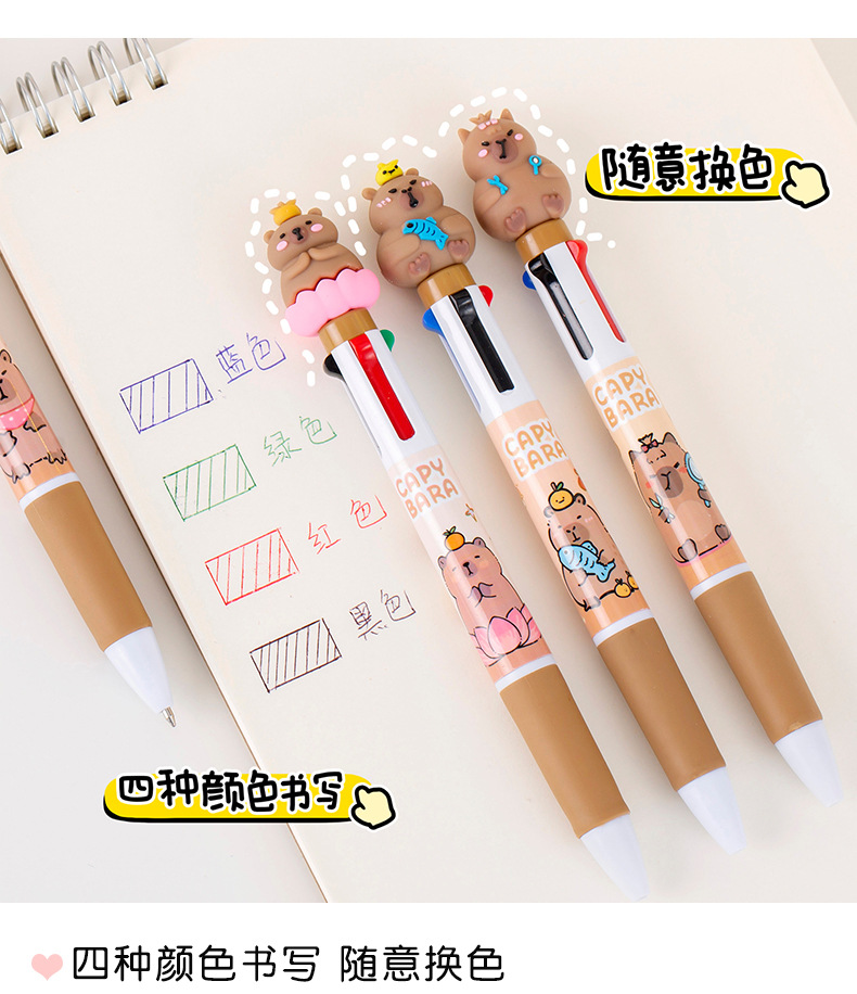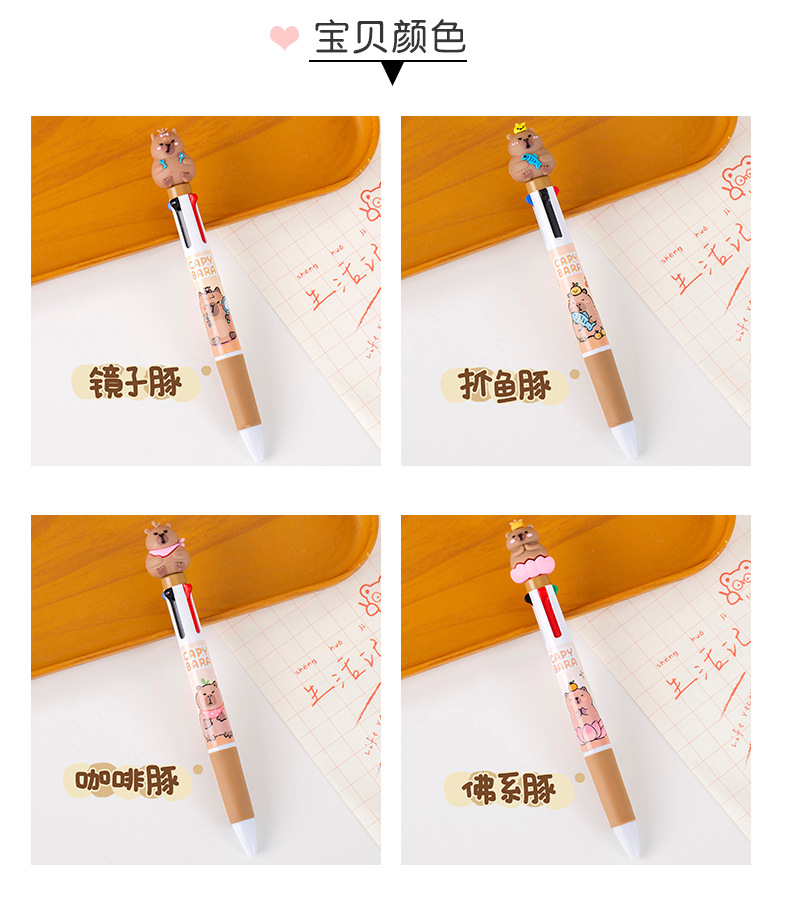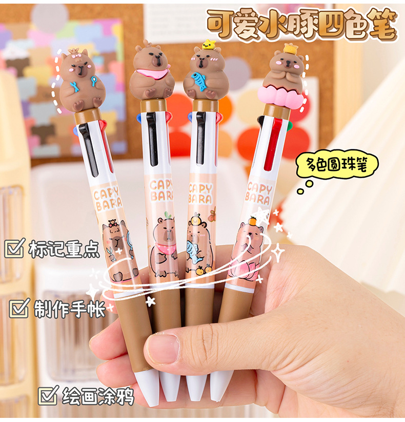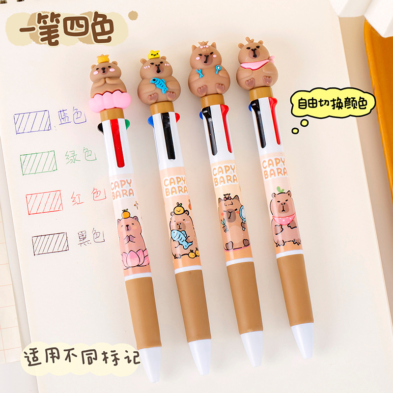창조적 인 만화 카피 바라 4 색 펜 학생 문구 상품 선물 학교 용품 프레스 4 색 볼펜 도매