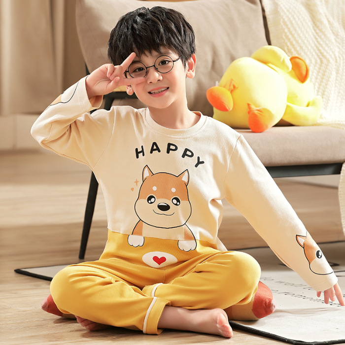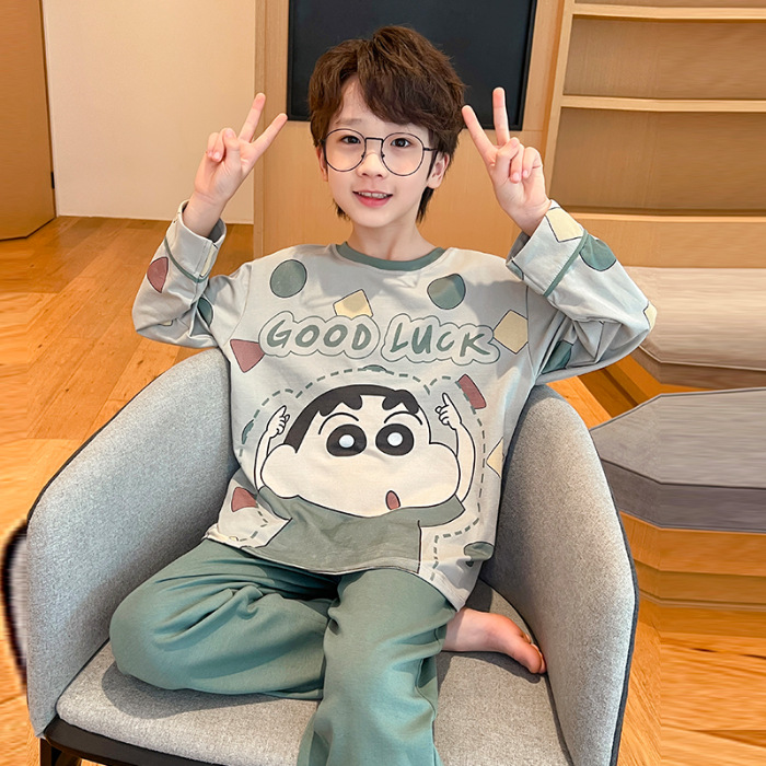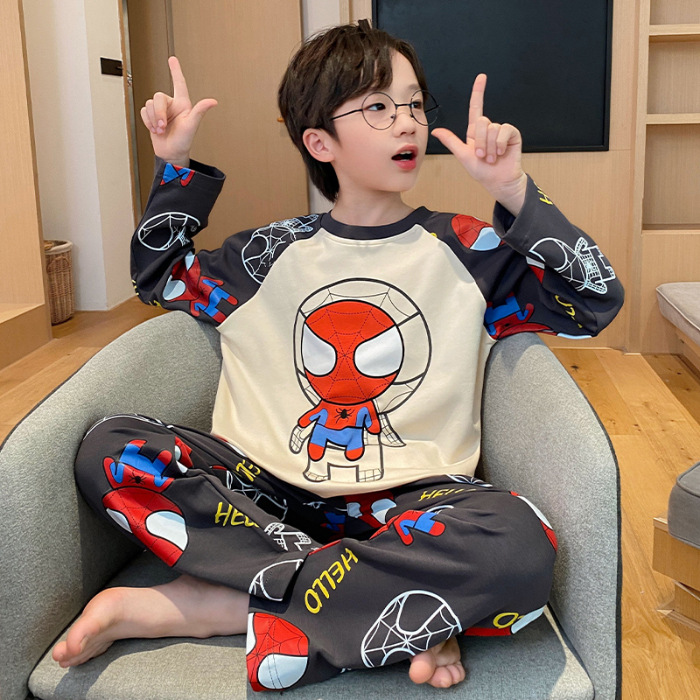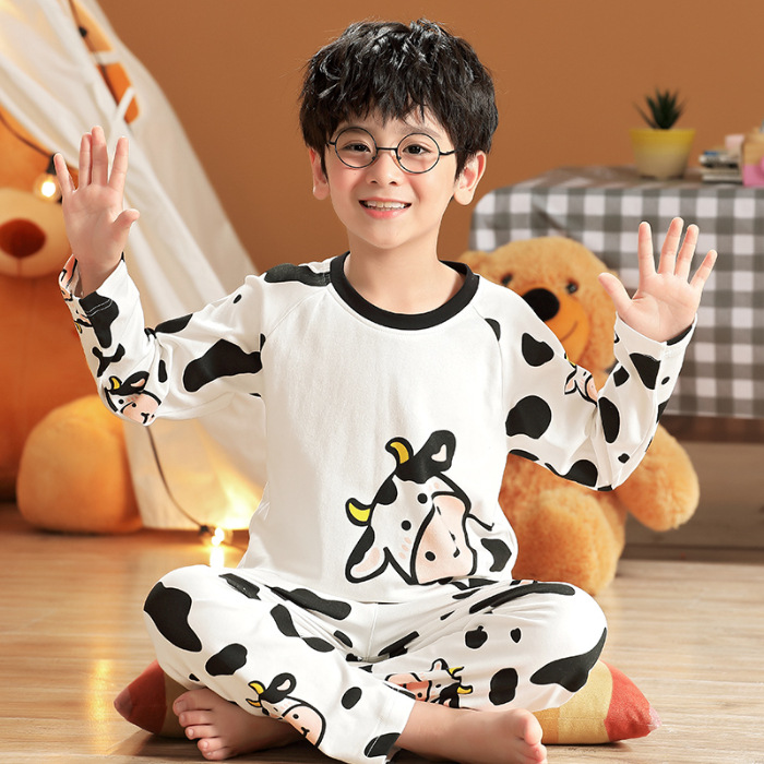 어린이 잠옷 면 봄과 가을 긴 소매 얇은 세트 소녀 세련된 어린 소녀 귀여운 새 스타일 홈 의류 여름