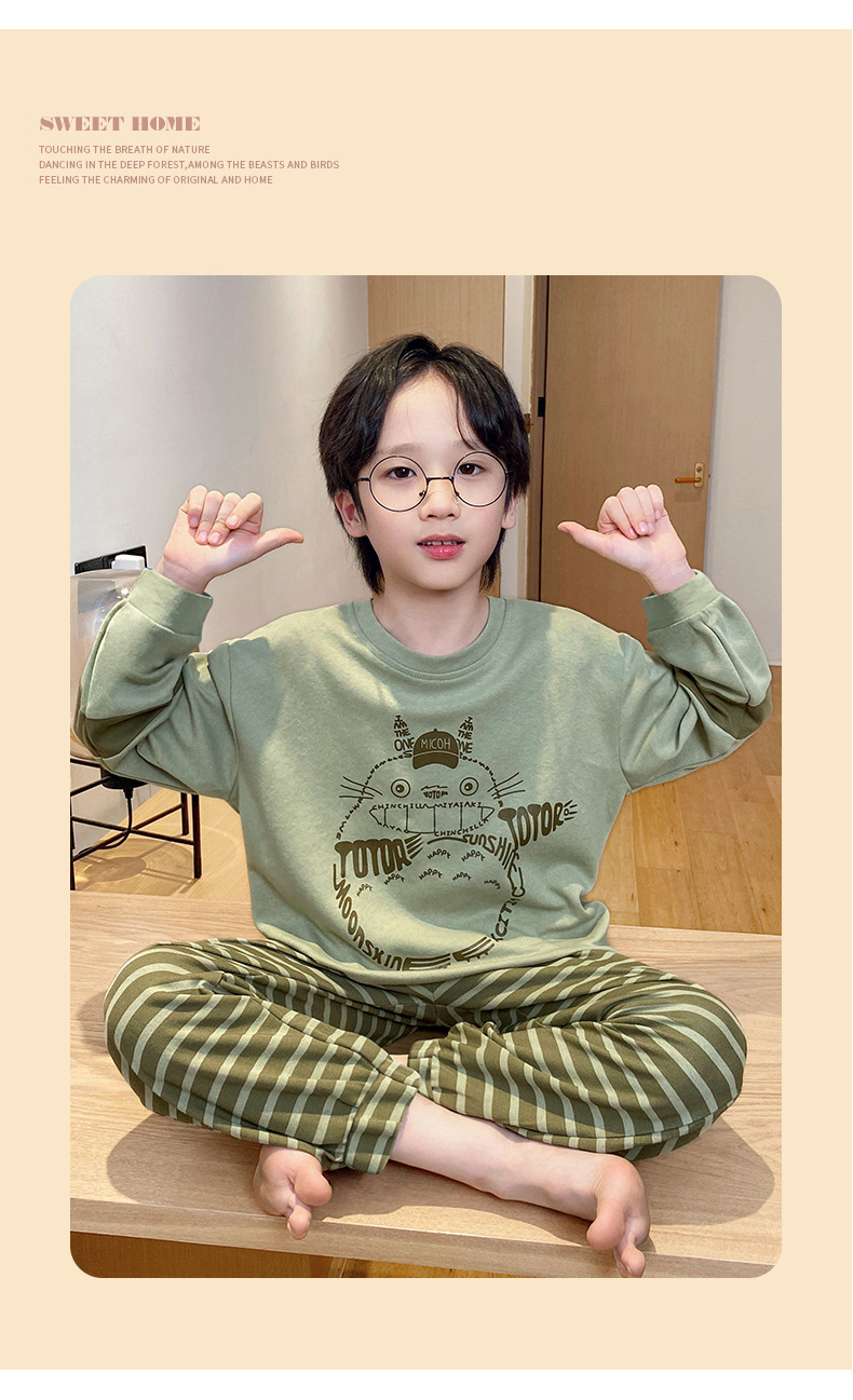 어린이 잠옷 면 봄과 가을 긴 소매 얇은 세트 소녀 세련된 어린 소녀 귀여운 새 스타일 홈 의류 여름스토어 가기