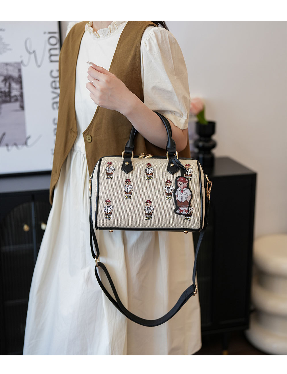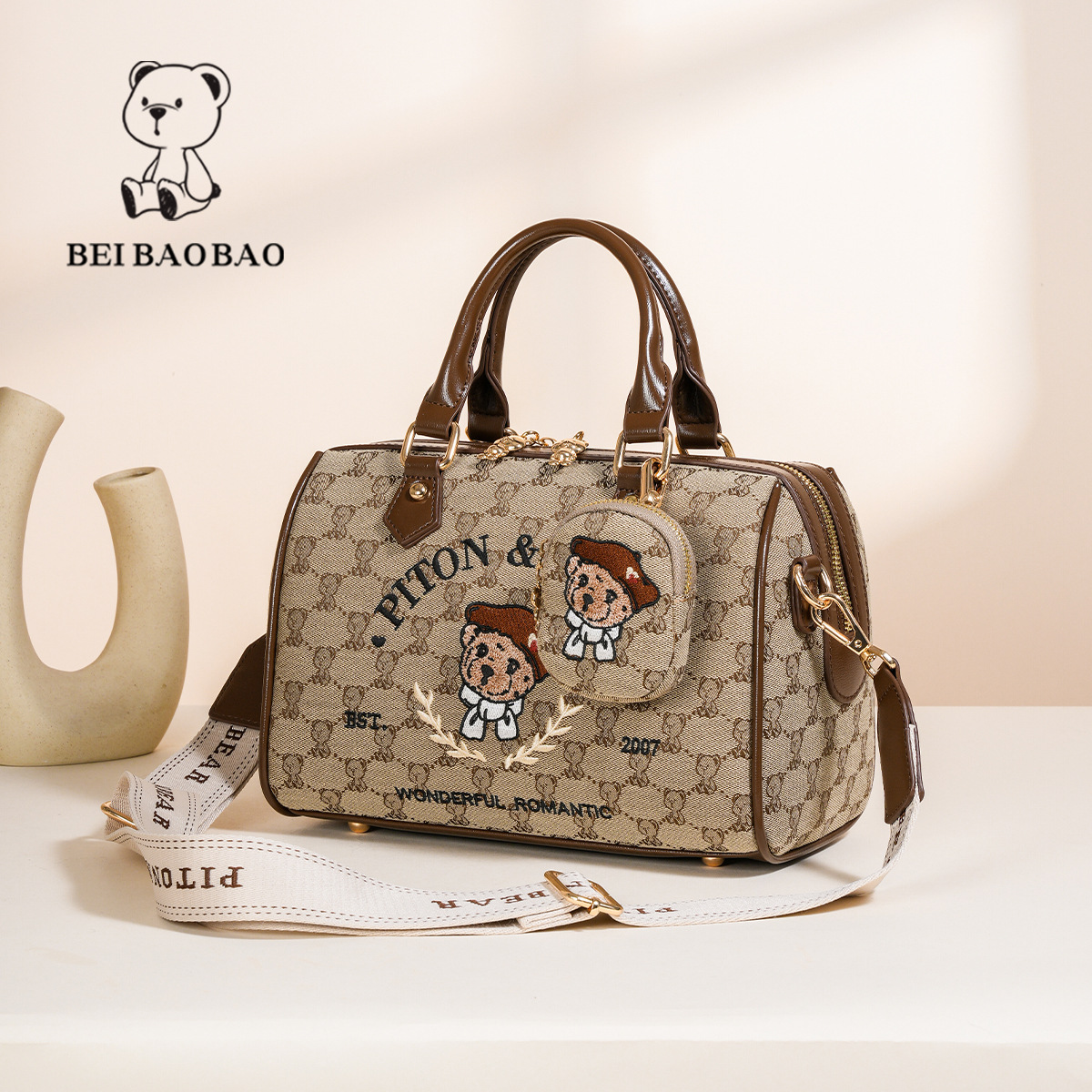 노스 백 소스 공장 캔버스 자카드 자수 만화 컵스 보스턴 여성 손 베개 가방 실용적인