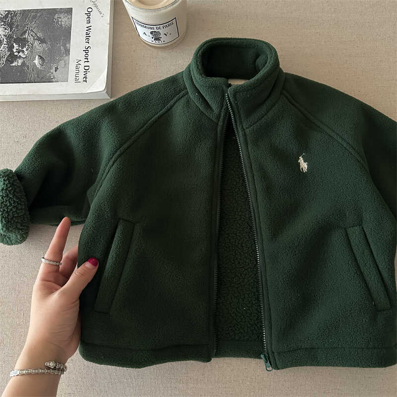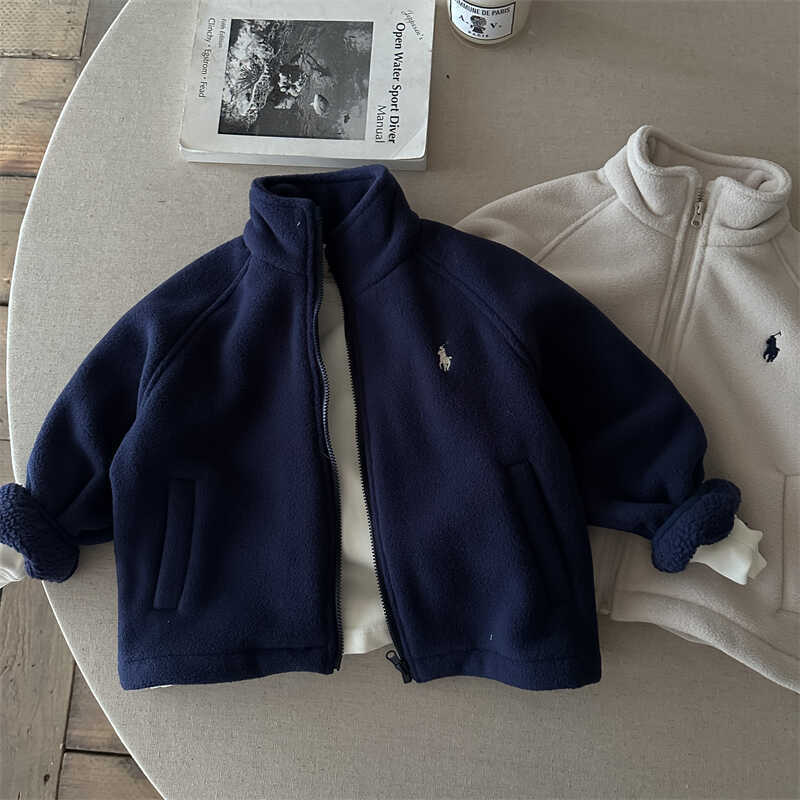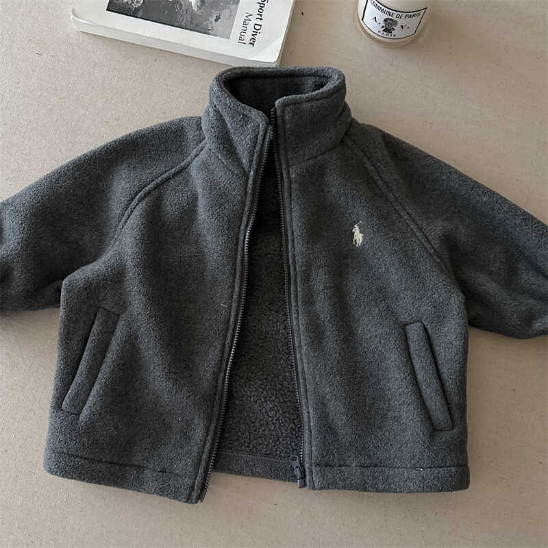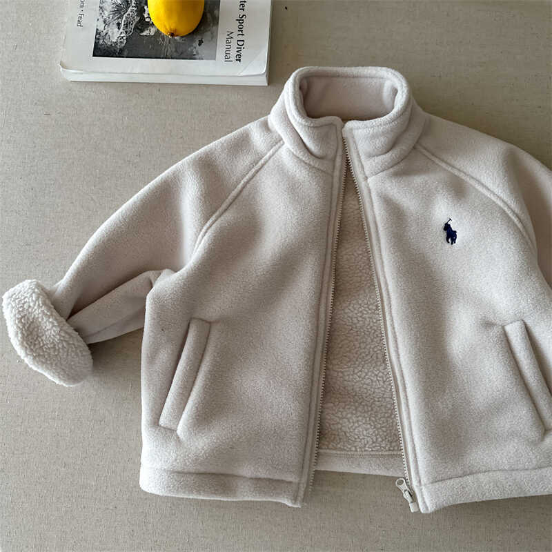 남학생 헤비 코트 2024 가을/겨울 소년과 소년 양고기 양모 수직 칼라 재킷 아기 따뜻한 기모 최고 유행