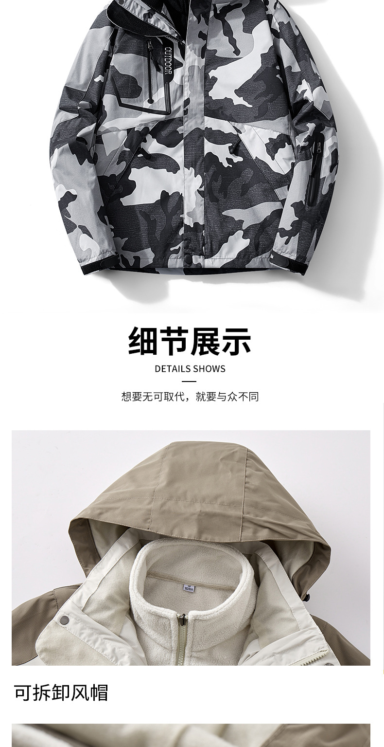 남성과 여성을위한 새로운 야외 등산 의류 3 대 1 분리 가능한 가을과 겨울 기모 커플을위한 두꺼운 자켓