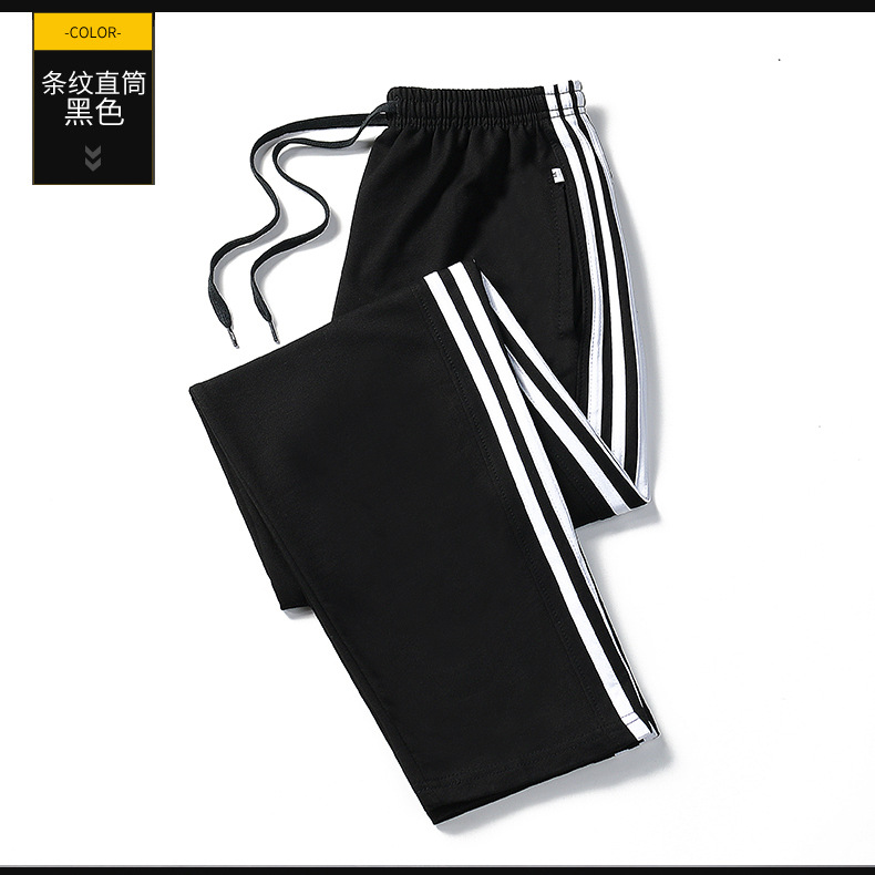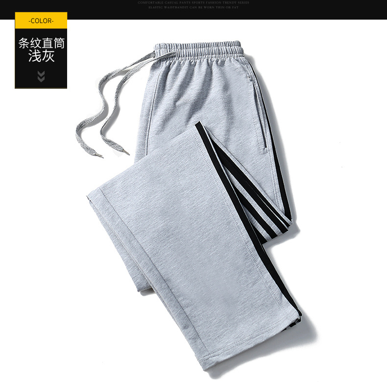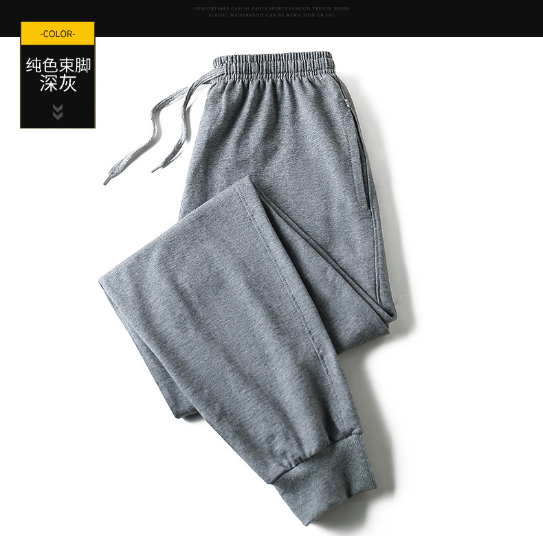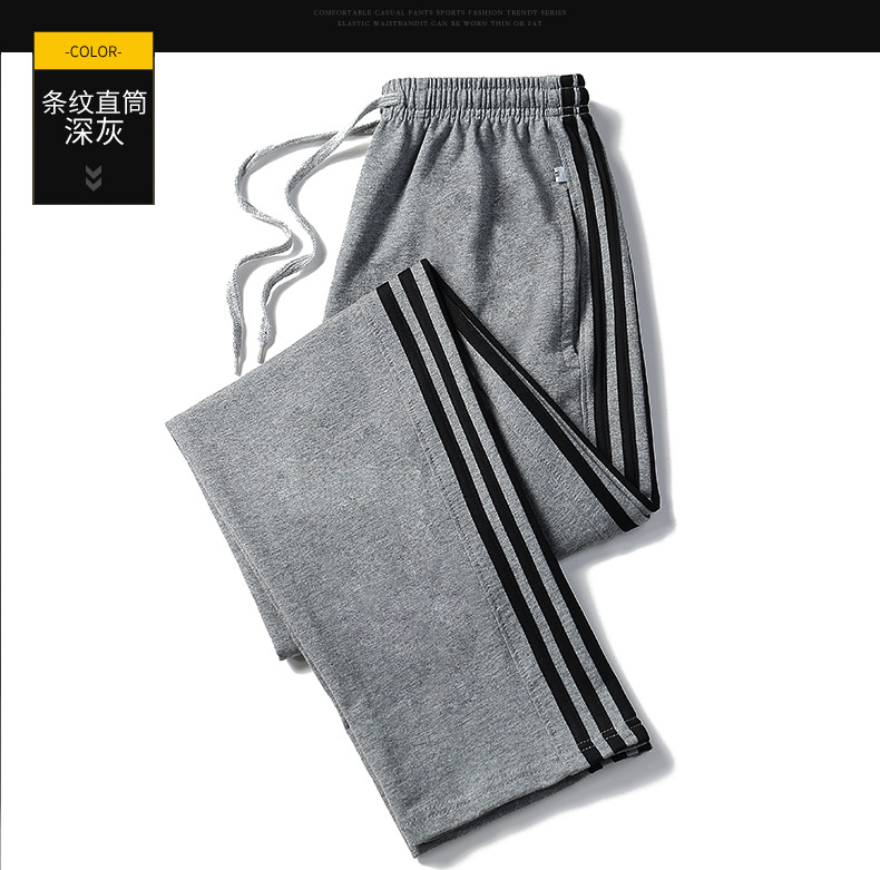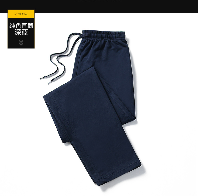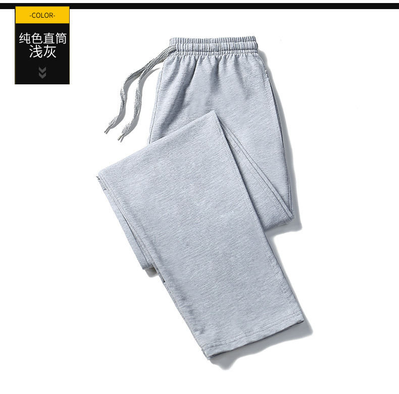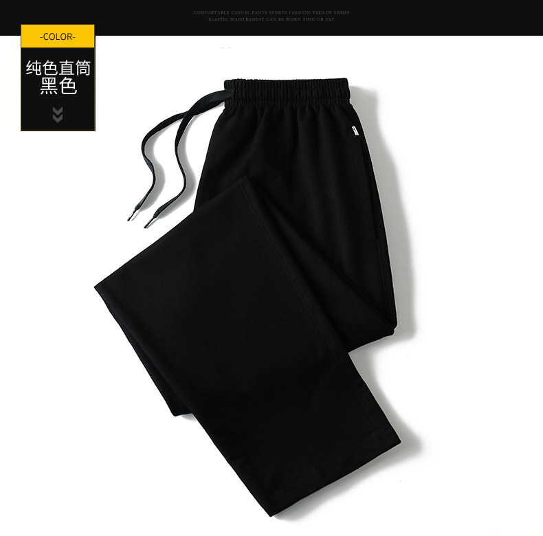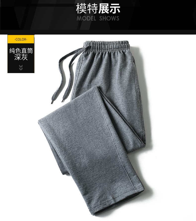 퓨어 코튼 스포츠 바지 남성용 여름 얇은 솔리드 컬러 기모 느슨한 스트레이트 레그 경과 허리 올 매치 캐주얼 바지