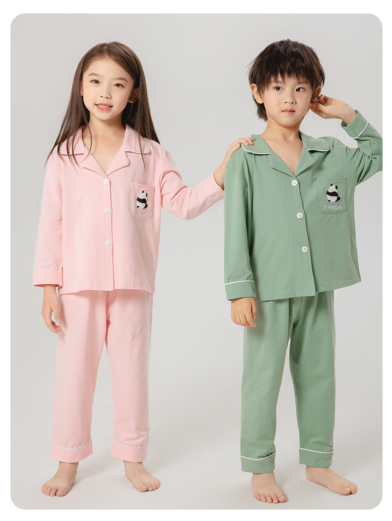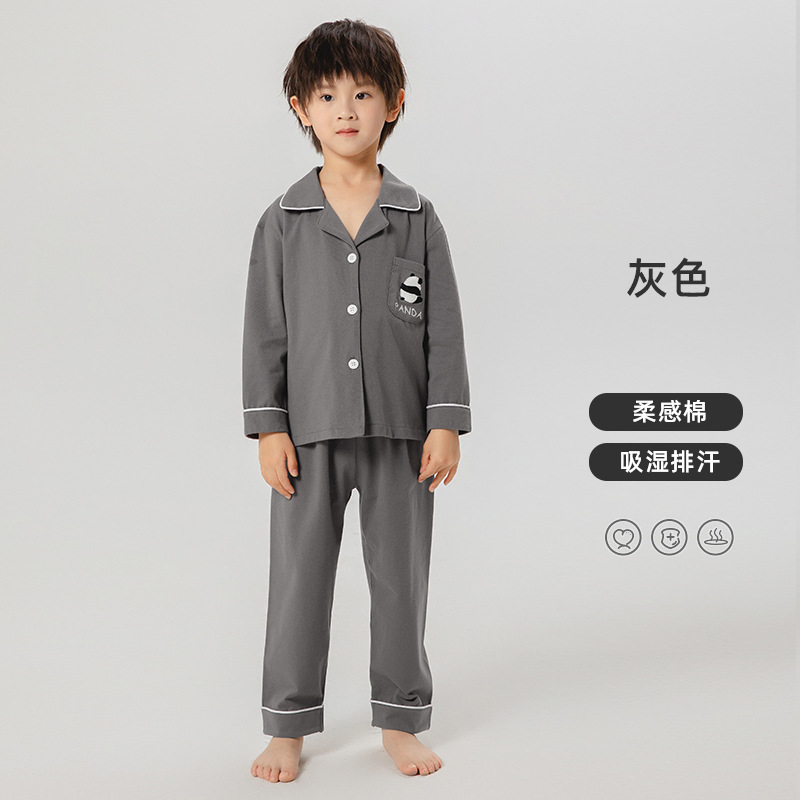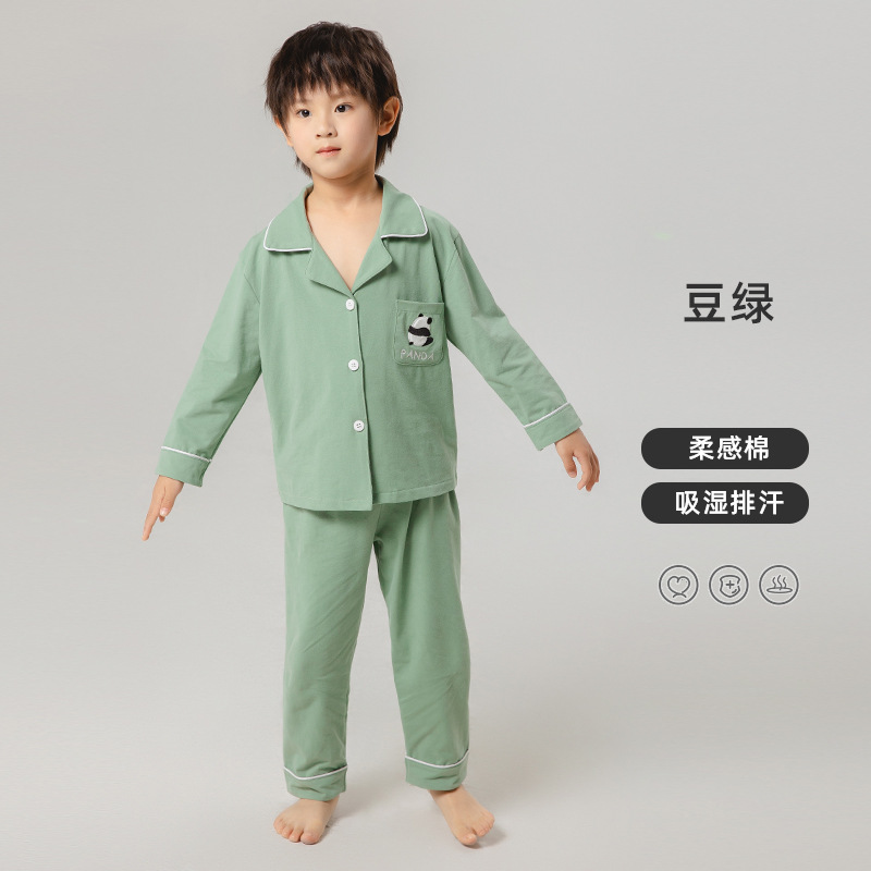 봄과 가을 어린이 가정 의류 세트 어린이 잠옷 긴팔 클래스 A 면화 청소년 속옷 카디건 투피스 세트스토어 가기