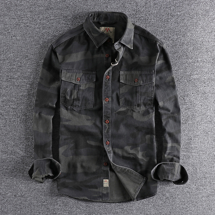 국경 간 대외 무역 세척 위장 미국 스타일 작업복 긴팔 셔츠 남자 더블 포켓 올 매치 캐주얼 군사 청소년 탑스토어 가기