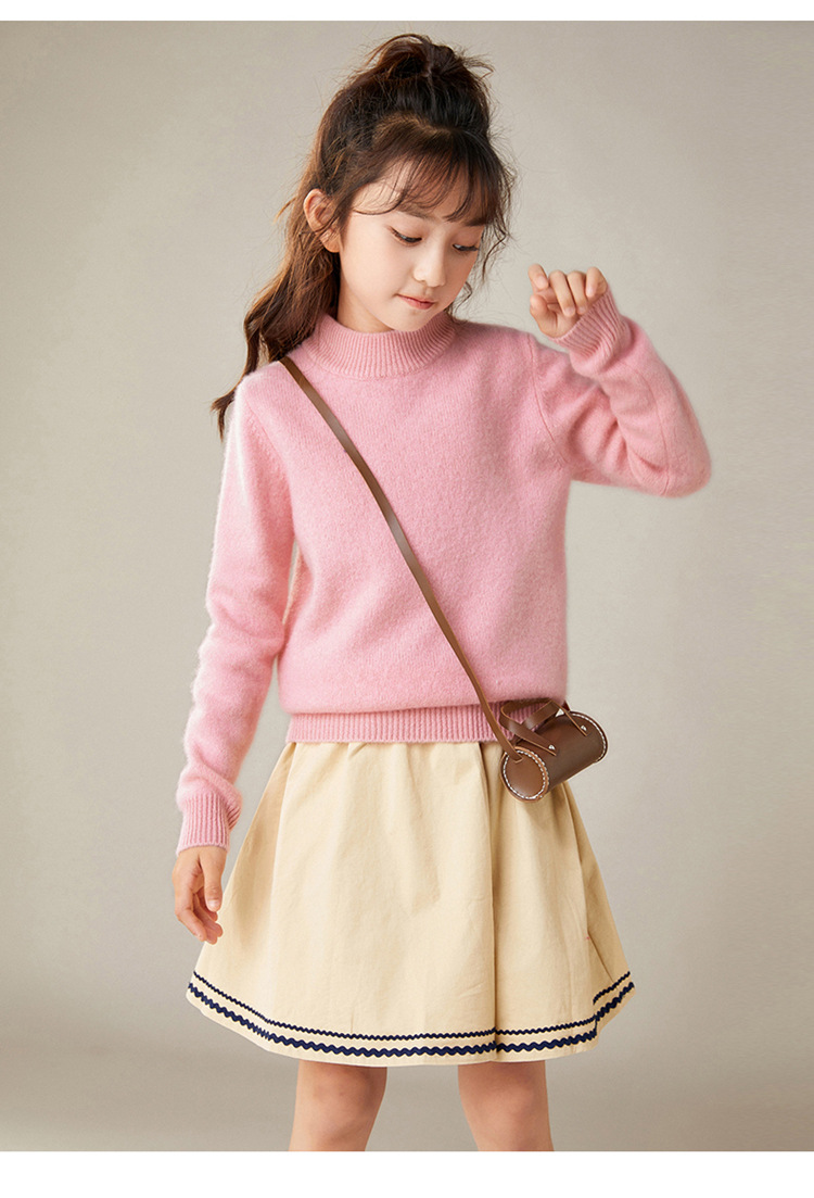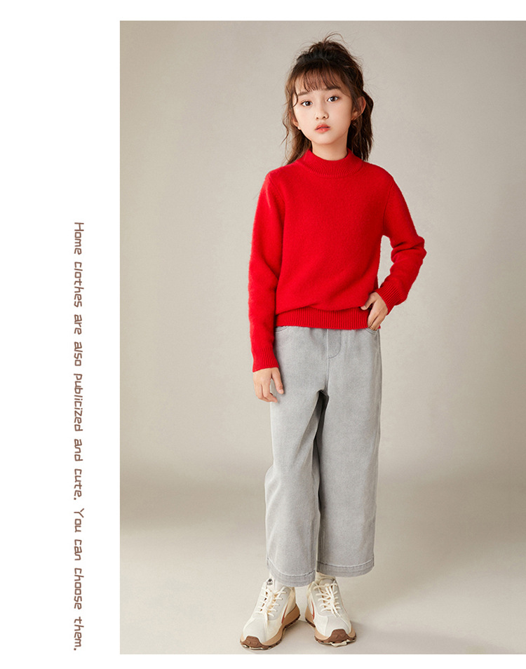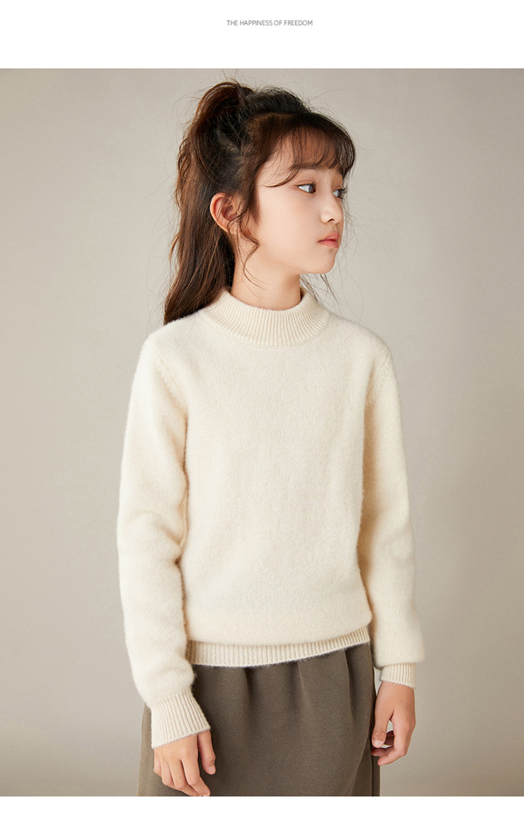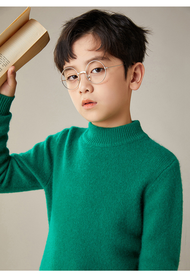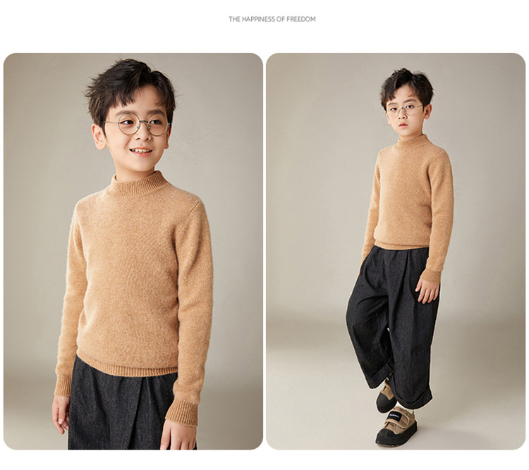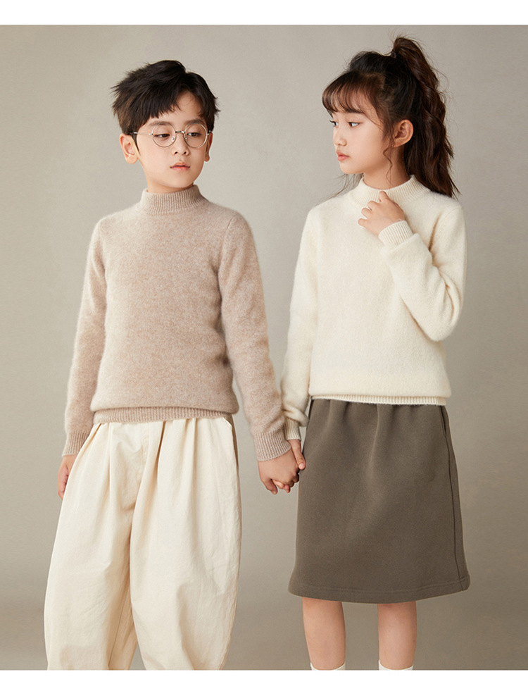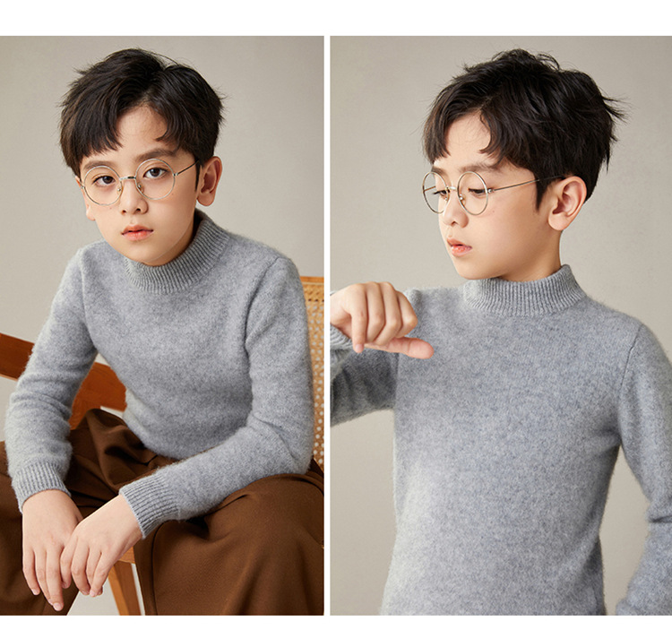어린이 순모 니트 스웨터 남녀공용 반터틀넥 스웨터 중대형 어린이용 따뜻한 베이스 레이어 상의 어린이용