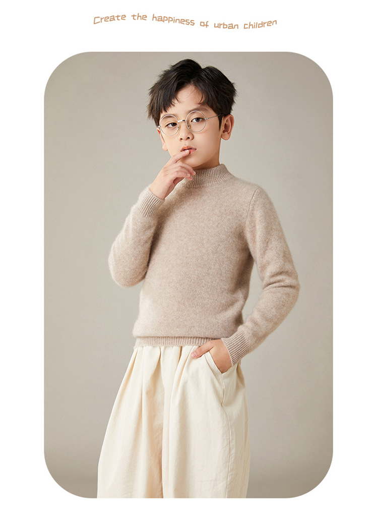 어린이 순모 니트 스웨터 남녀공용 반터틀넥 스웨터 중대형 어린이용 따뜻한 베이스 레이어 상의 어린이용스토어 가기
