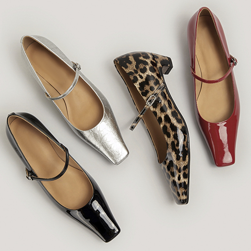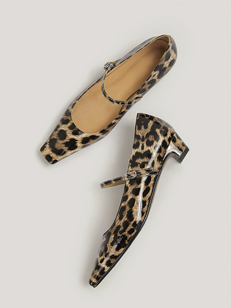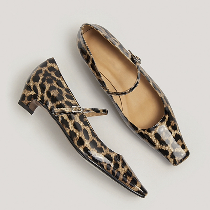 양가죽 버전 프랑스 레오파드 포인트 얕은 최고 특허 가죽 신발 메리 제인 여성 올매치 우아한 스퀘어 발가락 낮은 뒤꿈치 싱글 레이어 신발스토어 가기
