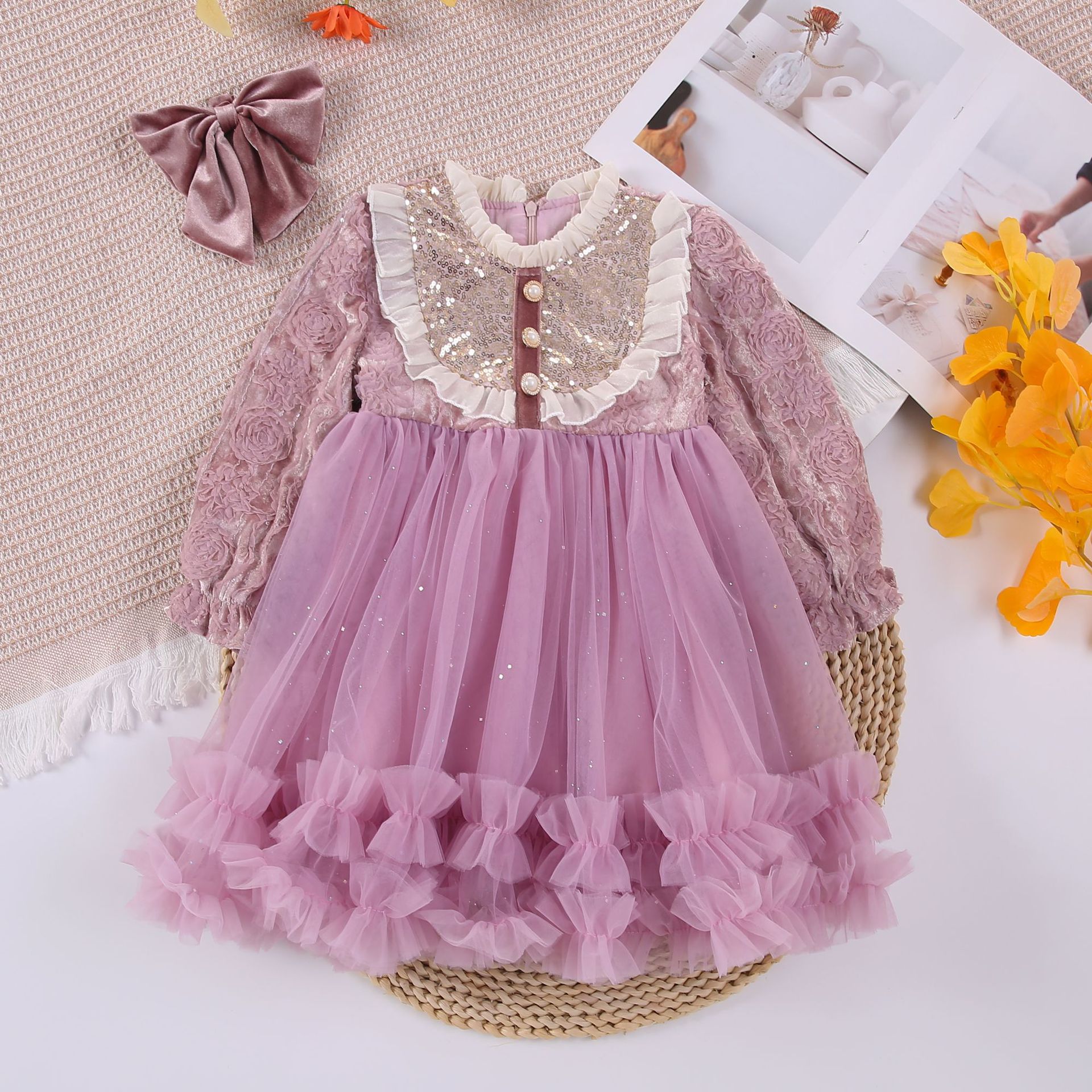 소녀의 봄과 가을 원피스 새로운 어린이 원피스 아기 세련된 패션 공주 원피스 스퀸 우아한 원피스
