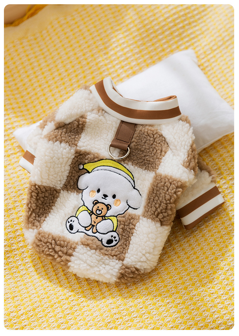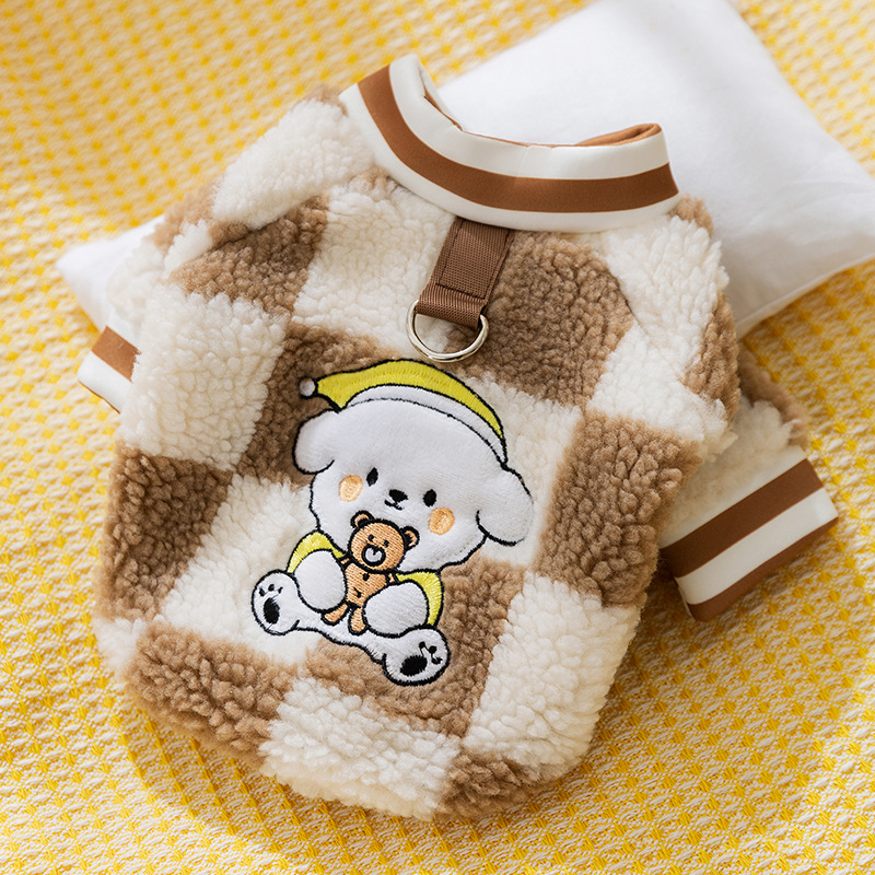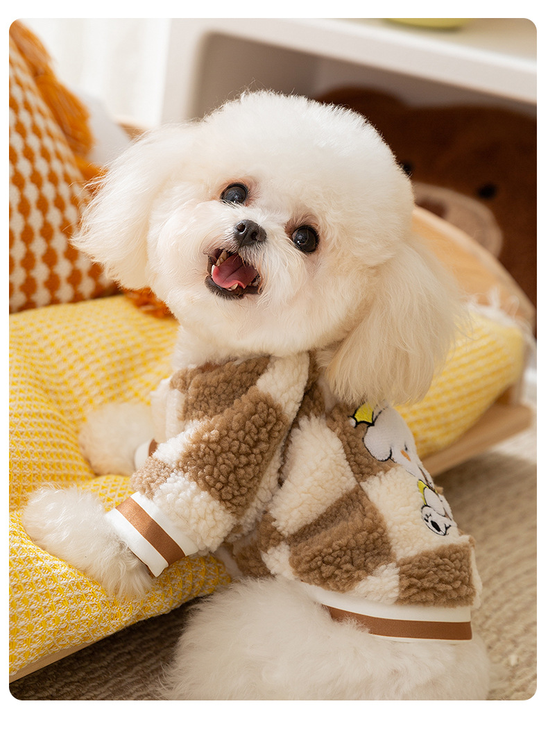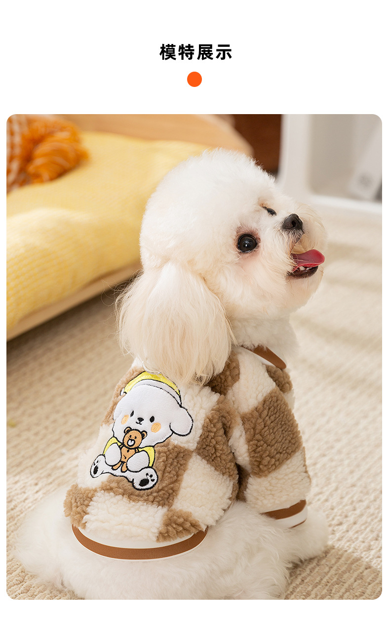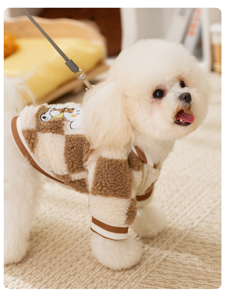 새로운 가을과 겨울 강아지 옷 한국식 곰 격자 무늬 지친 고양이 테디 베어 따뜻한 애완 동물 옷스토어 가기