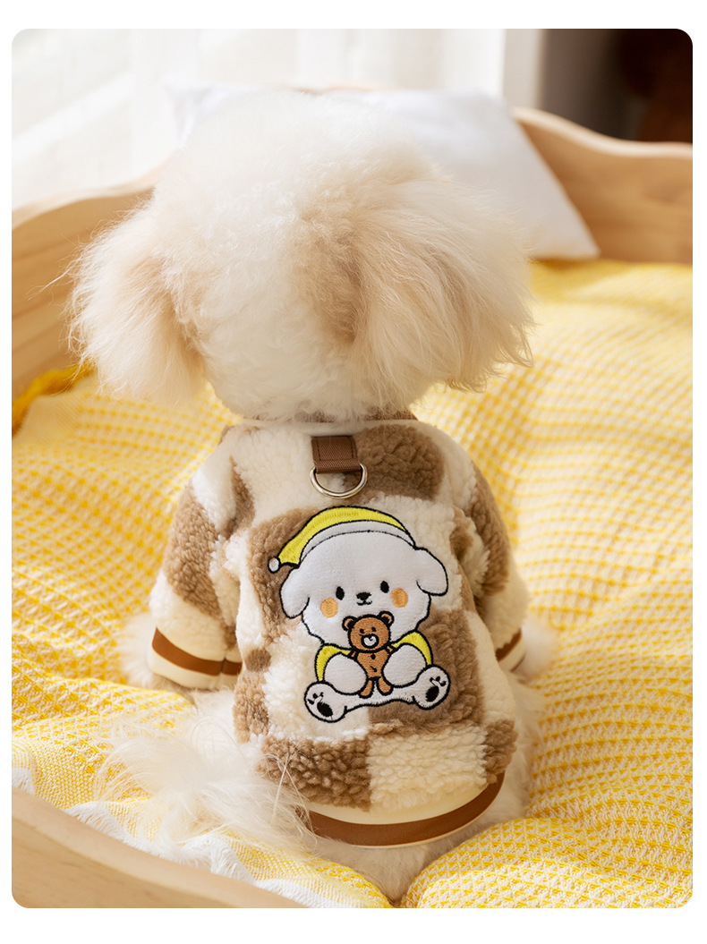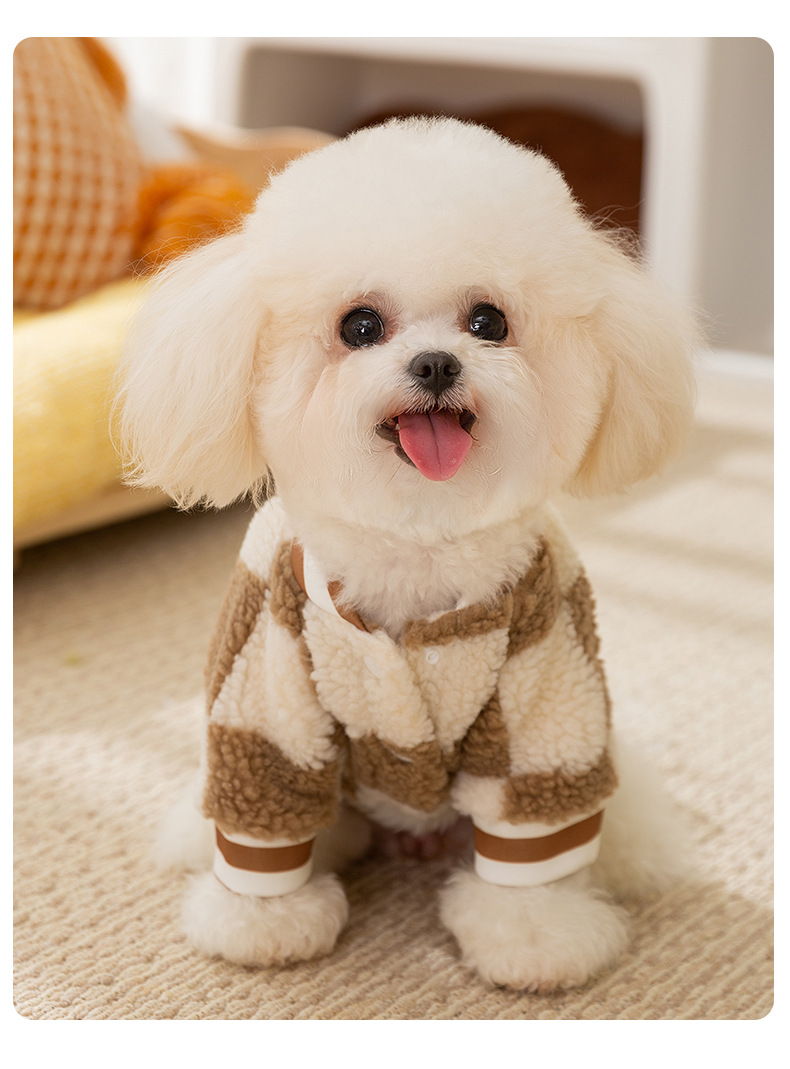 새로운 가을과 겨울 강아지 옷 한국식 곰 격자 무늬 지친 고양이 테디 베어 따뜻한 애완 동물 옷