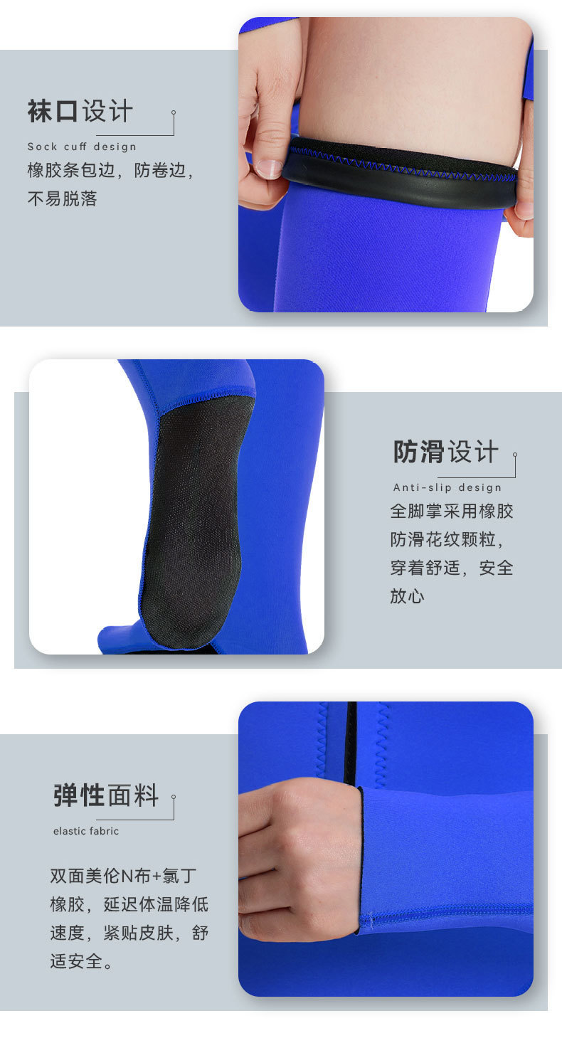 🔹 顶级保暖 :高弹性氯丁橡胶材质(3mm/5mm/7mm可选),锁住体温,抵御寒冷,让你在深海也能温暖如春!❄