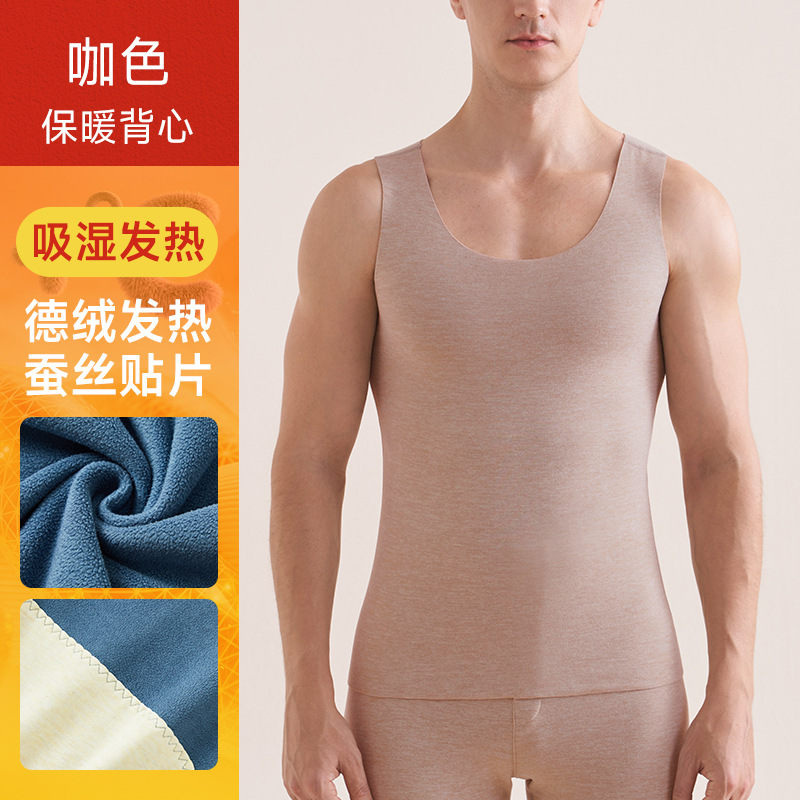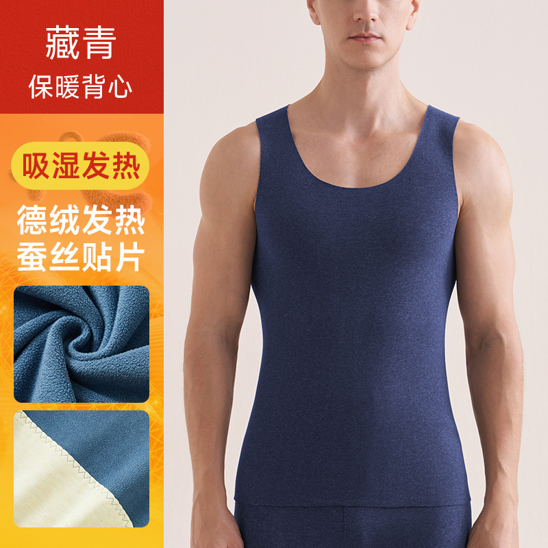남성용 패치워크 보온 조끼, 실크 캐시미어 민소매, 독일산 발열 내의, 벨벳 안감 조끼, 외출용으로도 가능