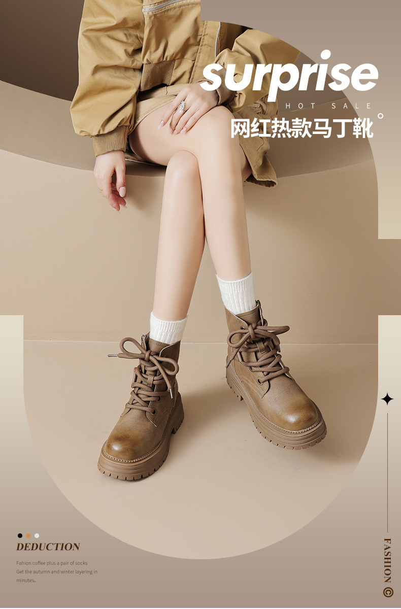 오구시덴 브라운 마틴 부츠 여성용 2025 신상 봄 가을 싱글 부츠 영국 스타일 두꺼운 밑창 대형 노란색 부츠 바이커 숏부츠스토어 가기